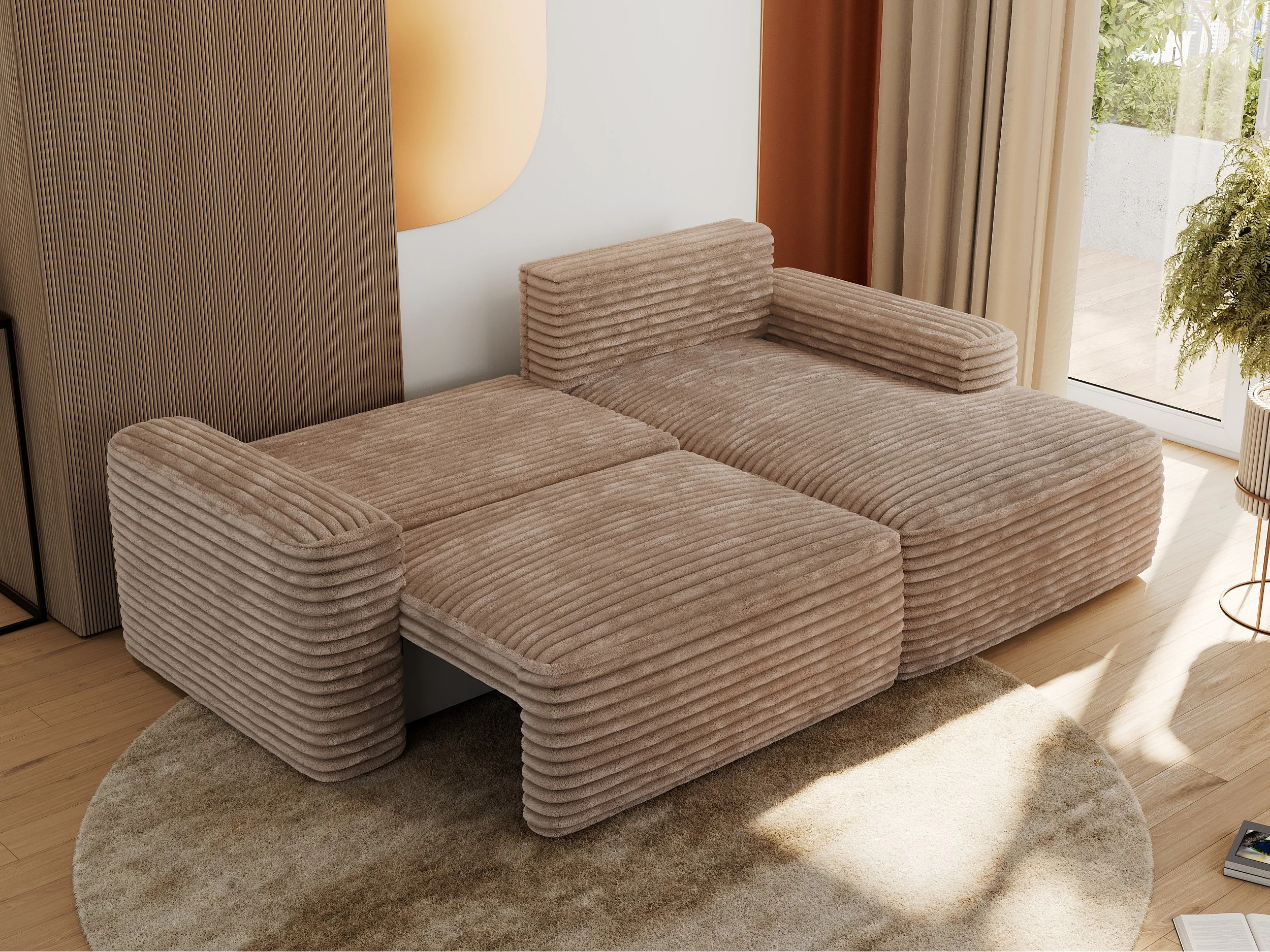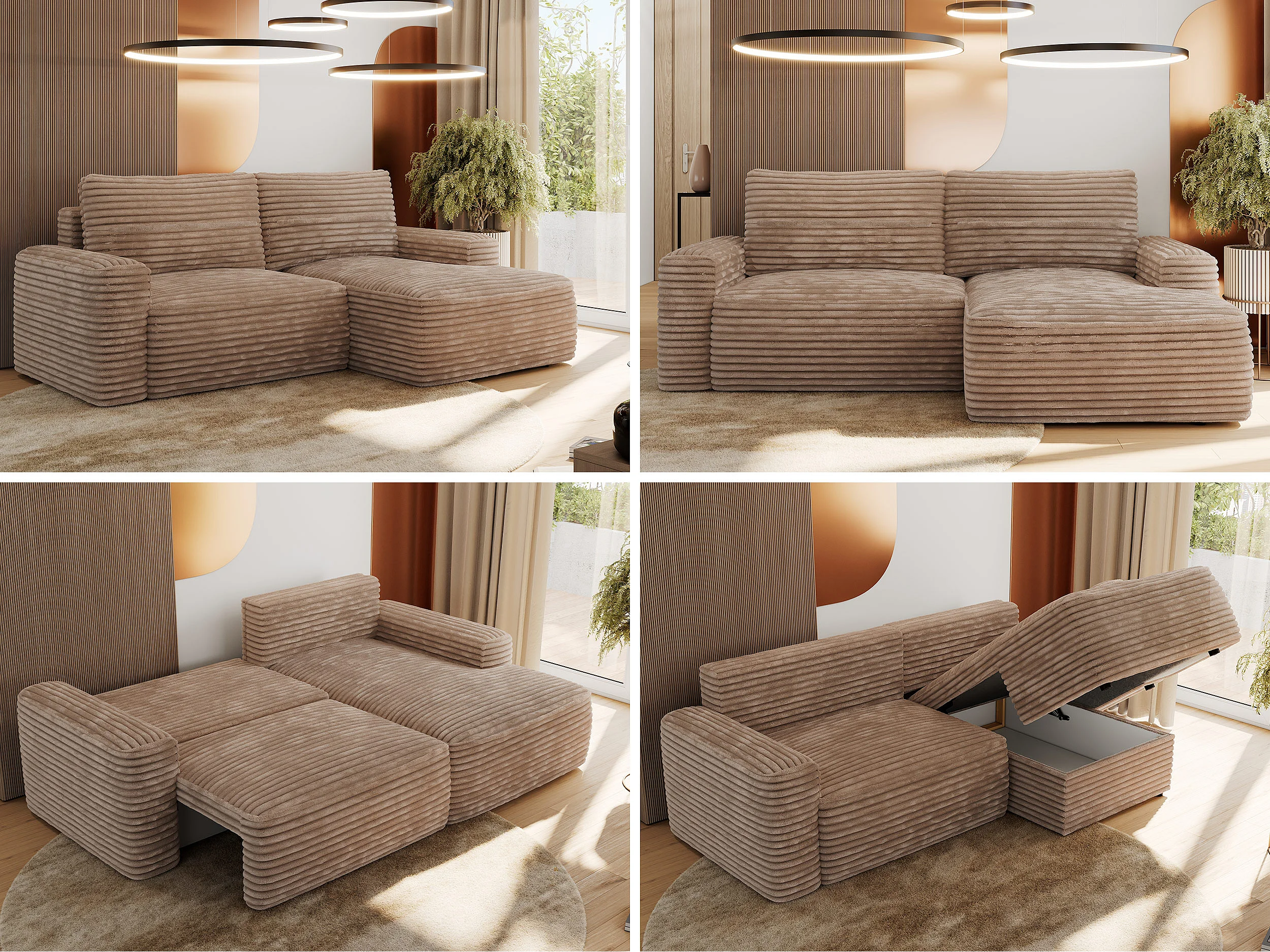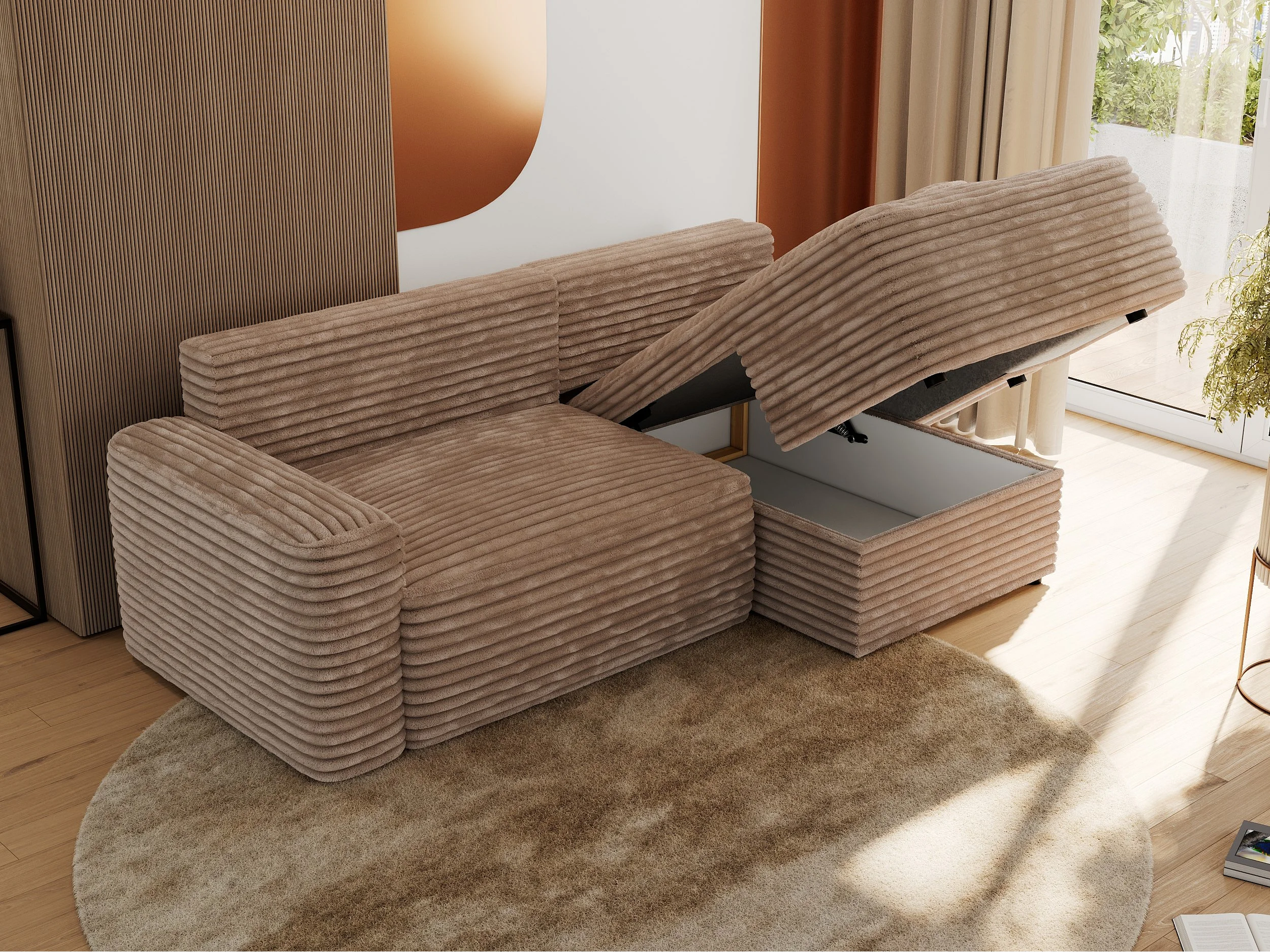 Ecksofa BELLUNO - Schlafsofa mit Bettkasten, Armlehnen, Couch L-form mit Schlaffunktion - Braun Cord - Ecke Rechts
