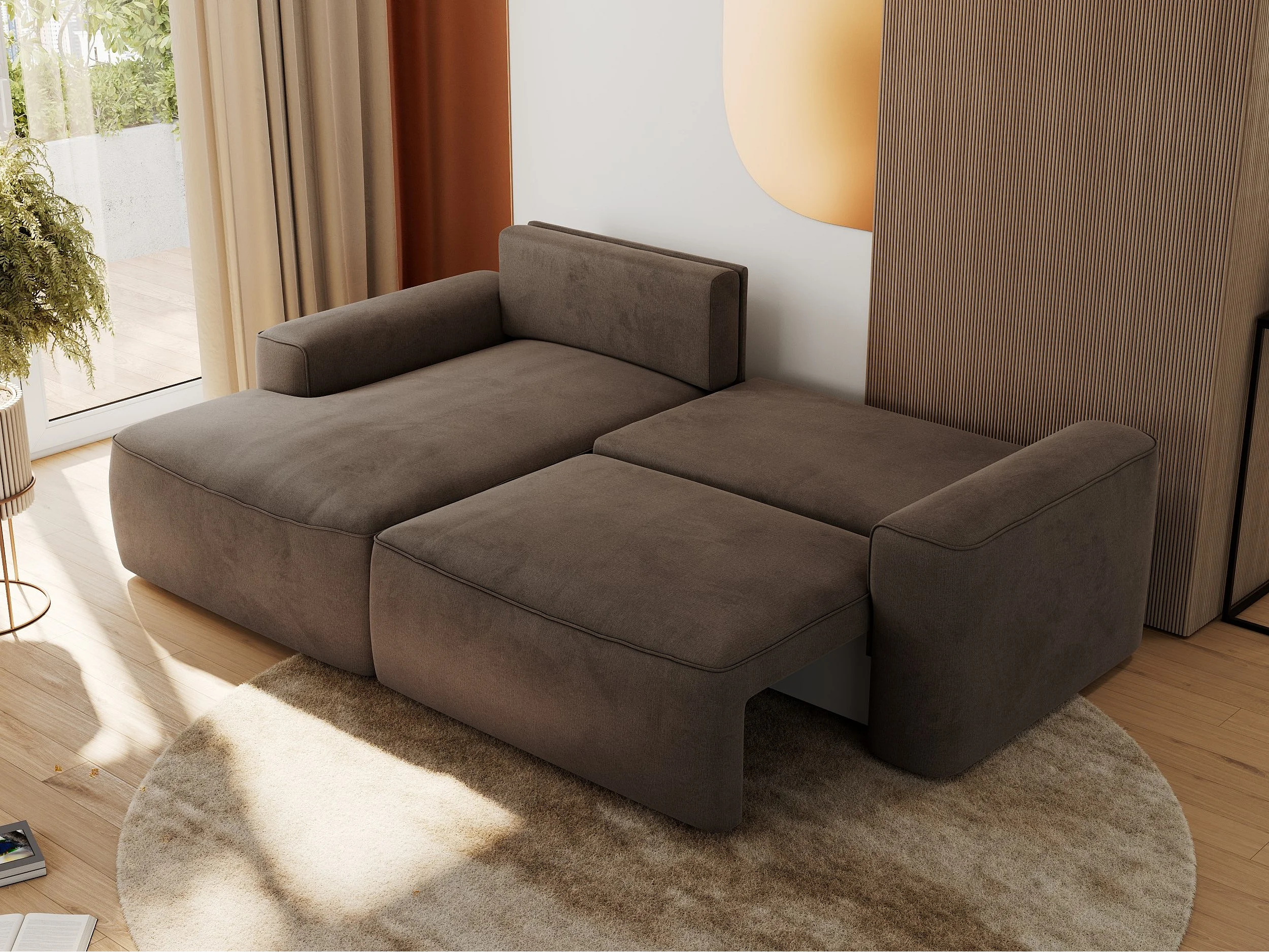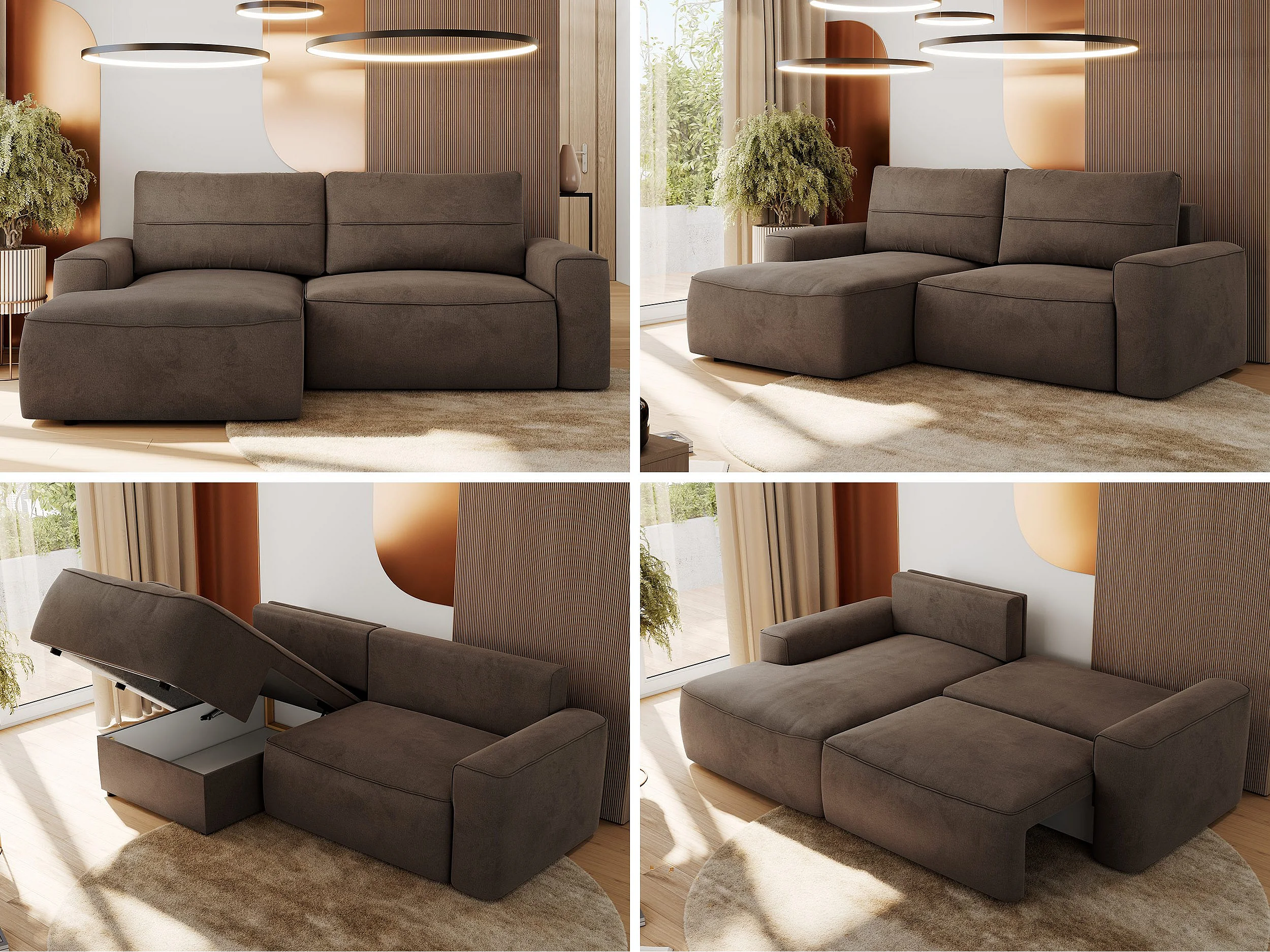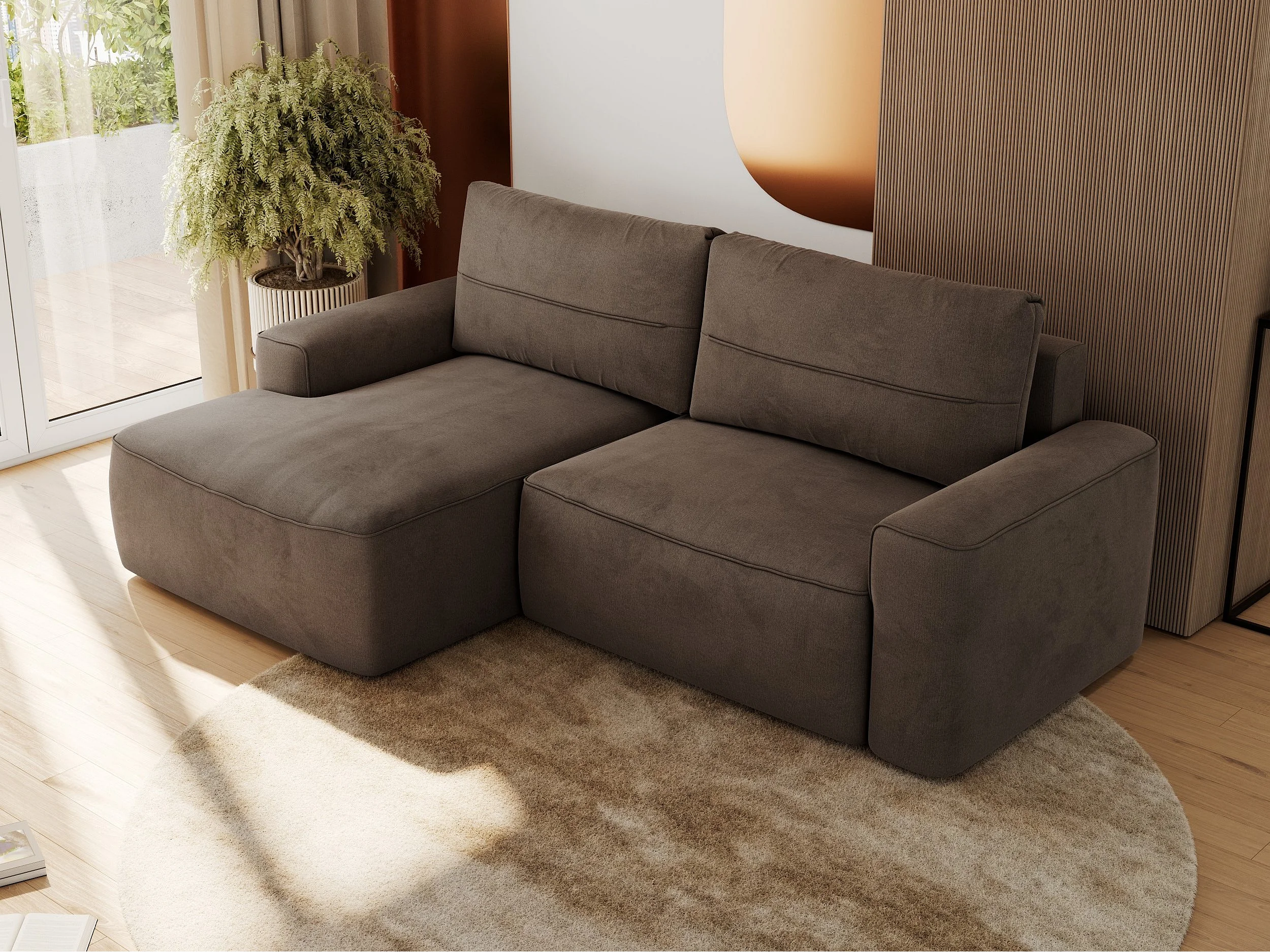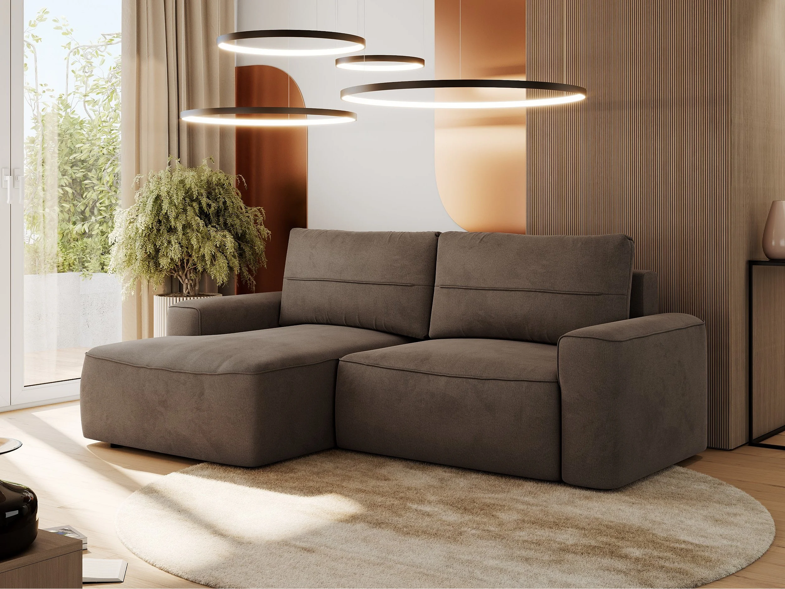 Ecksofa BELLUNO - Schlafsofa mit Bettkasten, Armlehnen, Couch L-form mit Schlaffunktion - Braun Velvet - Ecke Links