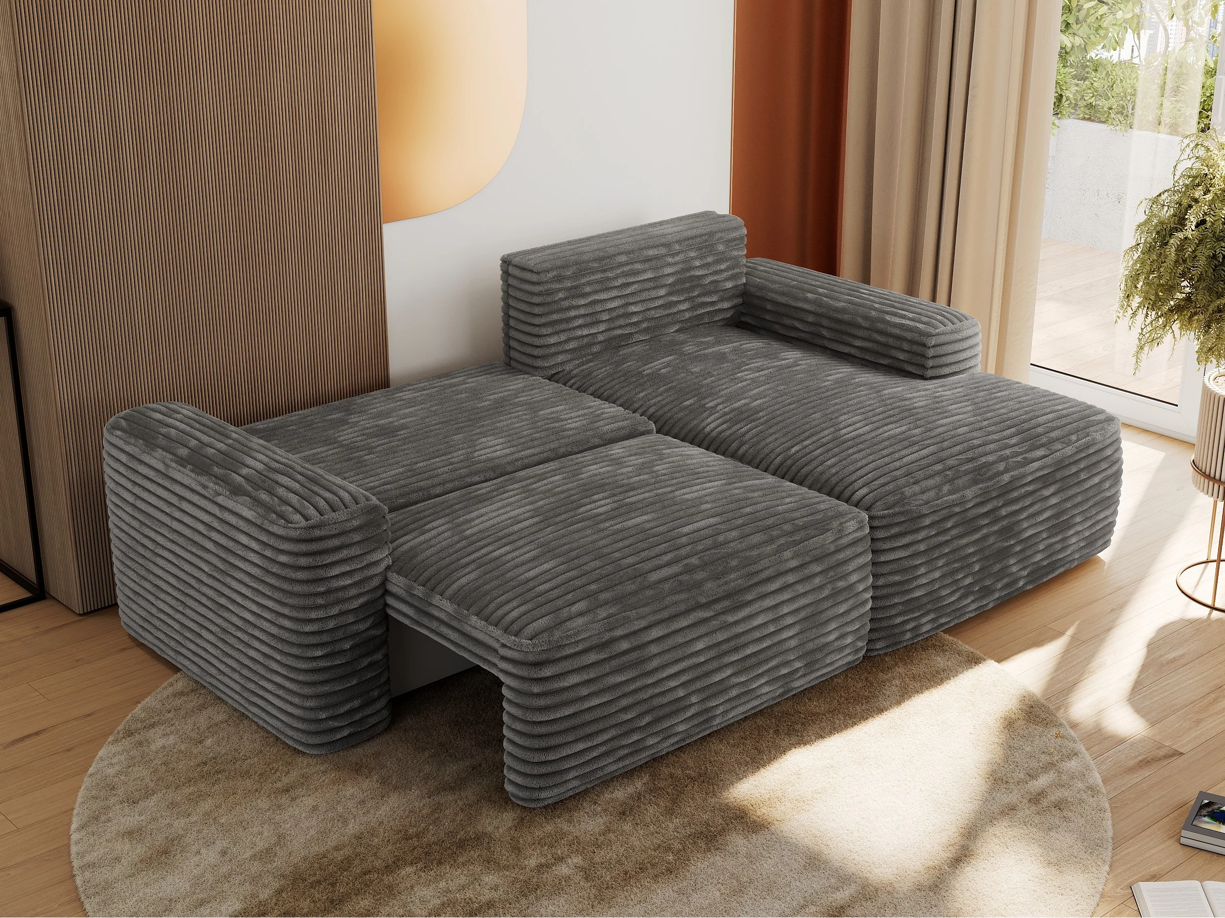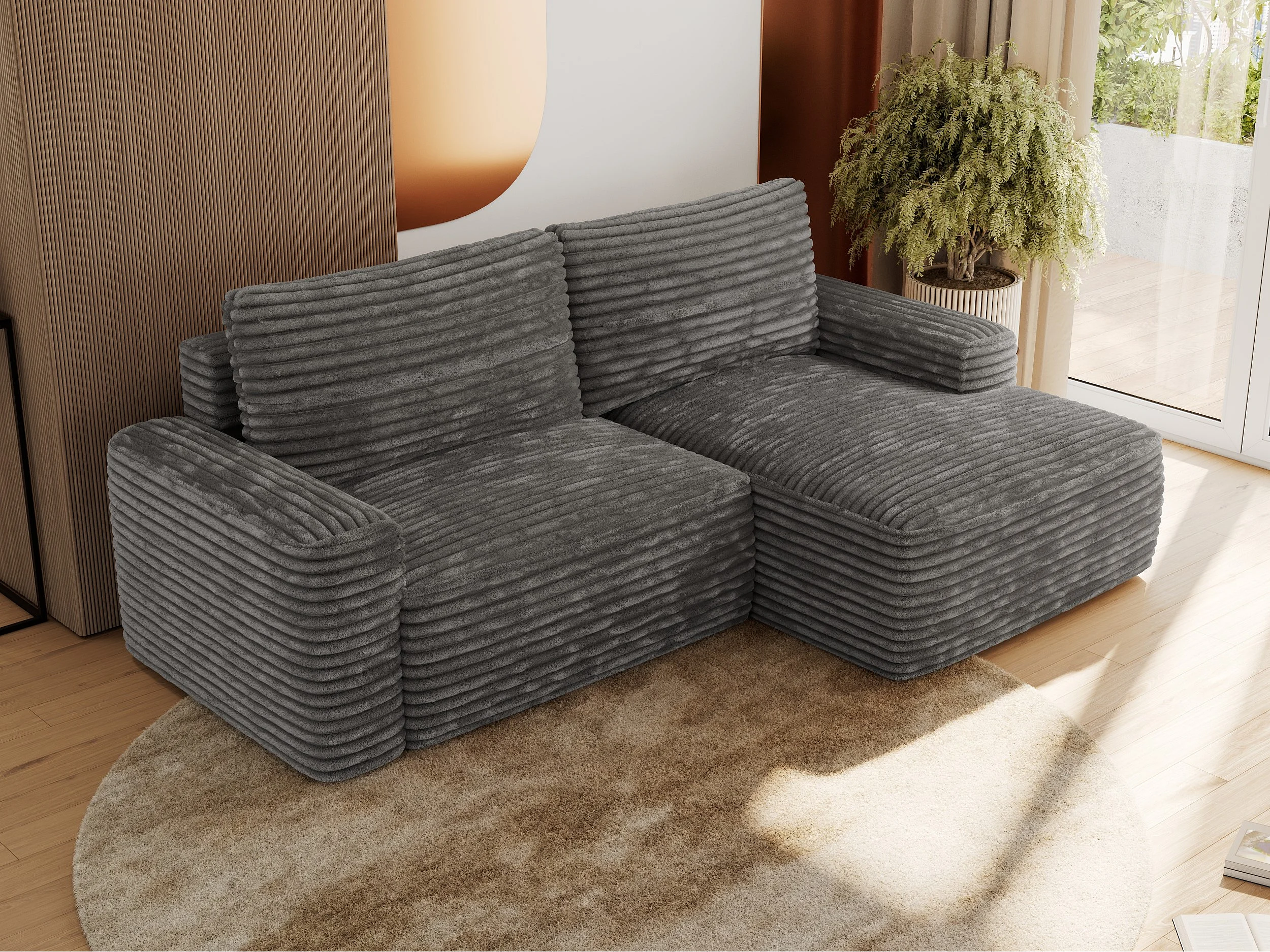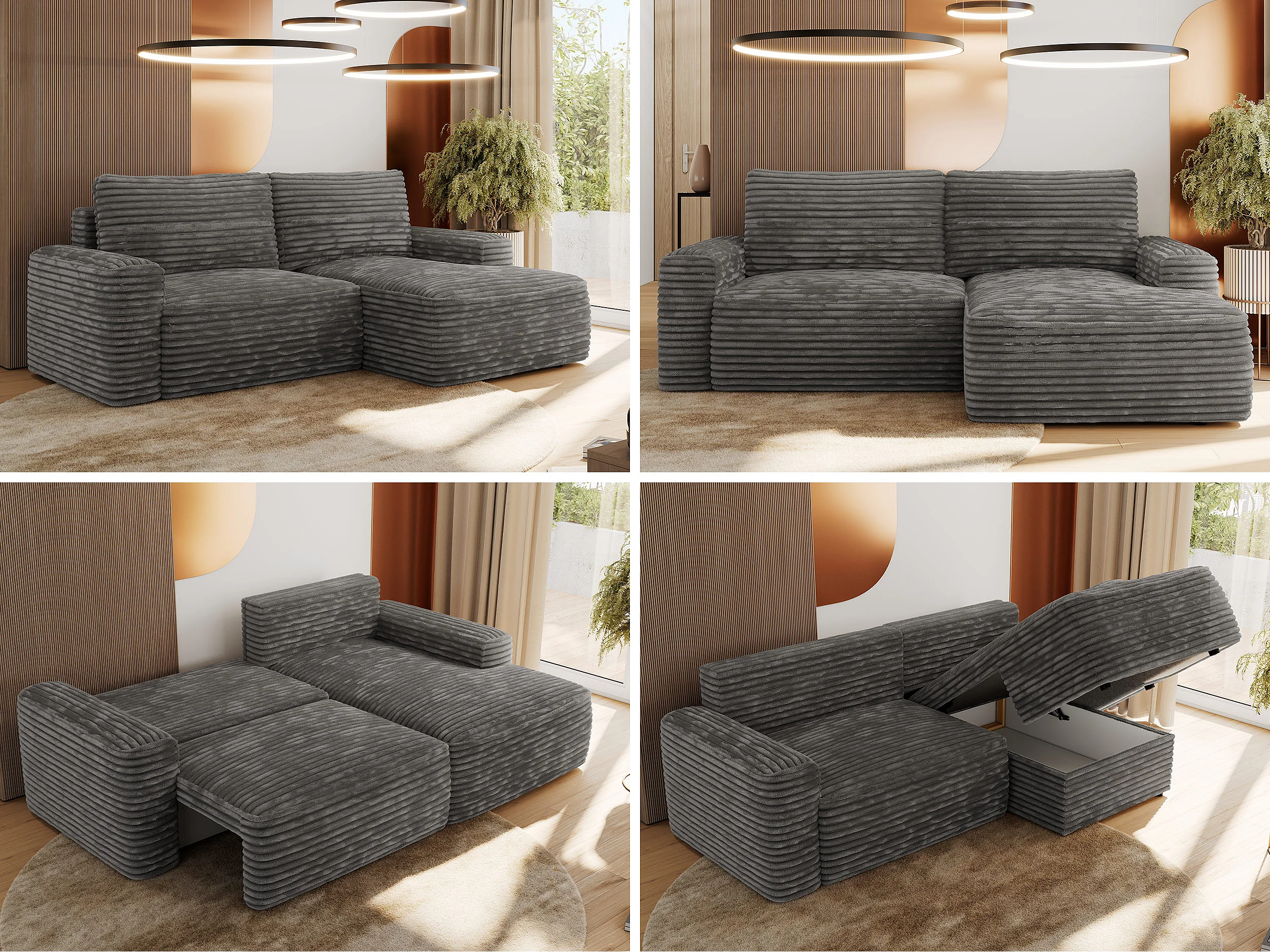 Ecksofa BELLUNO - Schlafsofa mit Bettkasten, Armlehnen, Couch L-form mit Schlaffunktion - Dunkelgrau Cord - Ecke Rechts