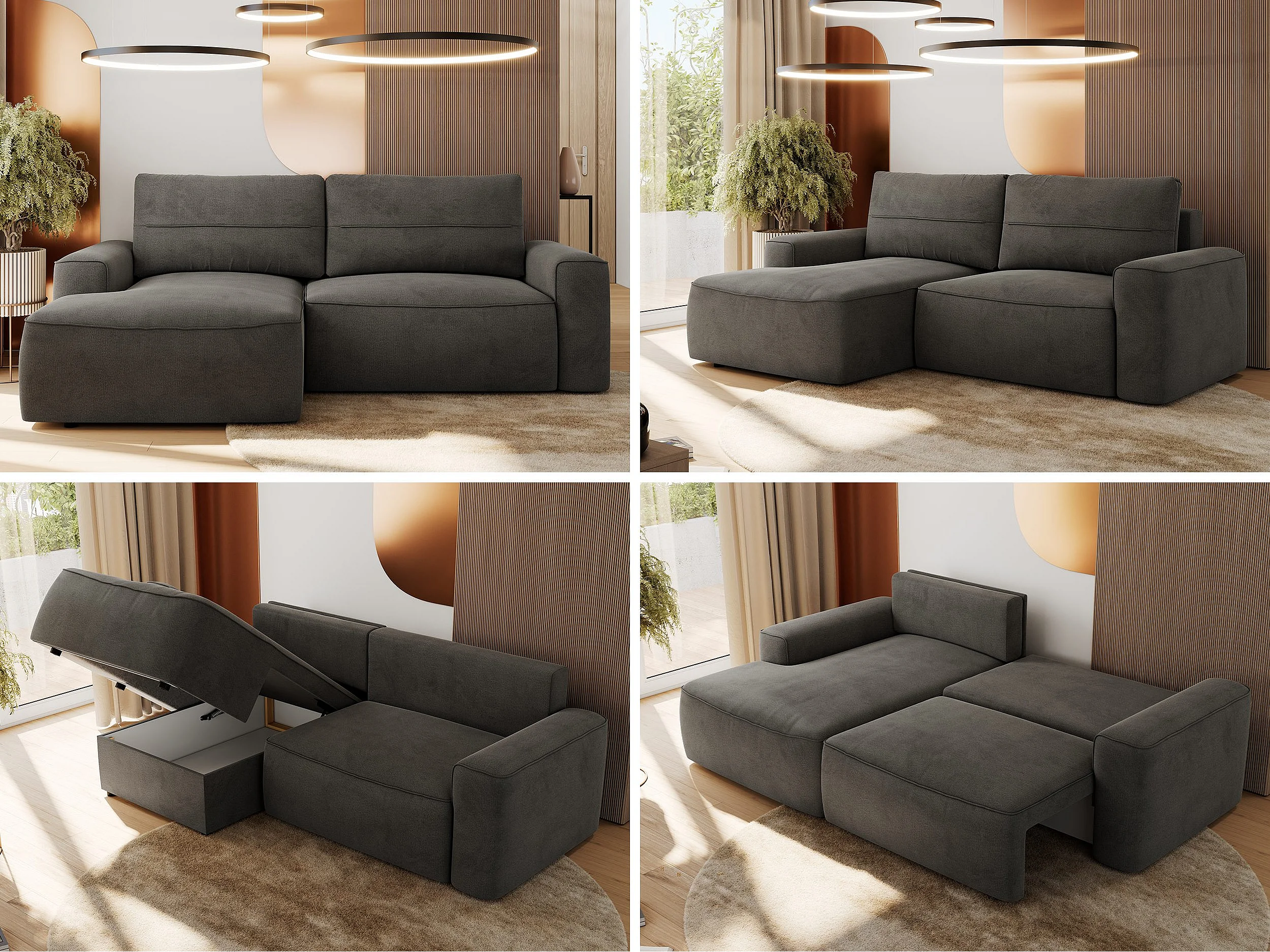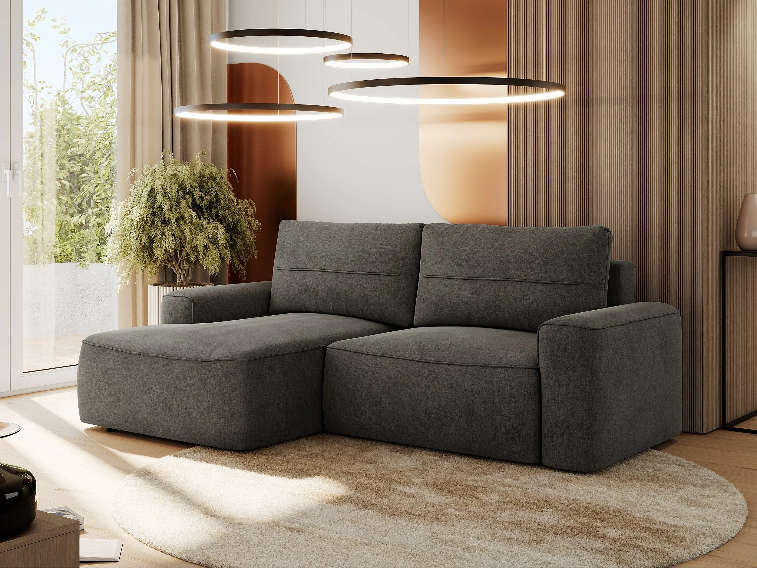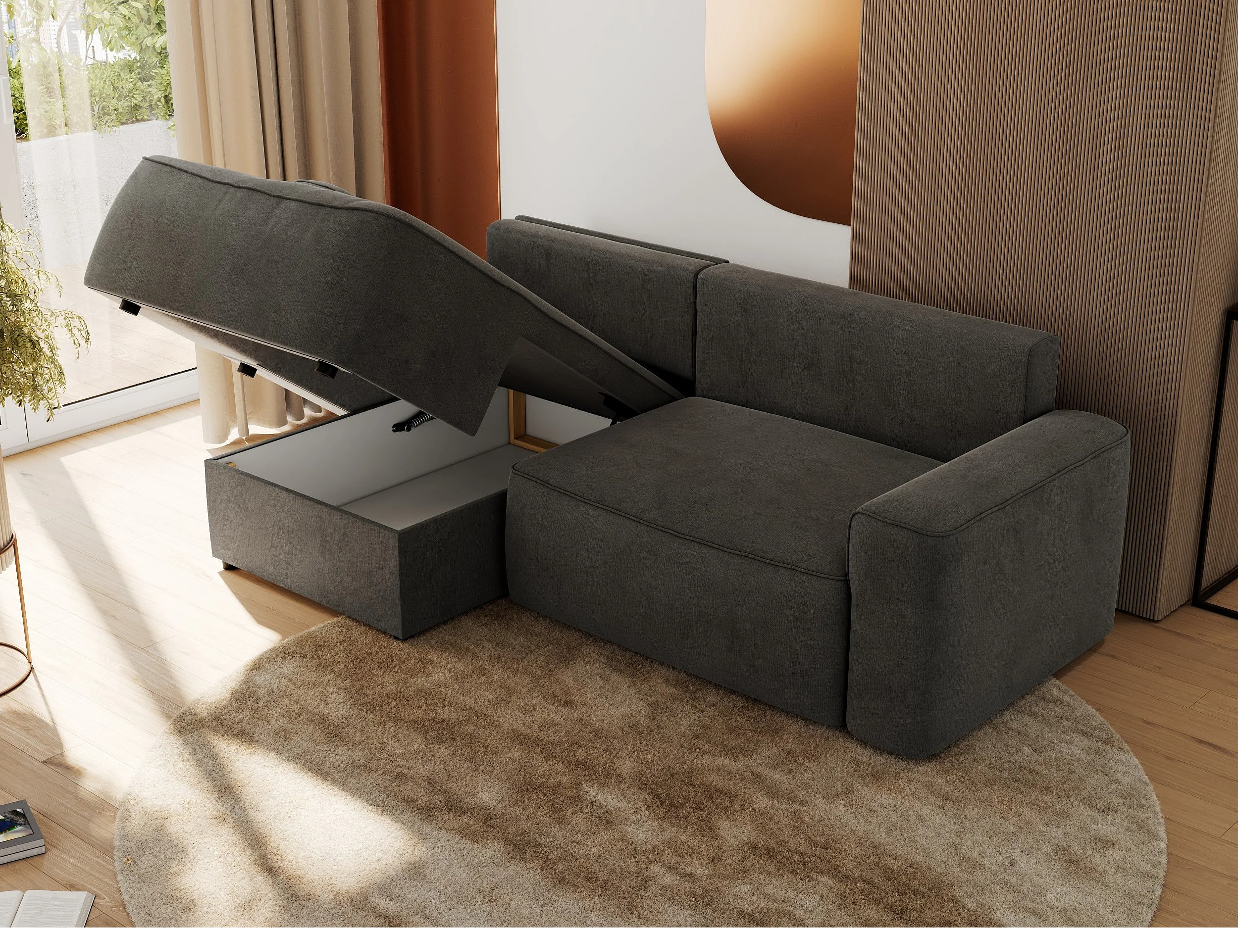 Ecksofa BELLUNO - Schlafsofa mit Bettkasten, Armlehnen, Couch L-form mit Schlaffunktion - Dunkelgrau Velvet - Ecke Links