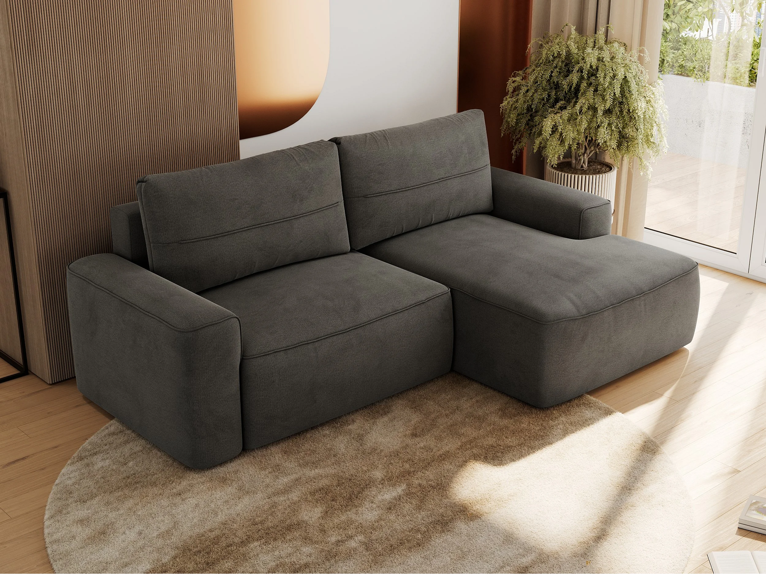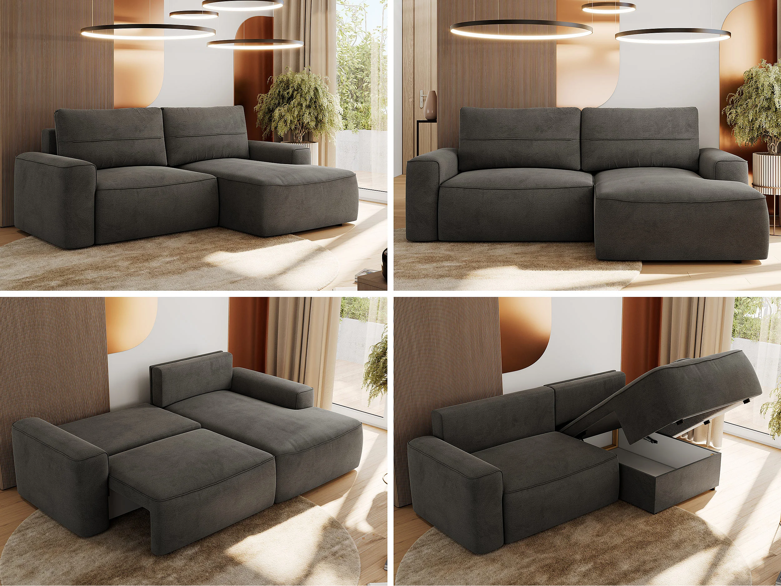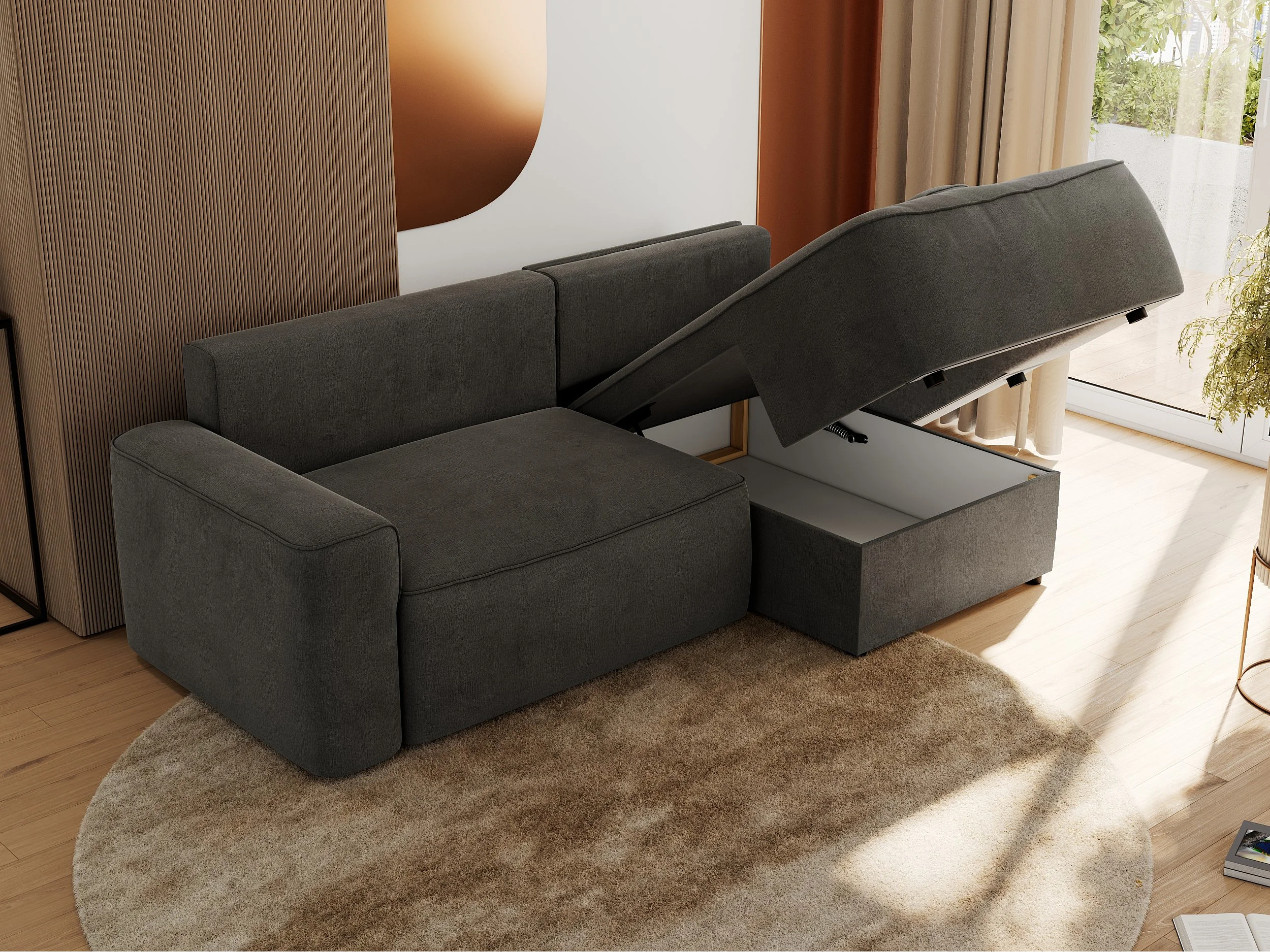 Ecksofa BELLUNO - Schlafsofa mit Bettkasten, Armlehnen, Couch L-form mit Schlaffunktion - Dunkelgrau Velvet - Ecke Rechts