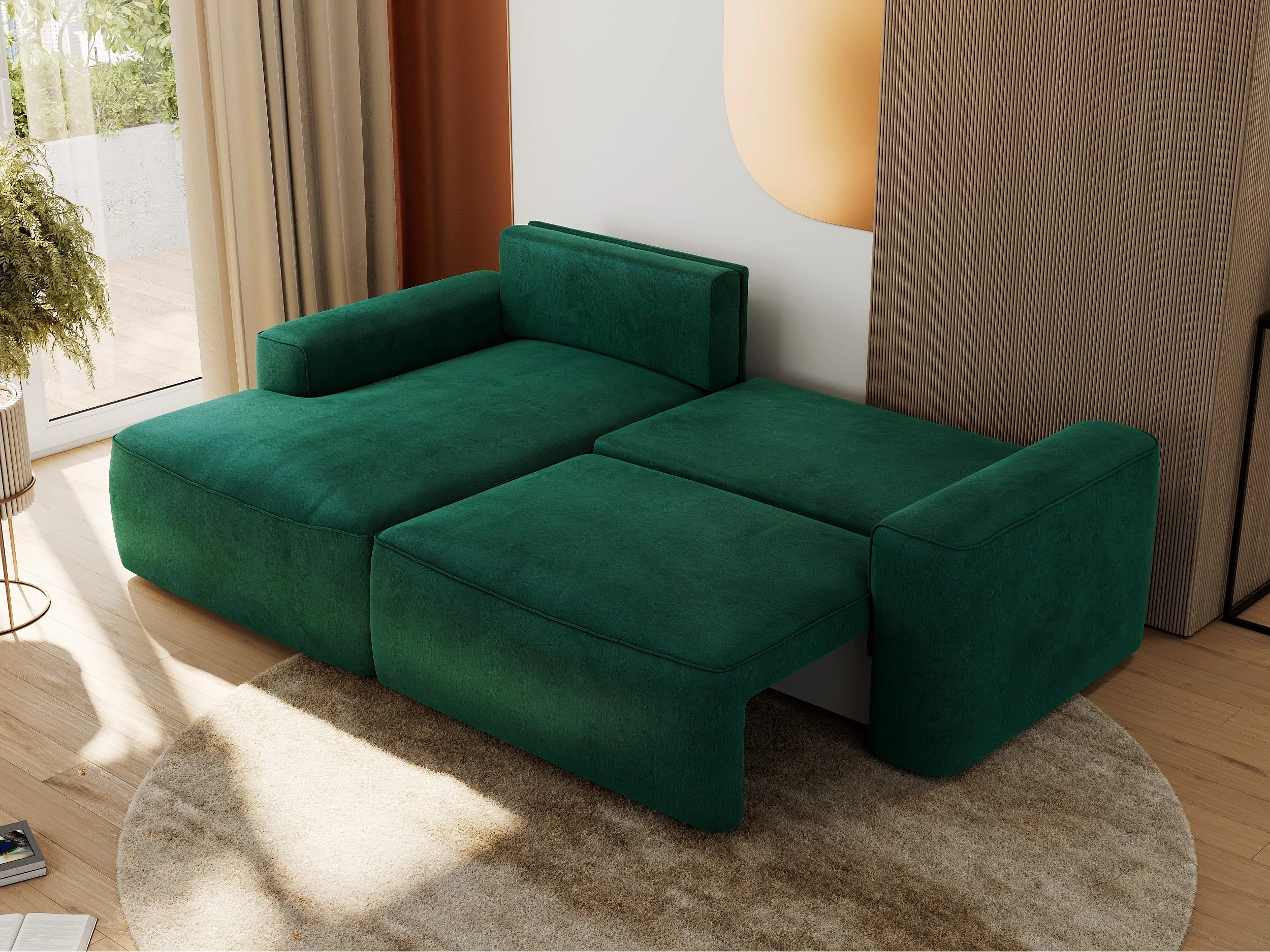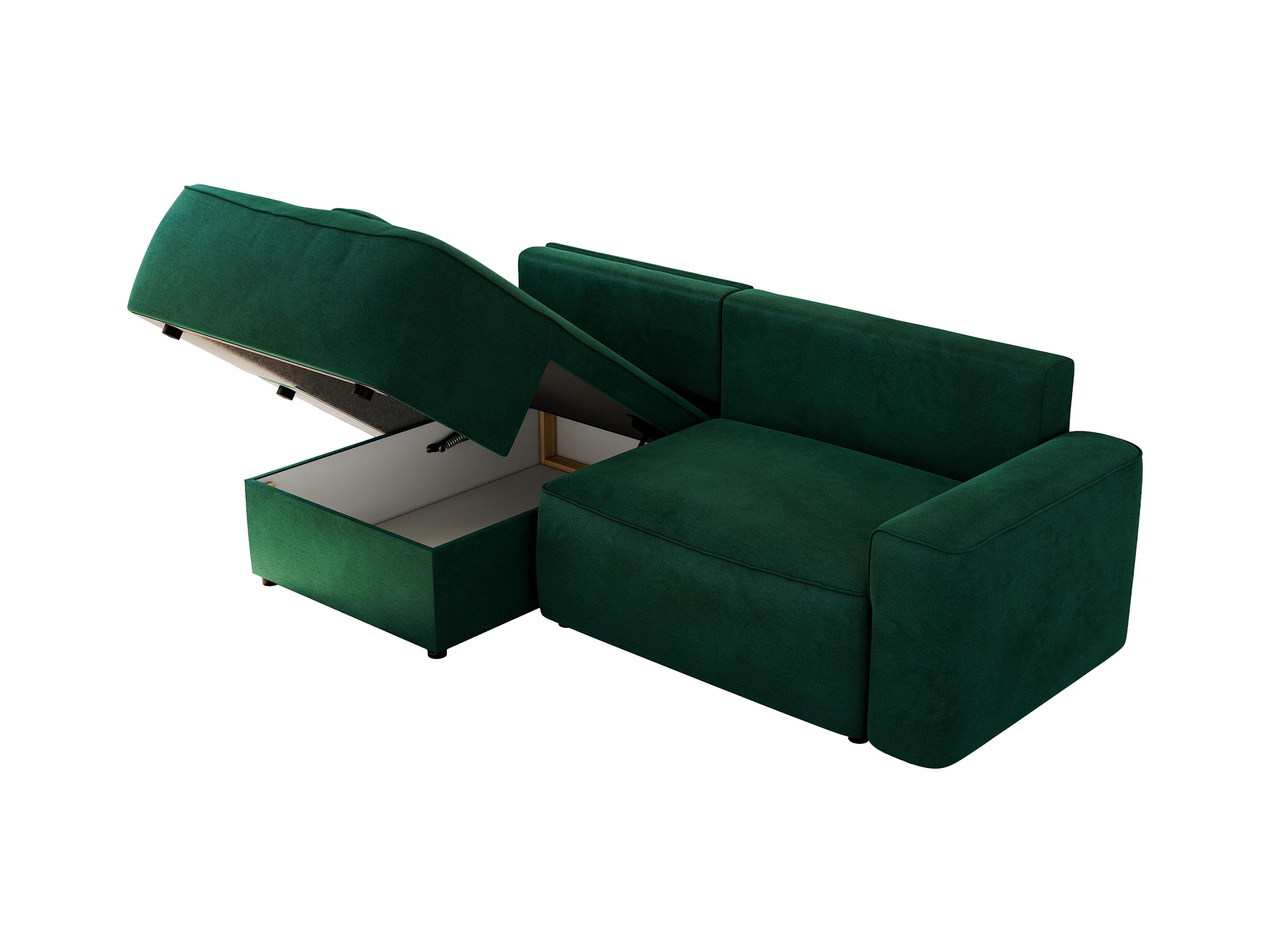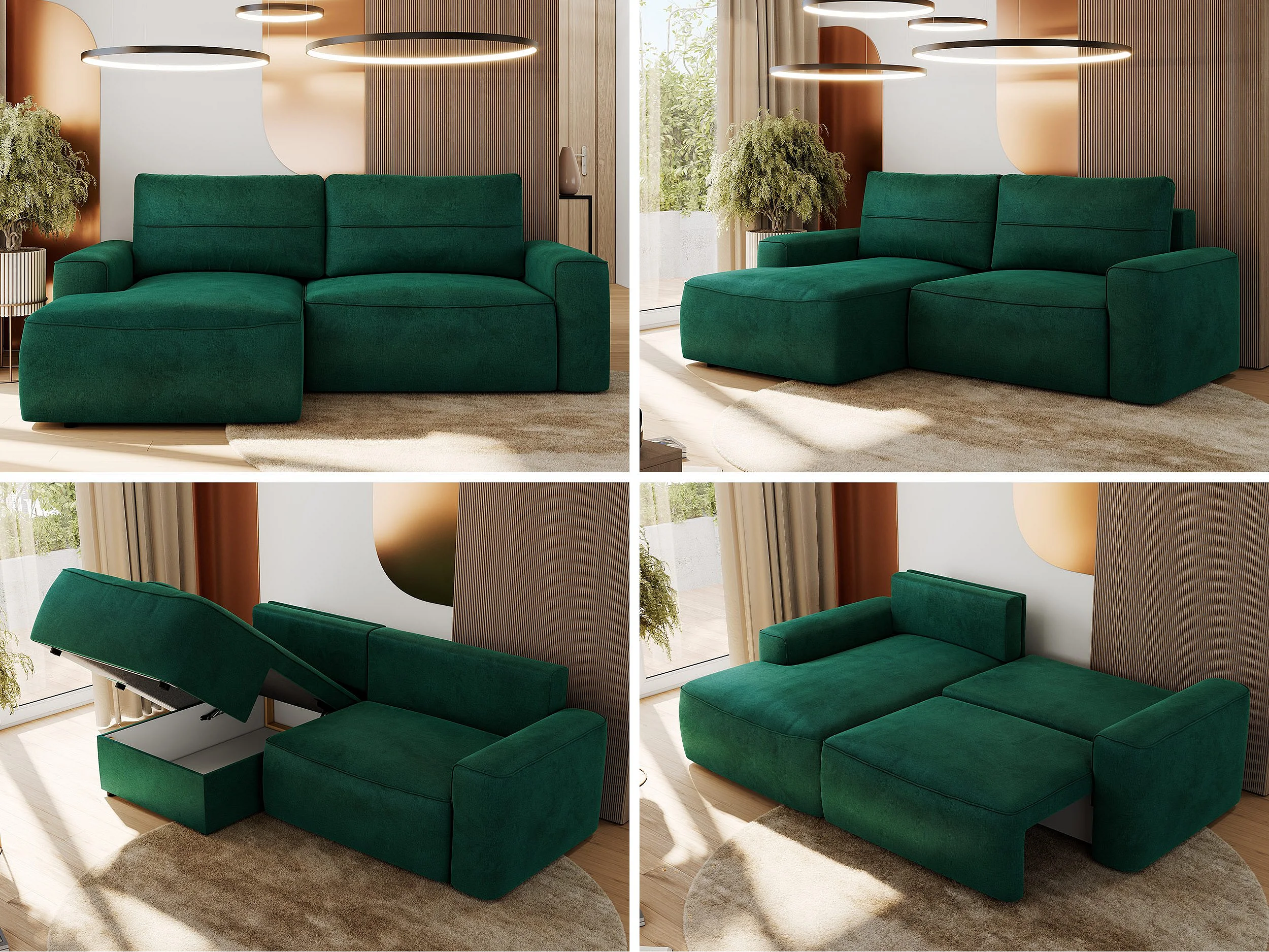 Ecksofa BELLUNO - Schlafsofa mit Bettkasten, Armlehnen, Couch L-form mit Schlaffunktion - Dunkelgrün Velvet - Ecke Links