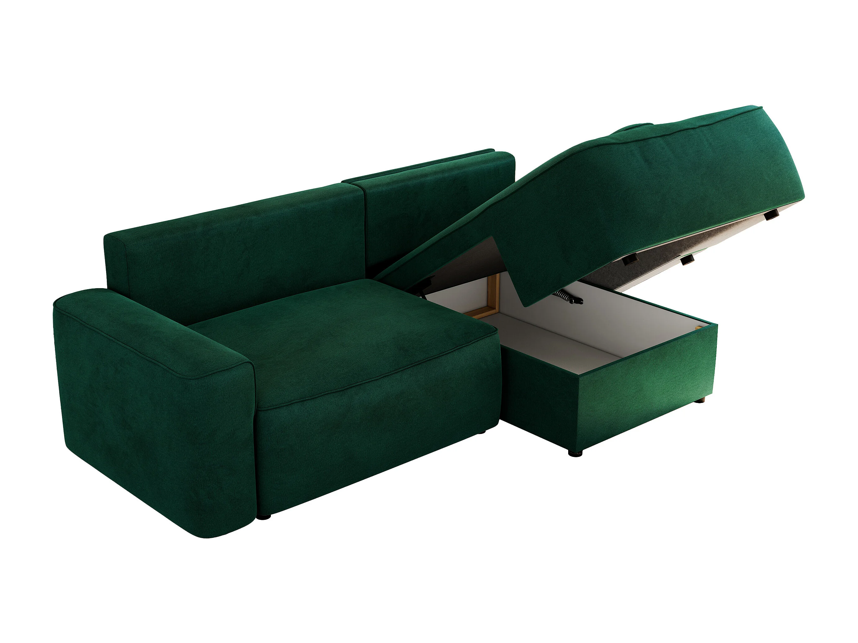 Ecksofa BELLUNO - Schlafsofa mit Bettkasten, Armlehnen, Couch L-form mit Schlaffunktion - Dunkelgrün Velvet - Ecke Rechts