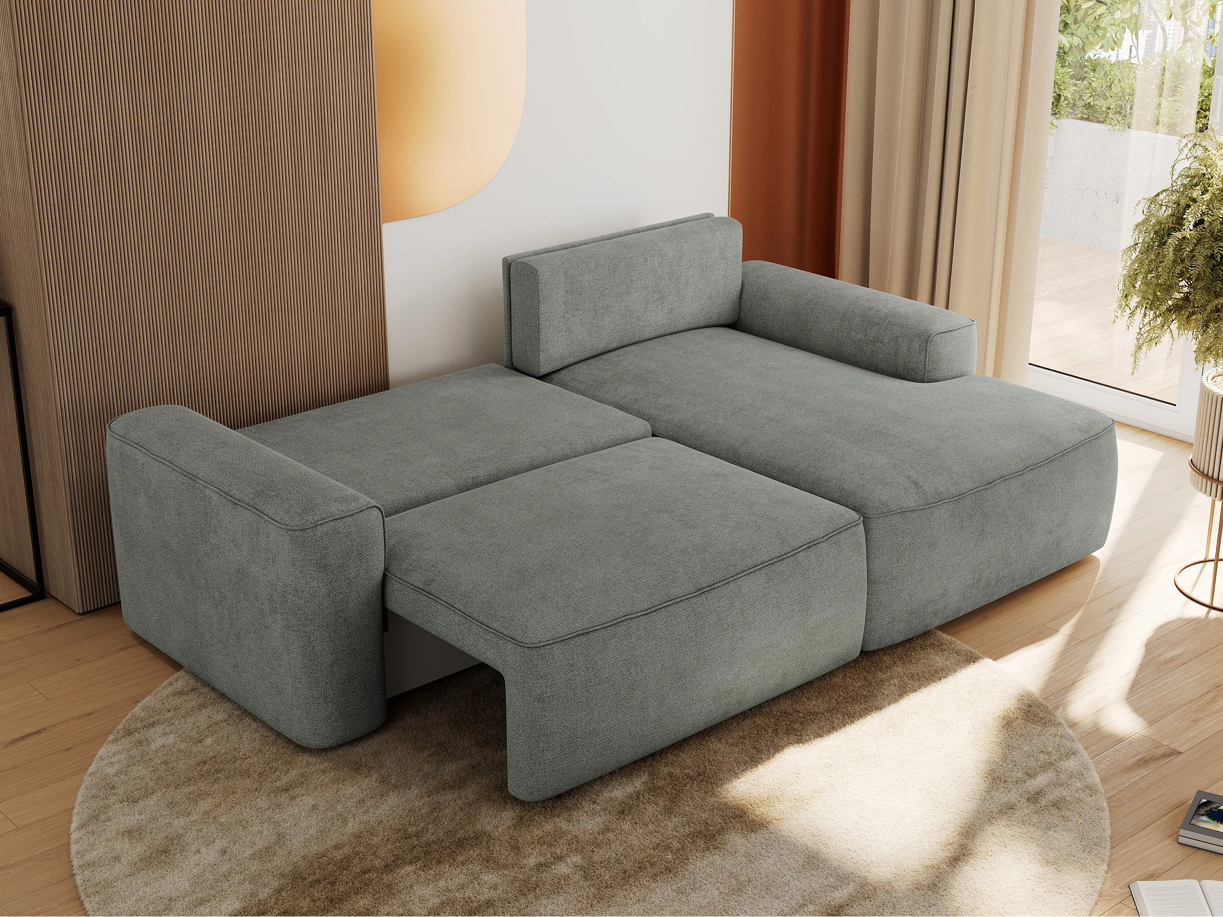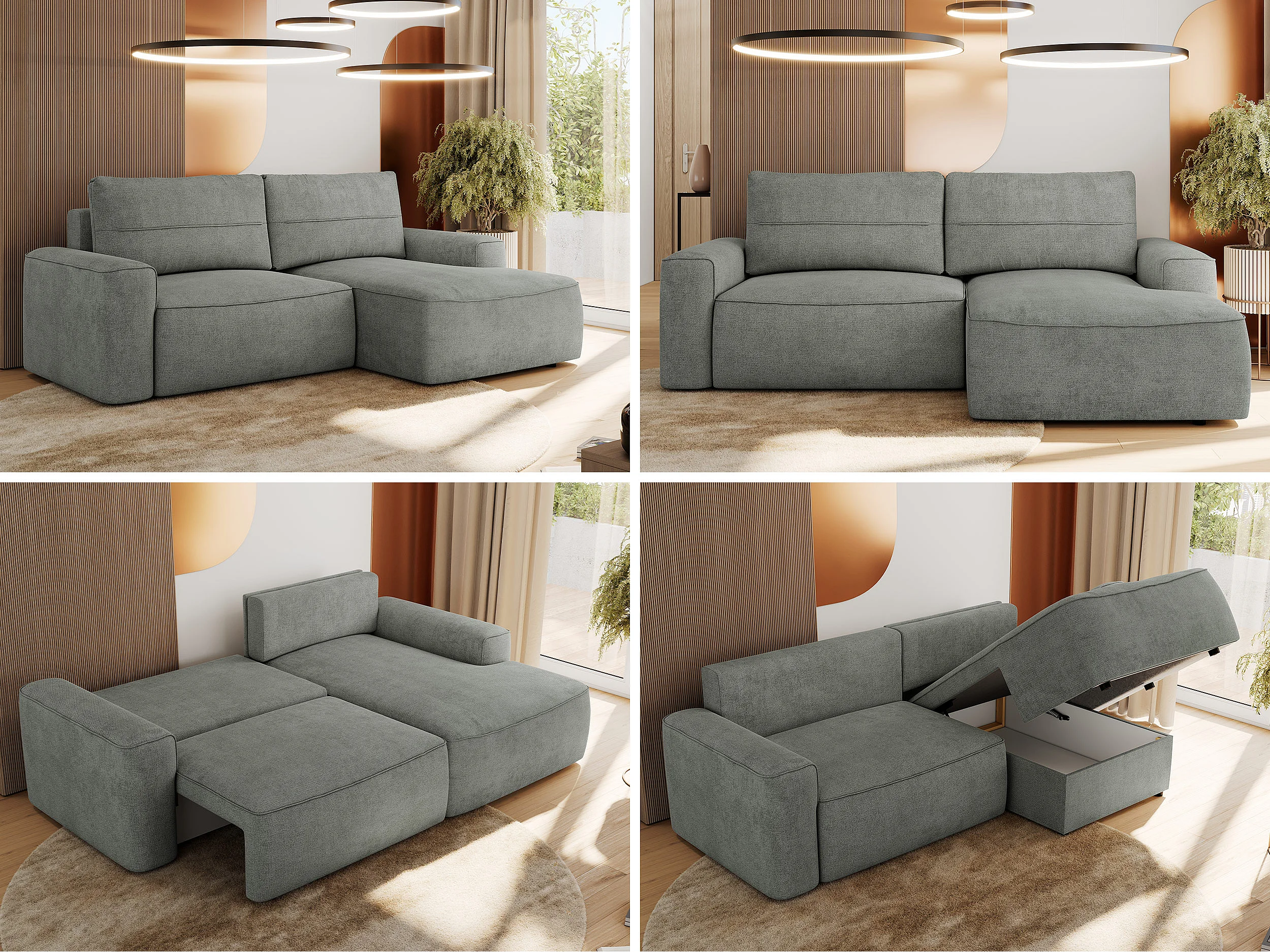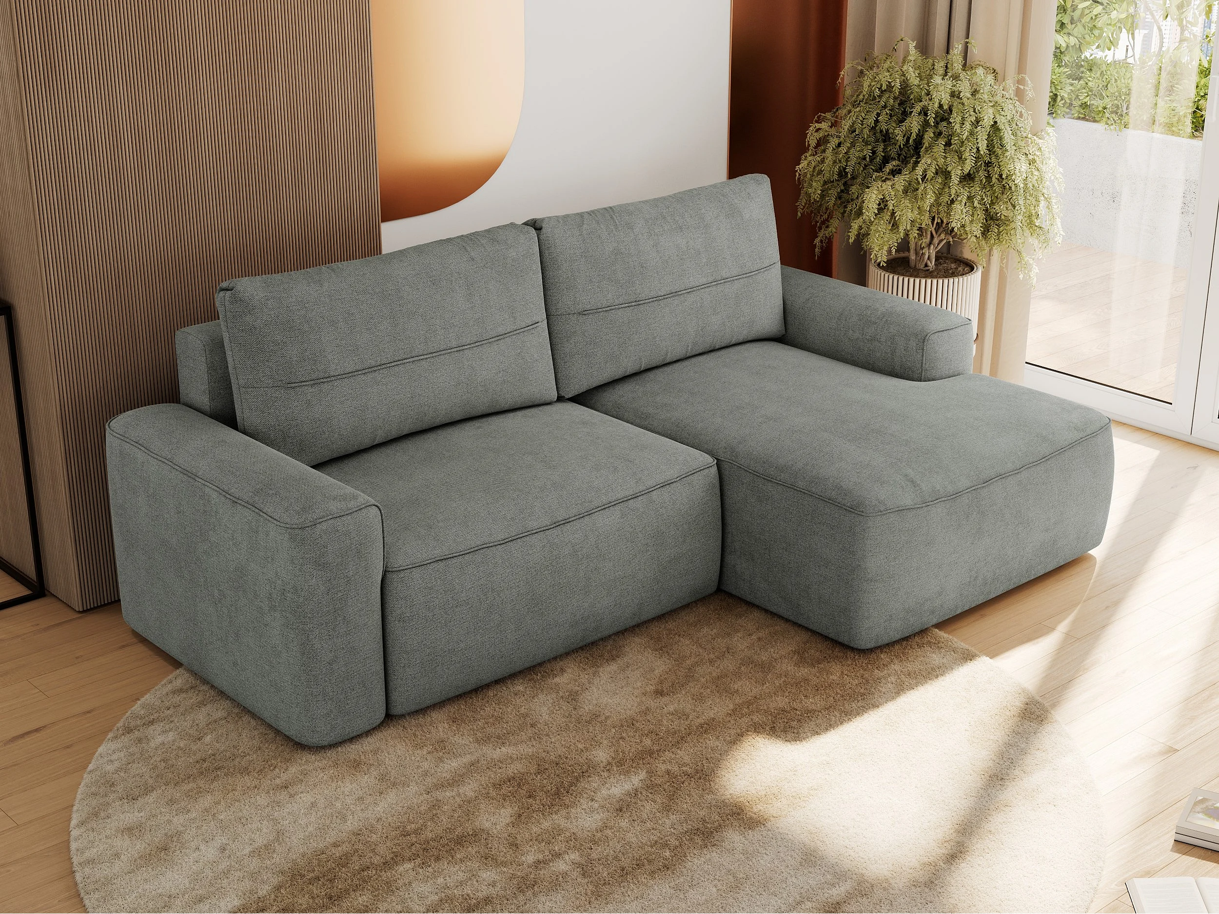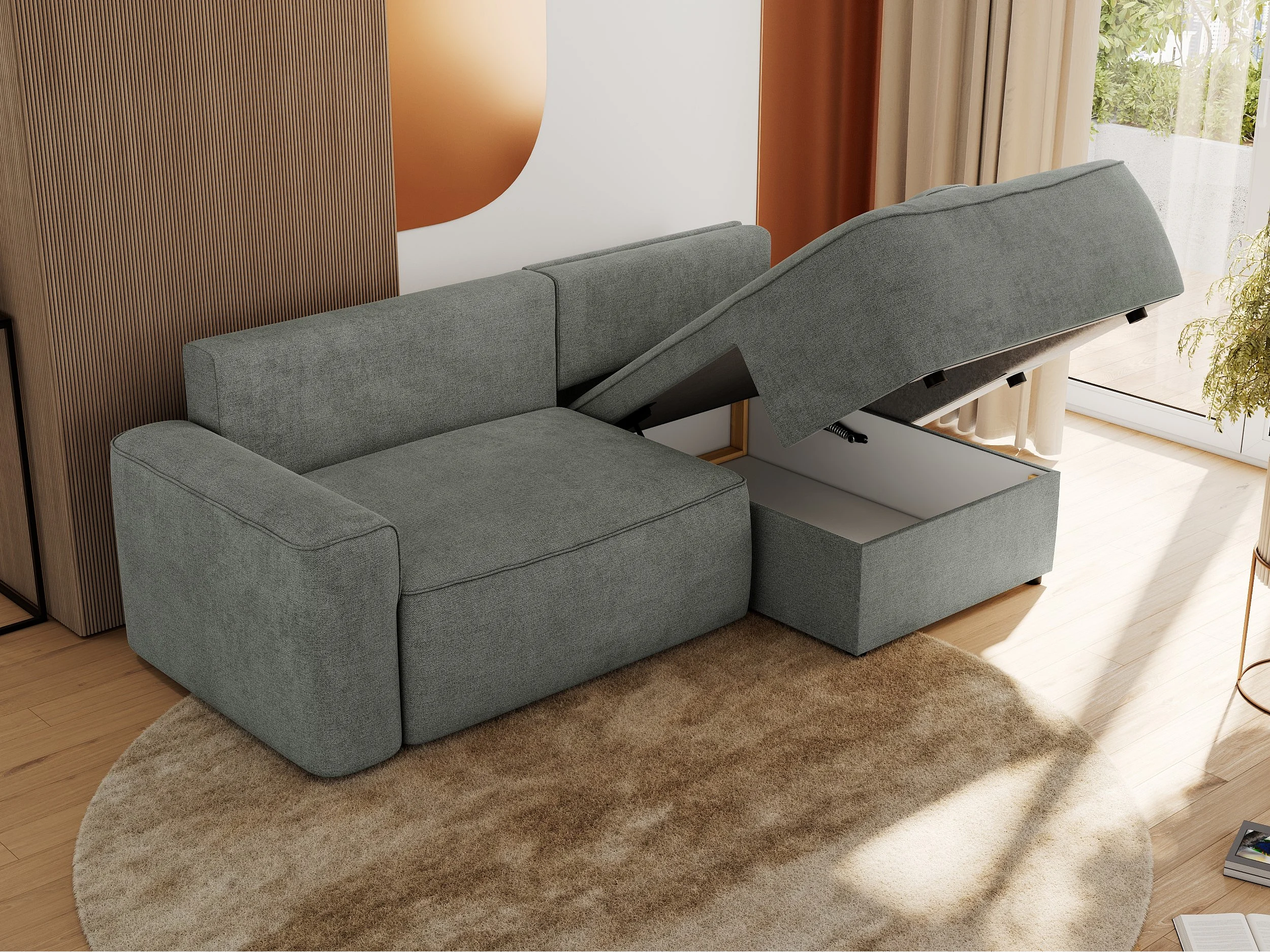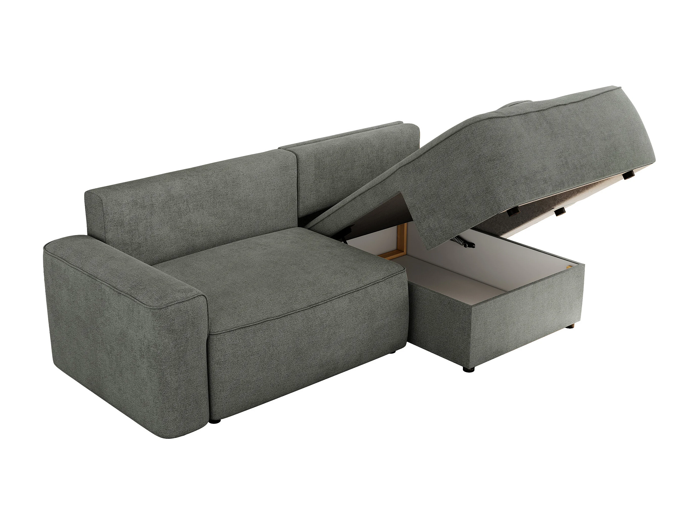 Ecksofa BELLUNO - Schlafsofa mit Bettkasten, Armlehnen, Couch L-form mit Schlaffunktion - Grau Strukture - Ecke Rechts