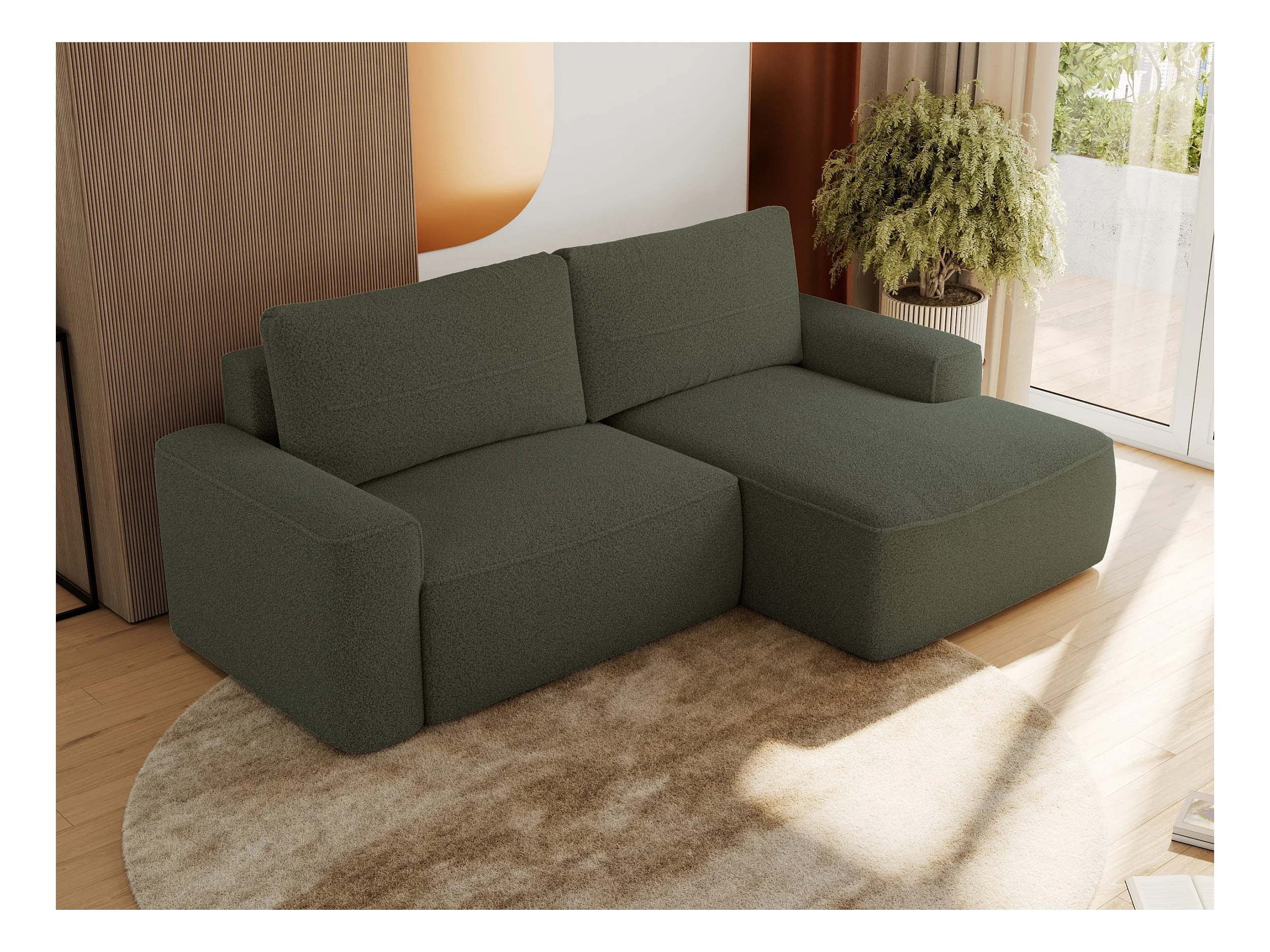 Ecksofa BELLUNO - Schlafsofa mit Bettkasten, Armlehnen, Couch L-form mit Schlaffunktion - Grün Boucle - Ecke Rechts