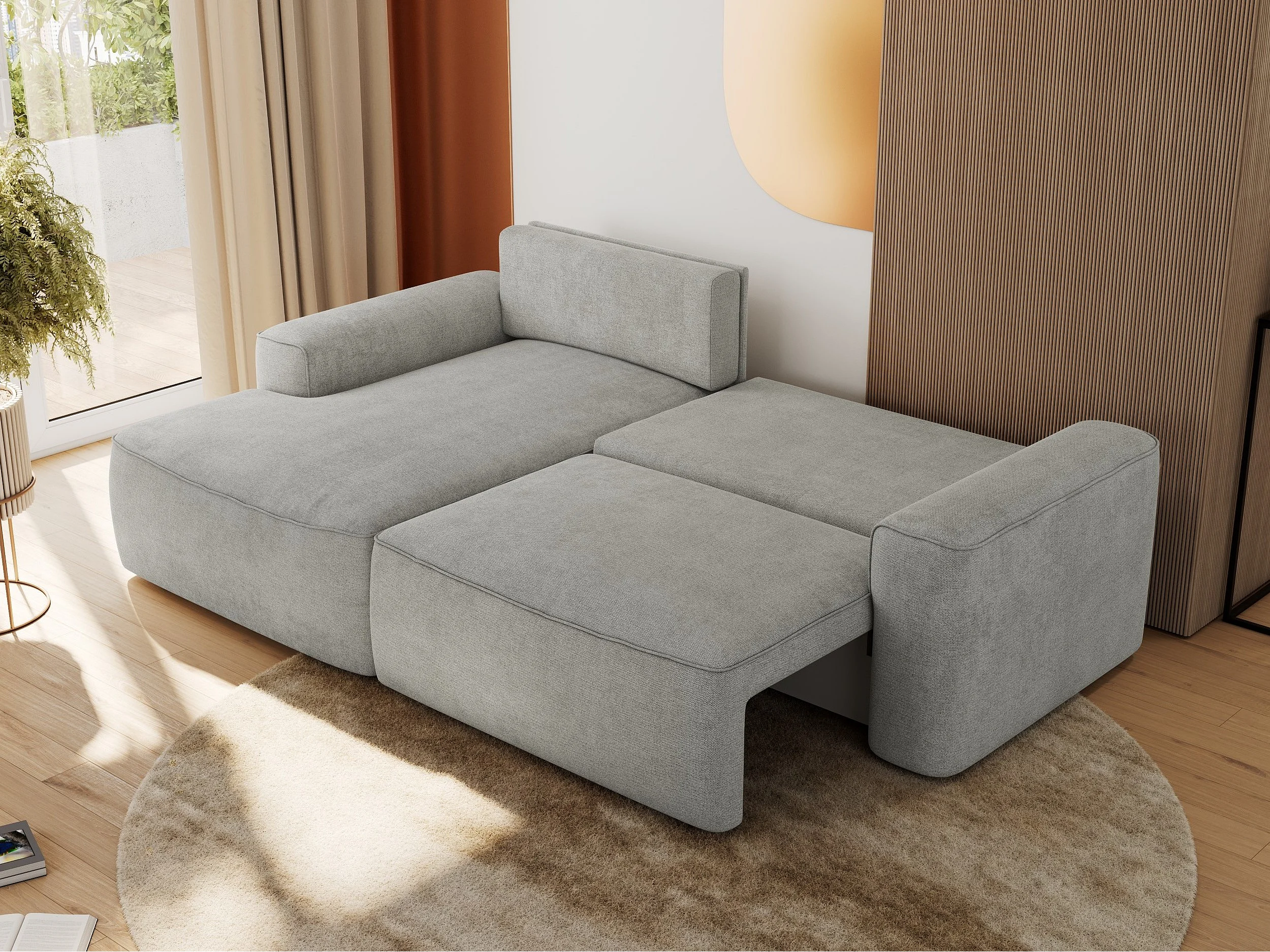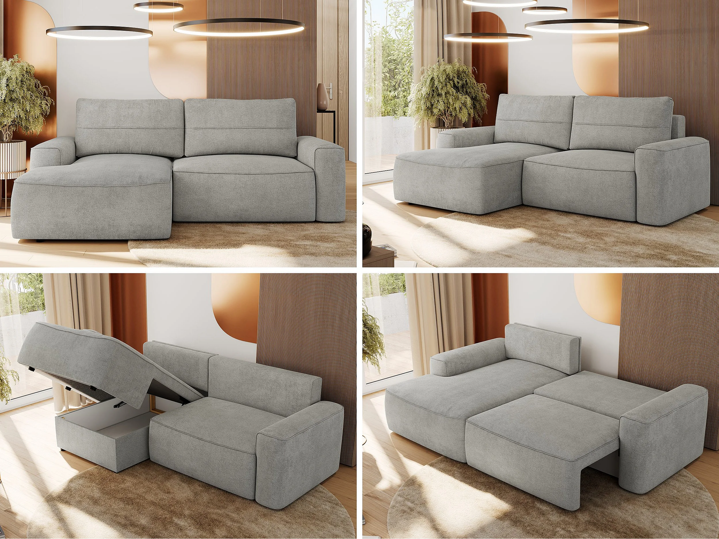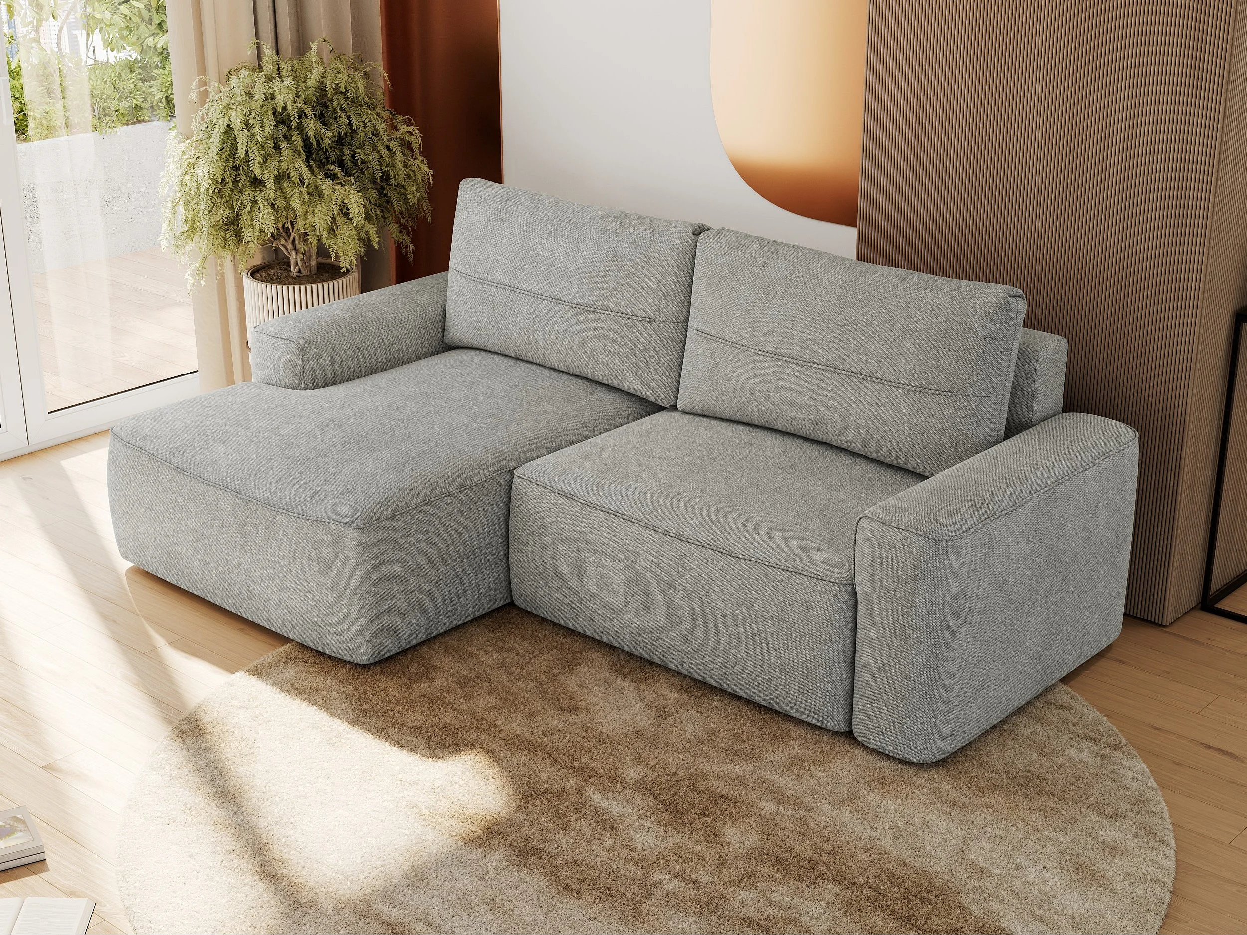 Ecksofa BELLUNO - Schlafsofa mit Bettkasten, Armlehnen, Couch L-form mit Schlaffunktion - Hellgrau Strukture - Ecke Links