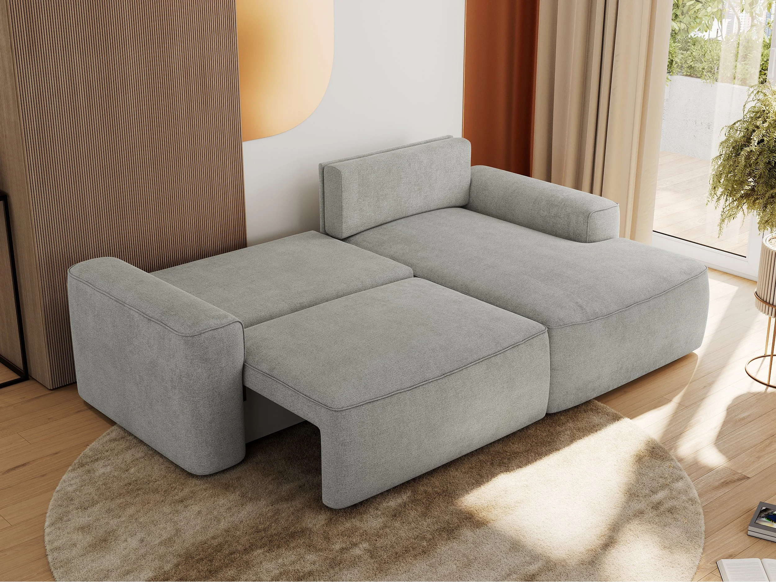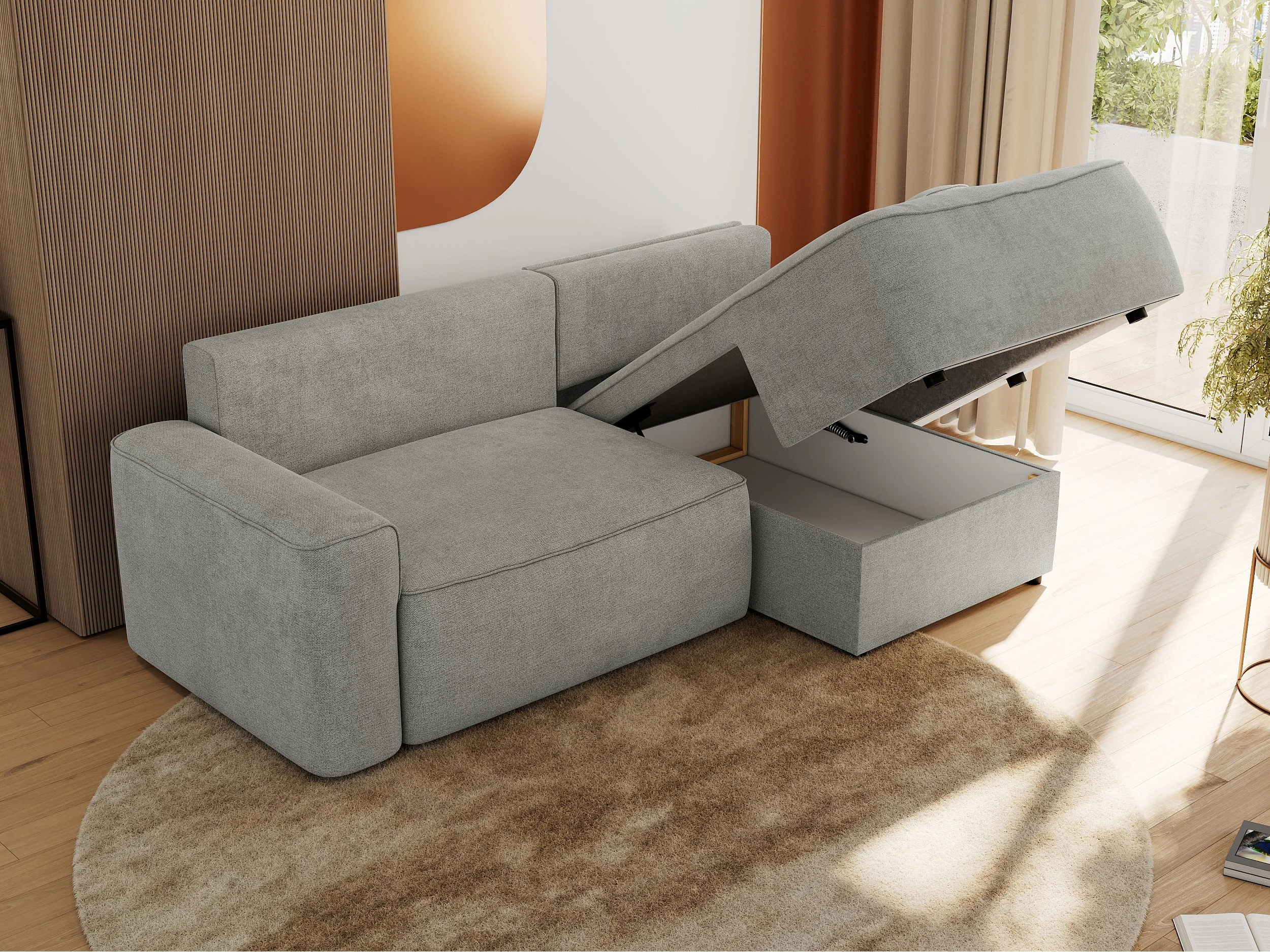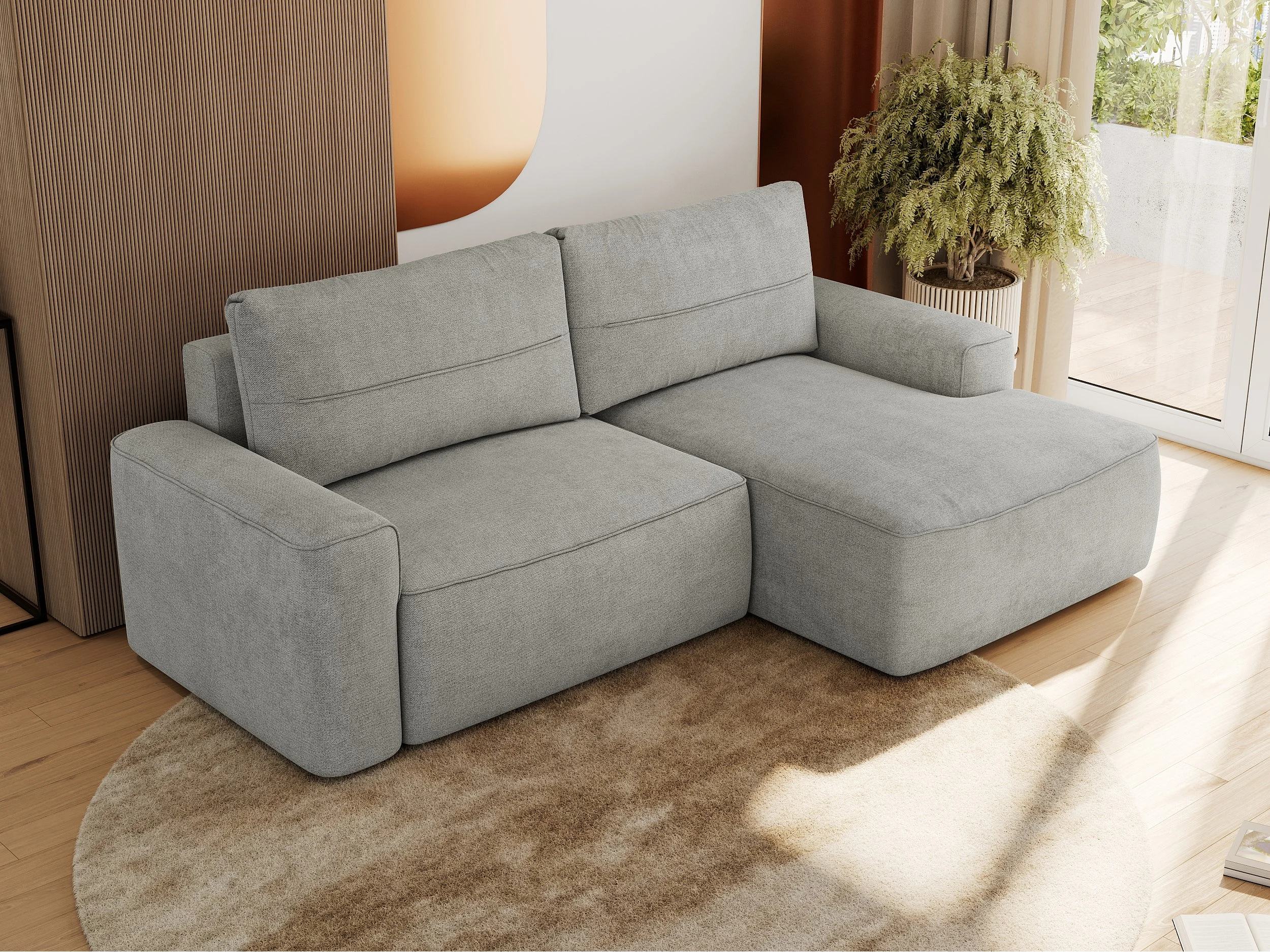 Ecksofa BELLUNO - Schlafsofa mit Bettkasten, Armlehnen, Couch L-form mit Schlaffunktion - Hellgrau Strukture - Ecke Rechts