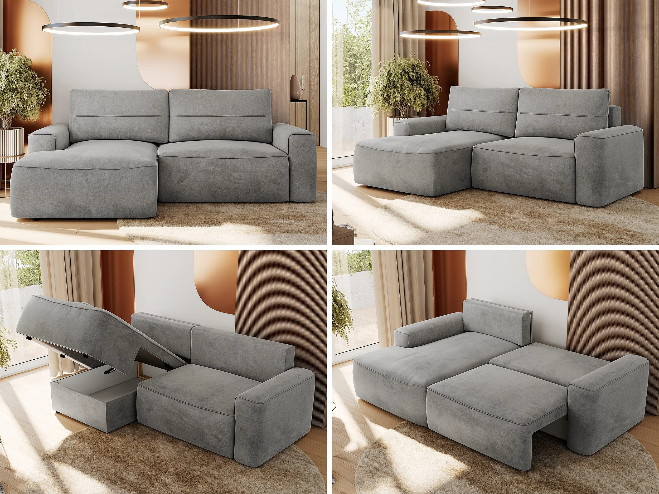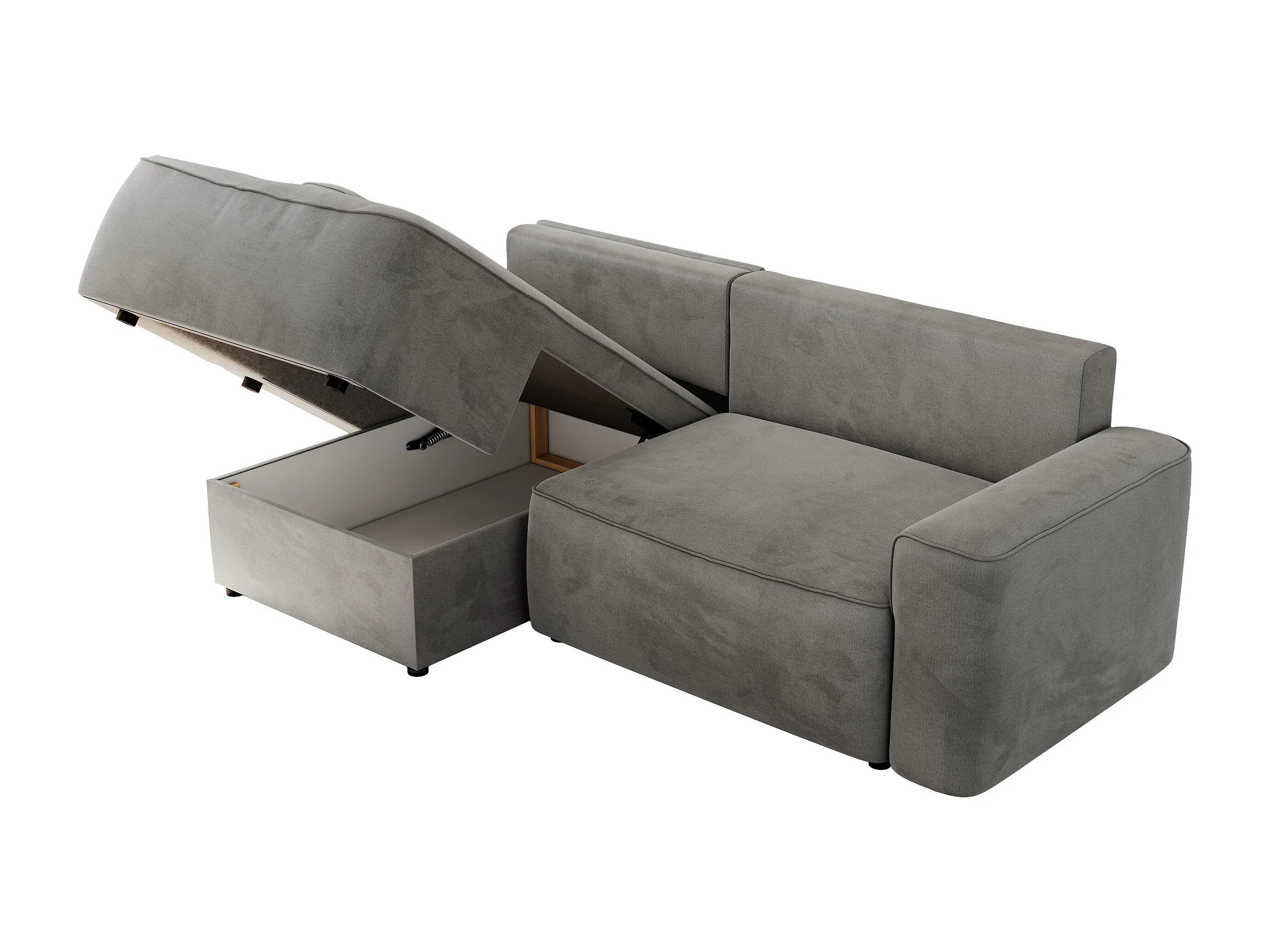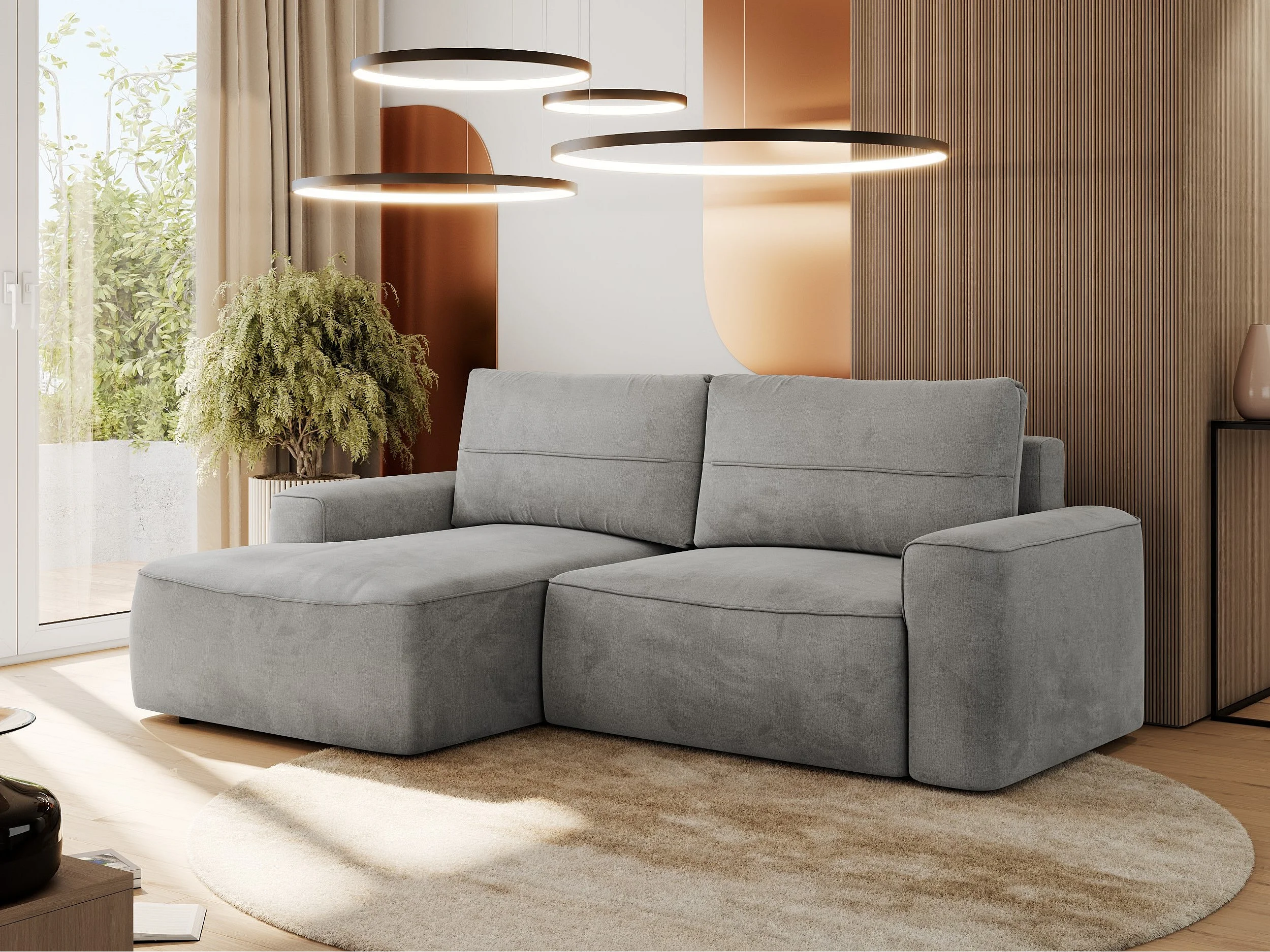 Ecksofa BELLUNO - Schlafsofa mit Bettkasten, Armlehnen, Couch L-form mit Schlaffunktion - Hellgrau Velvet - Ecke Links