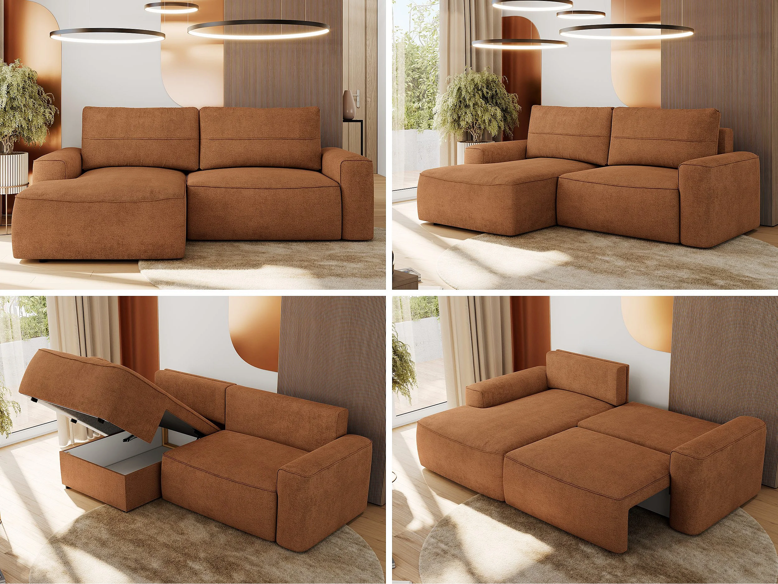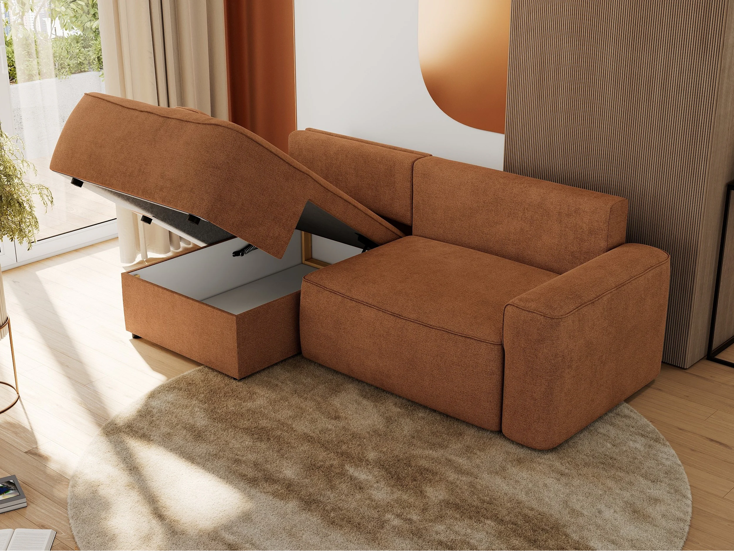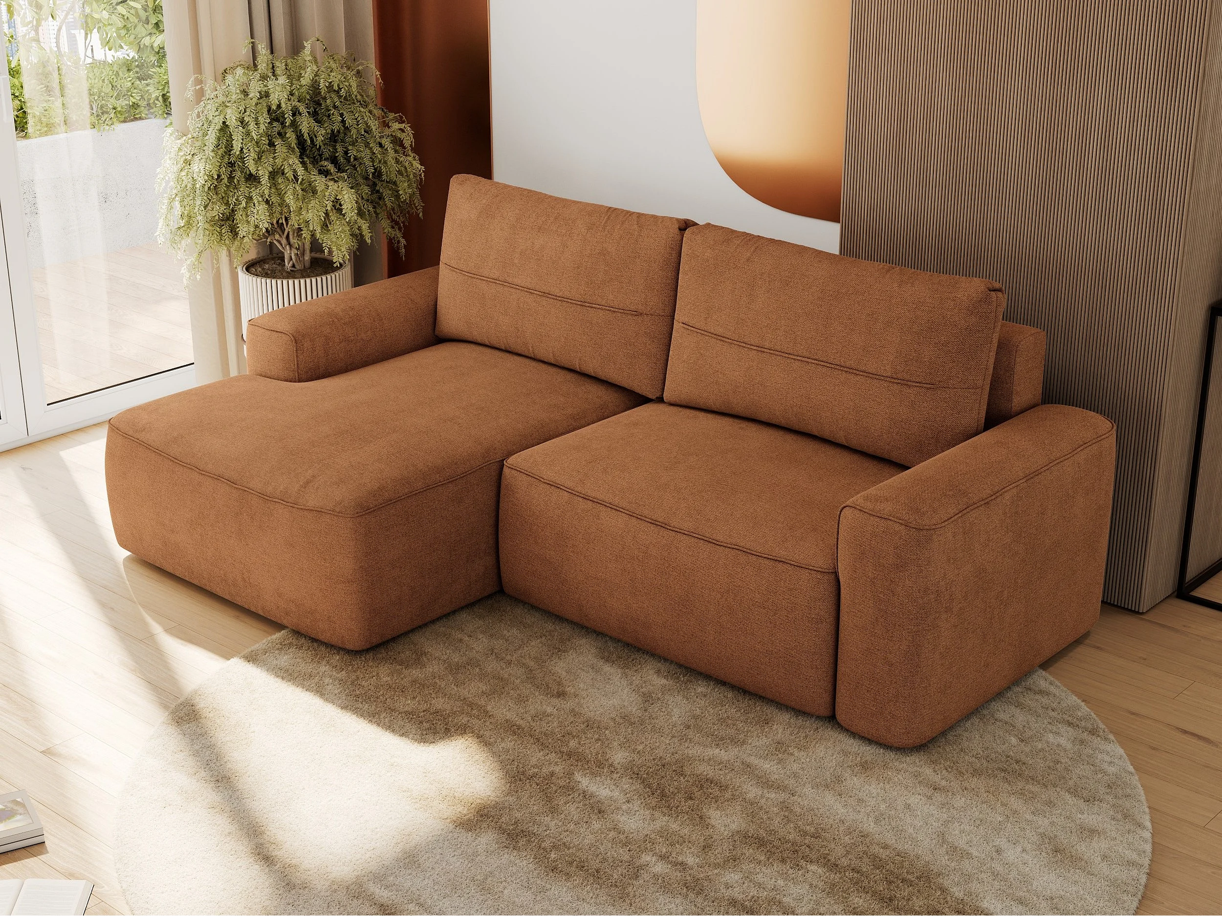 Ecksofa BELLUNO - Schlafsofa mit Bettkasten, Armlehnen, Couch L-form mit Schlaffunktion - Orange Strukture - Ecke Links