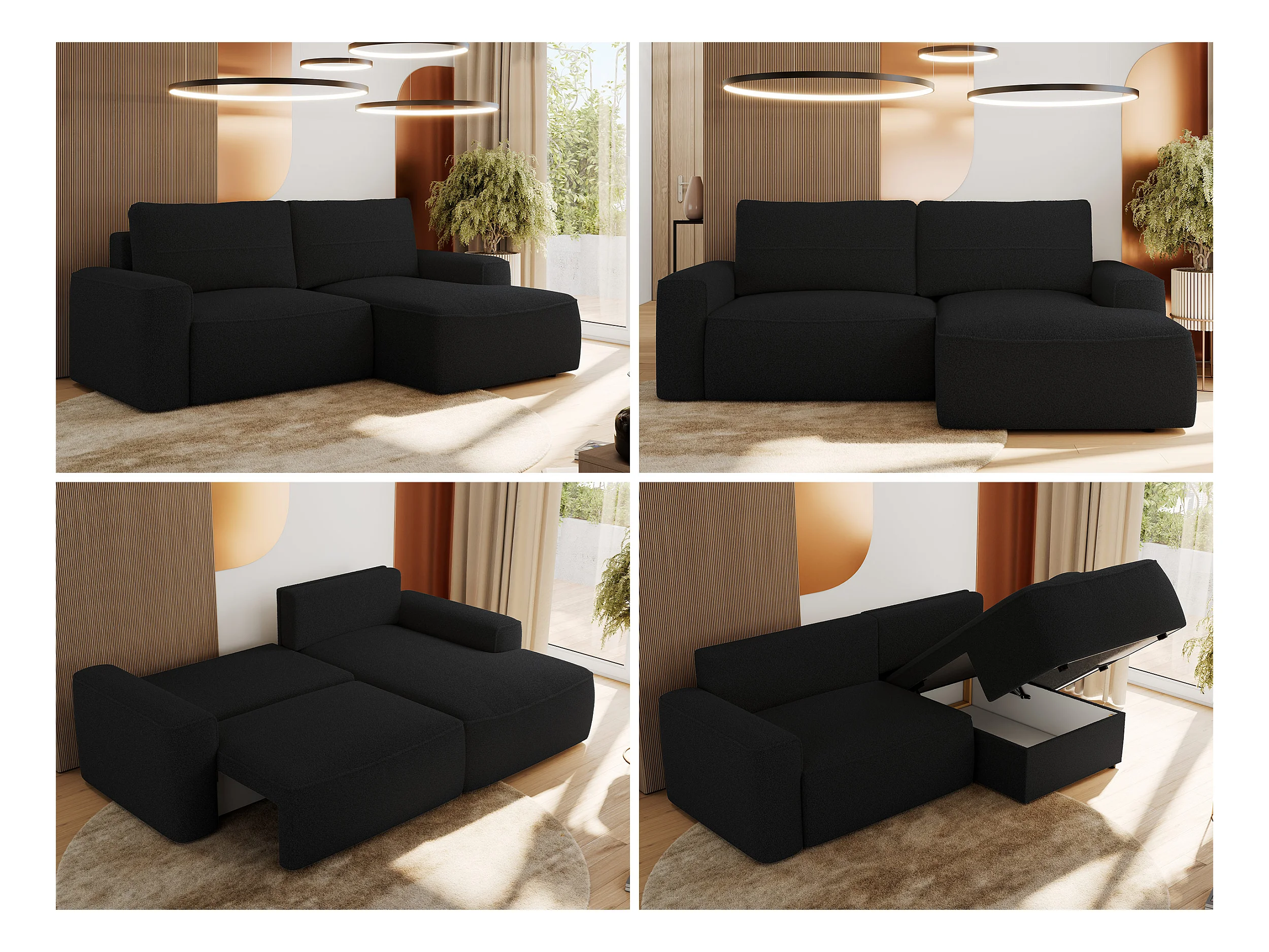 Ecksofa BELLUNO - Schlafsofa mit Bettkasten, Armlehnen, Couch L-form mit Schlaffunktion - Schwarz Boucle - Ecke Rechts