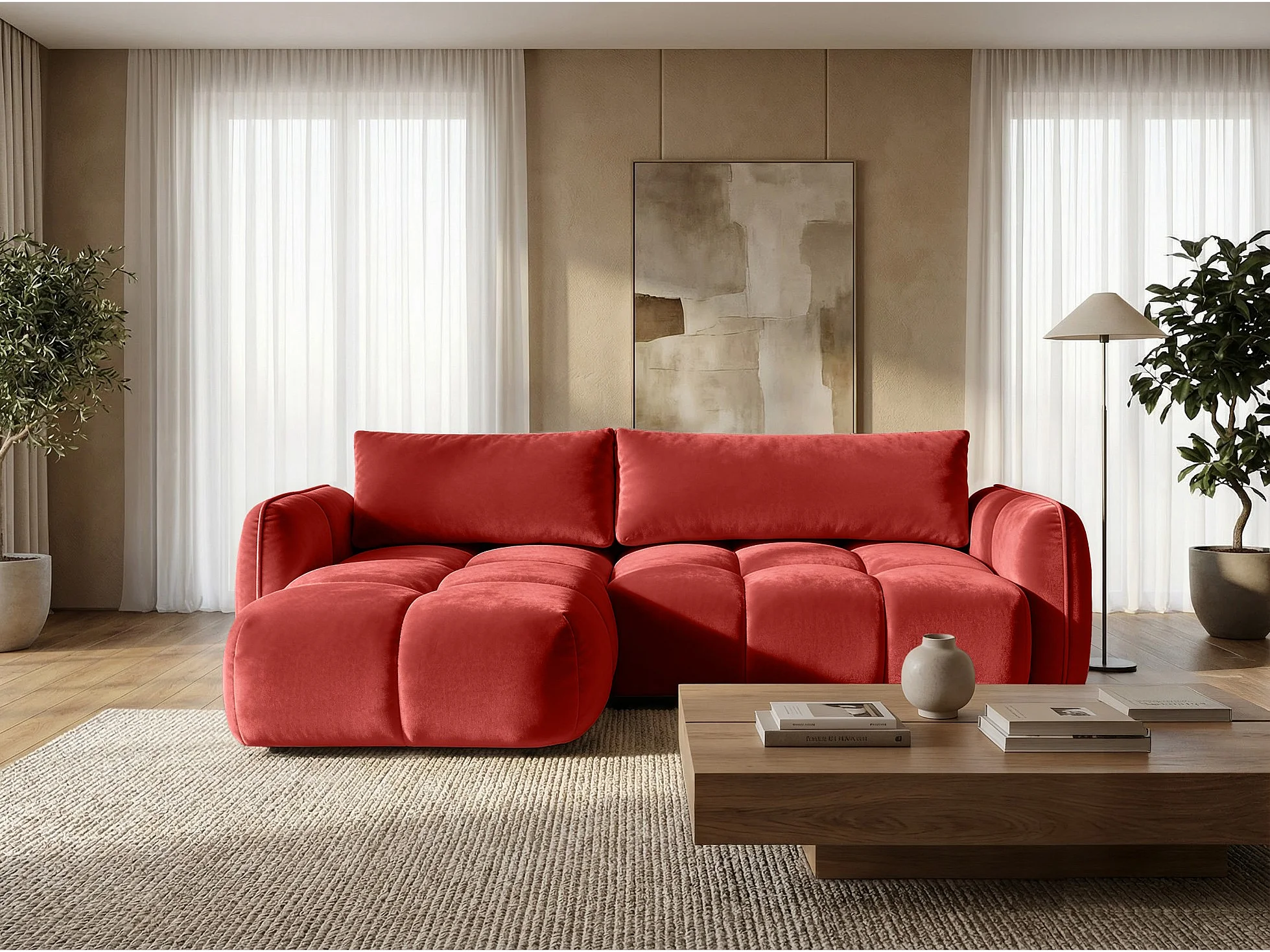 Ecksofa BELVEO mit Schlaffunktion und Bettkasten L-Form Ausrichtung Links Stoff Bluvel 59