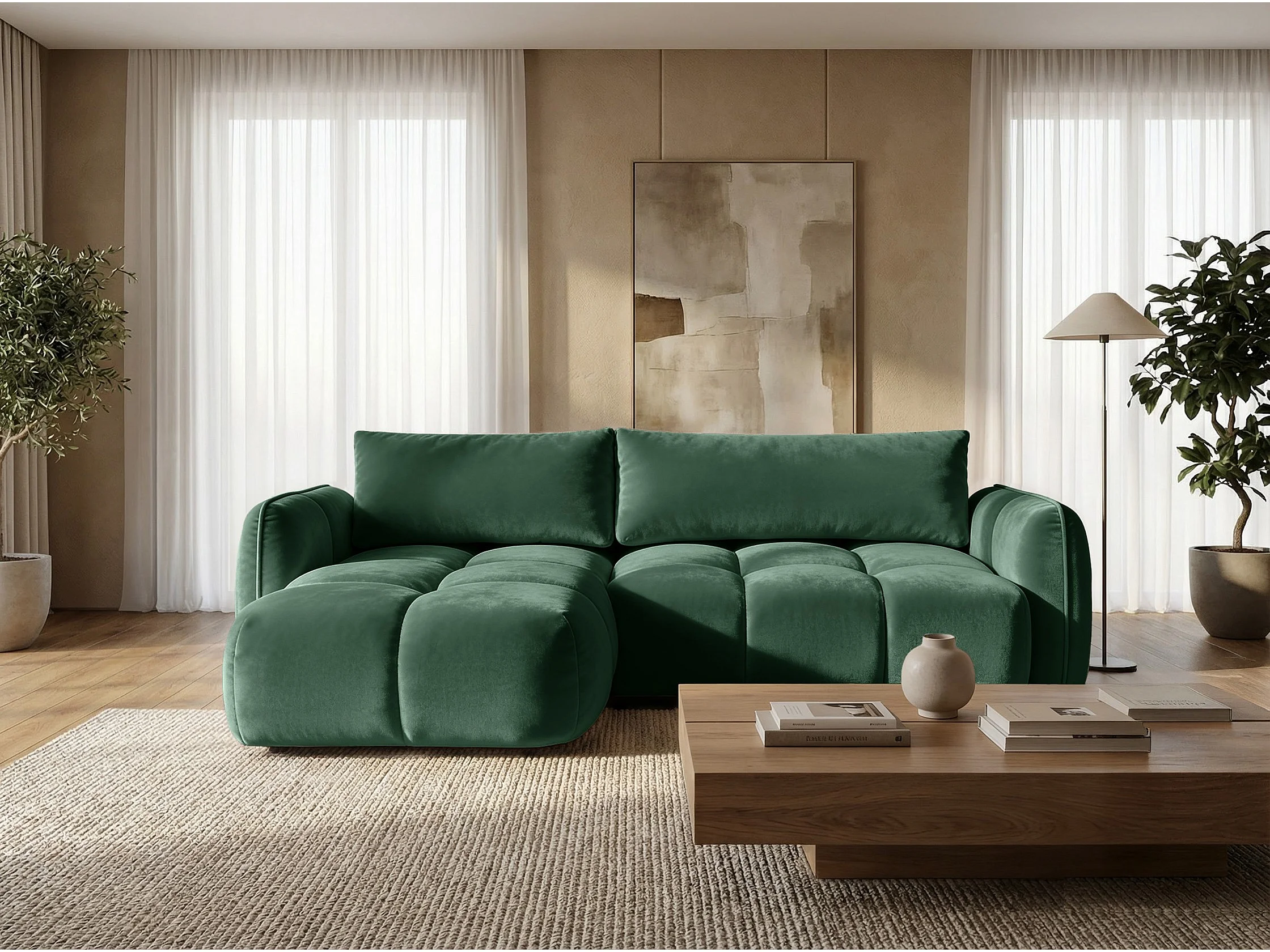 Ecksofa BELVEO mit Schlaffunktion und Bettkasten L-Form Ausrichtung Links Stoff Bluvel 78