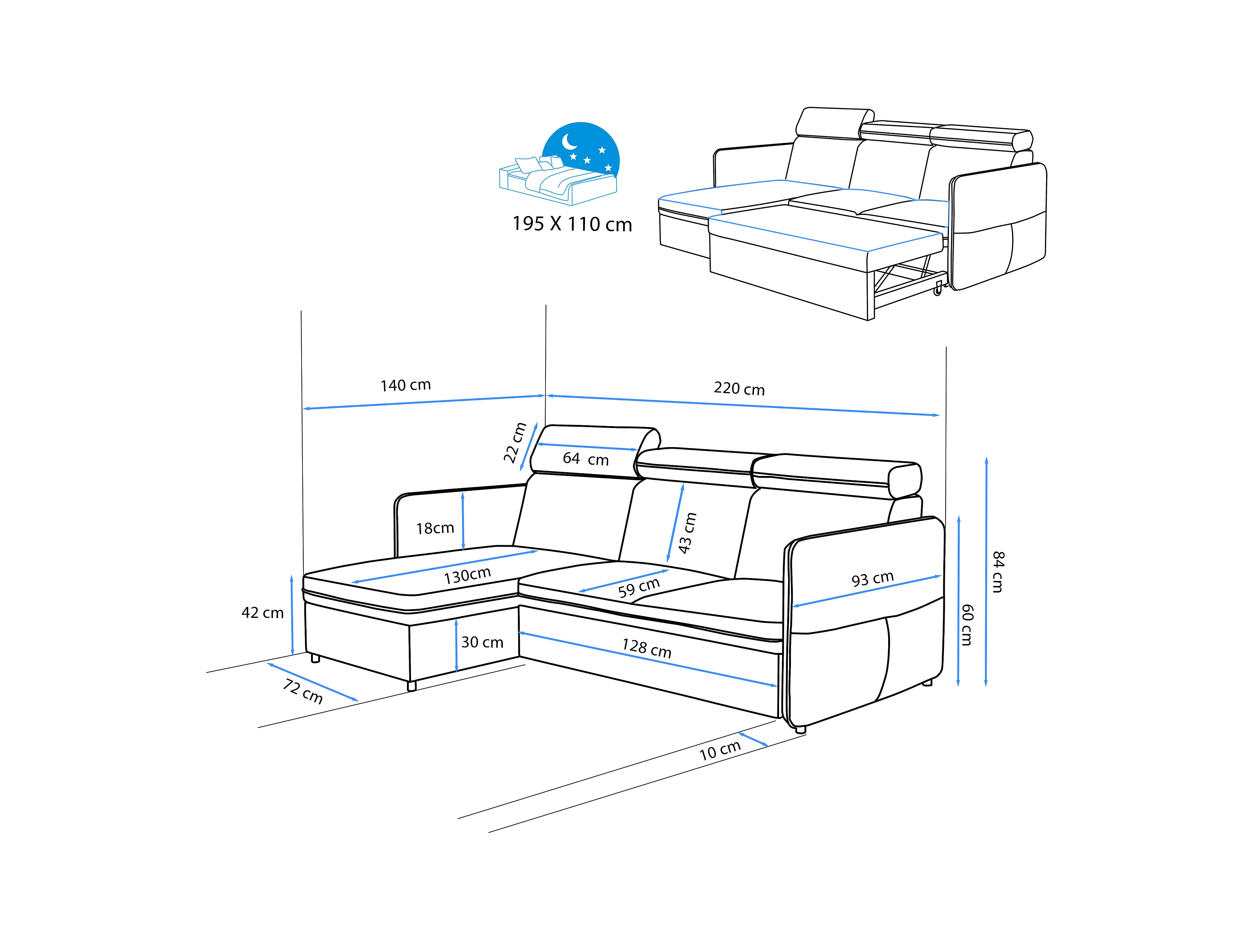 Ecksofa Beni, umkehrbar, in Beige umwandelbarer Stoff.