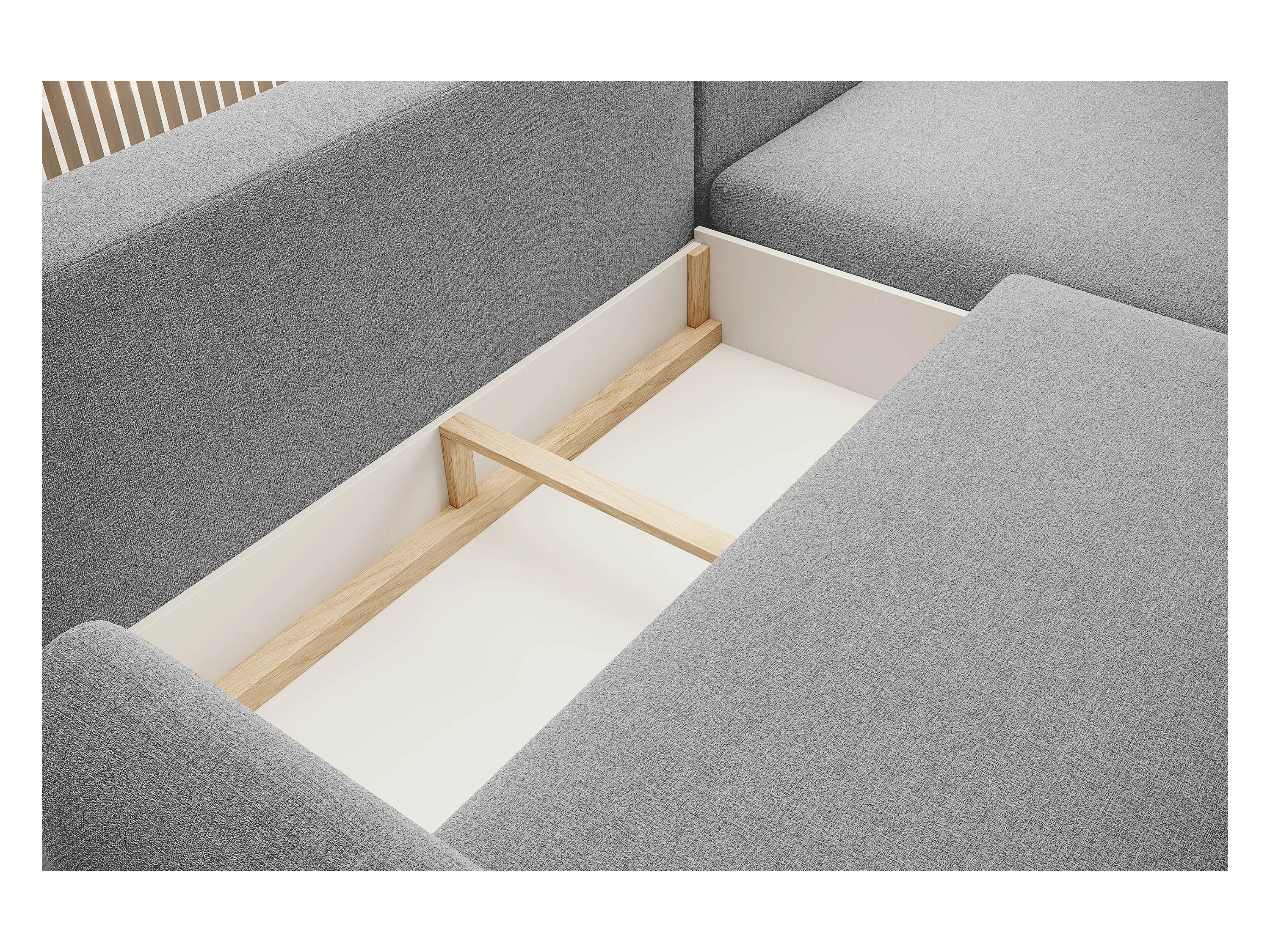 ECKSOFA BONO Stilvolles Sofa mit Schlaffunktion, Robuste Holzfüße, Elegante Armlehnen, Tiefe Sitzfläche 226x164x88cm, Linke Seite Esche
