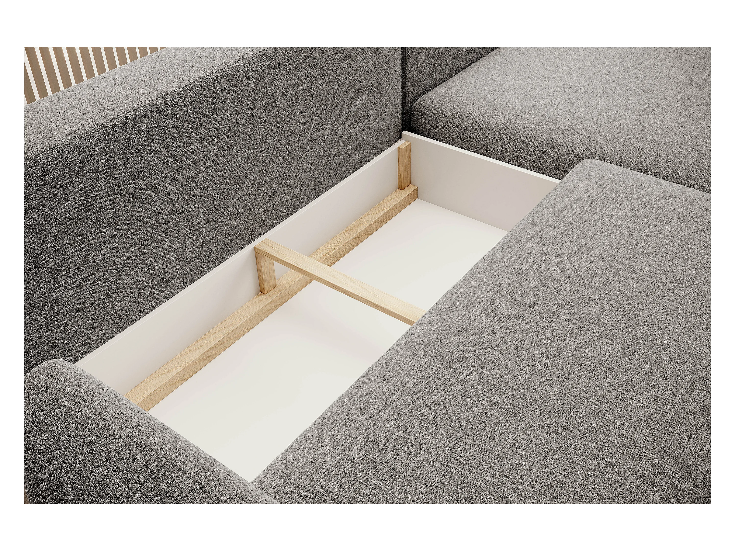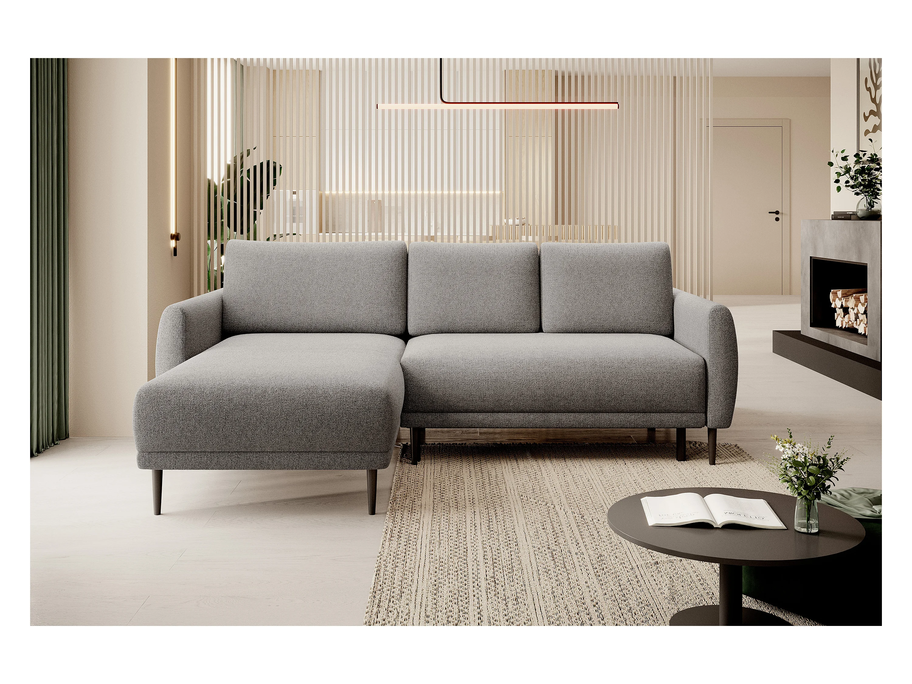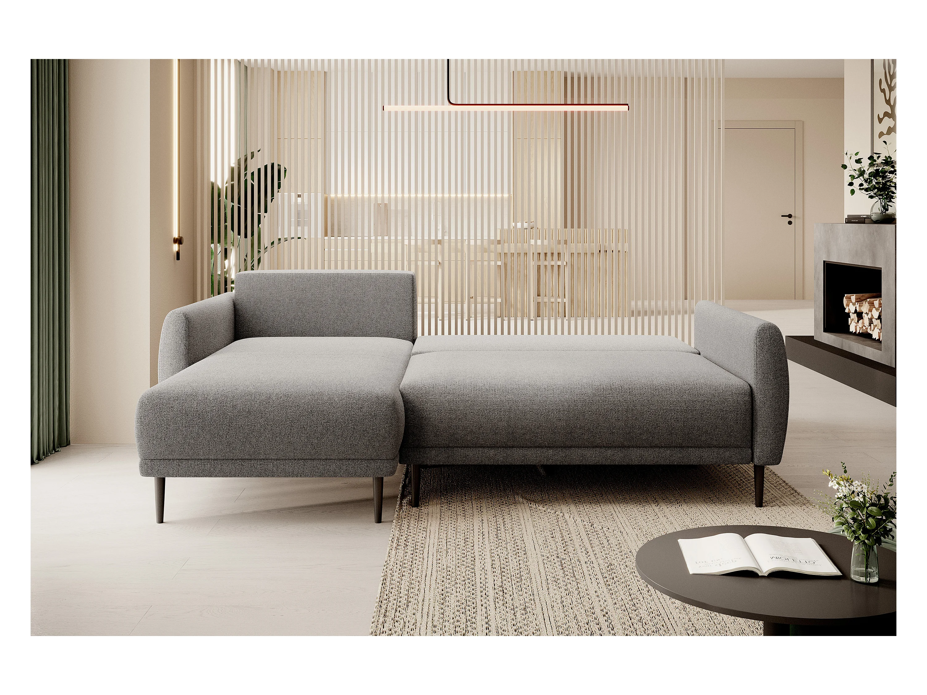 ECKSOFA BONO Stilvolles Sofa mit Schlaffunktion, Robuste Holzfüße, Elegante Armlehnen, Tiefe Sitzfläche 226x164x88cm, Linke Seite Grau