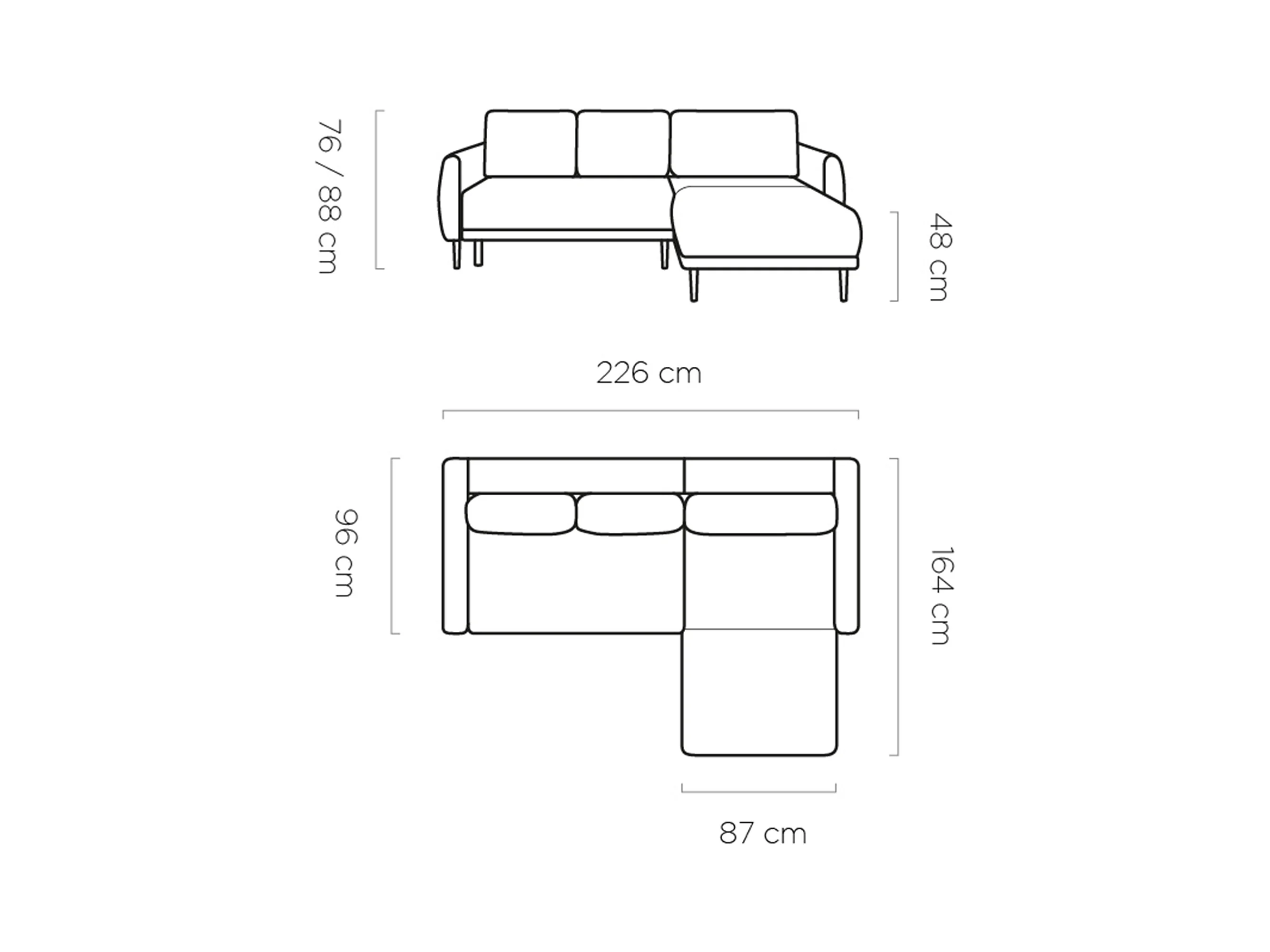 ECKSOFA BONO Stilvolles Sofa mit Schlaffunktion, Robuste Holzfüße, Elegante Armlehnen, Tiefe Sitzfläche 226x164x88cm, Linke Seite Schwarz