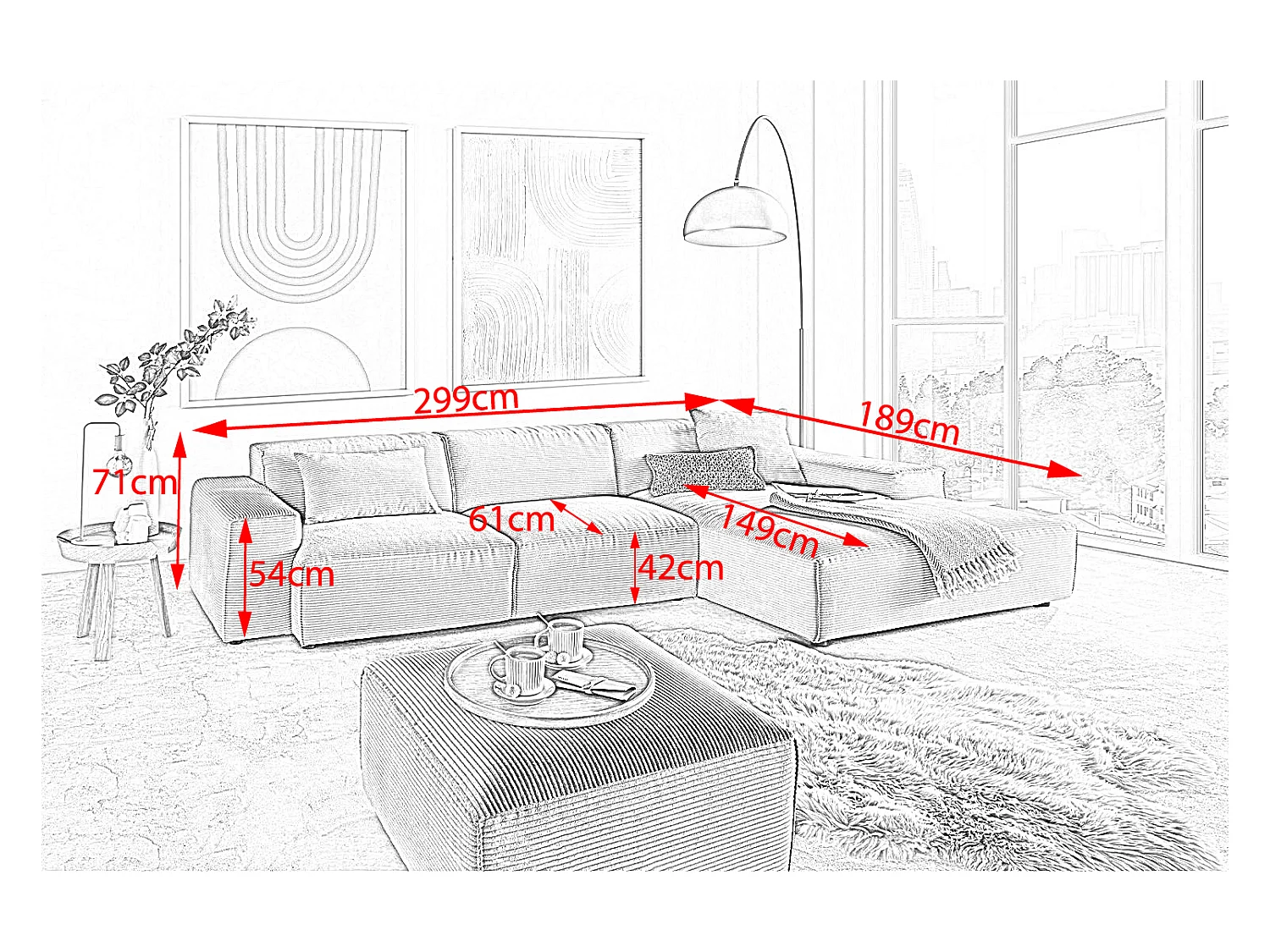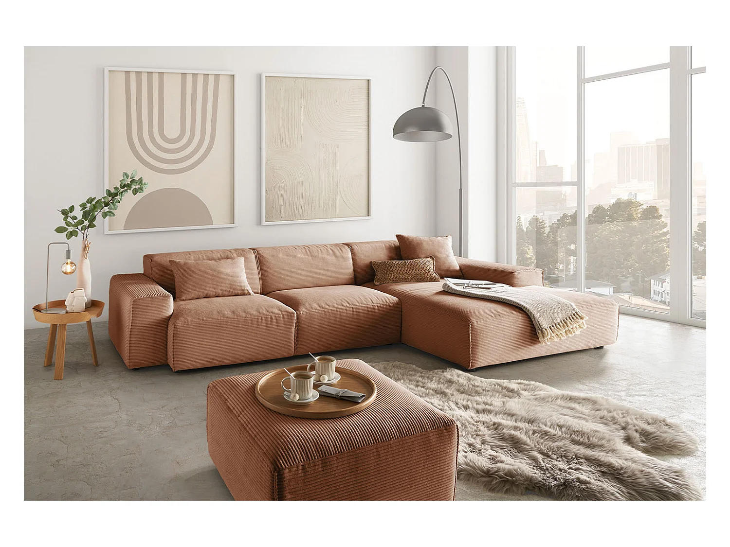 Ecksofa - Braun Cord - RANI