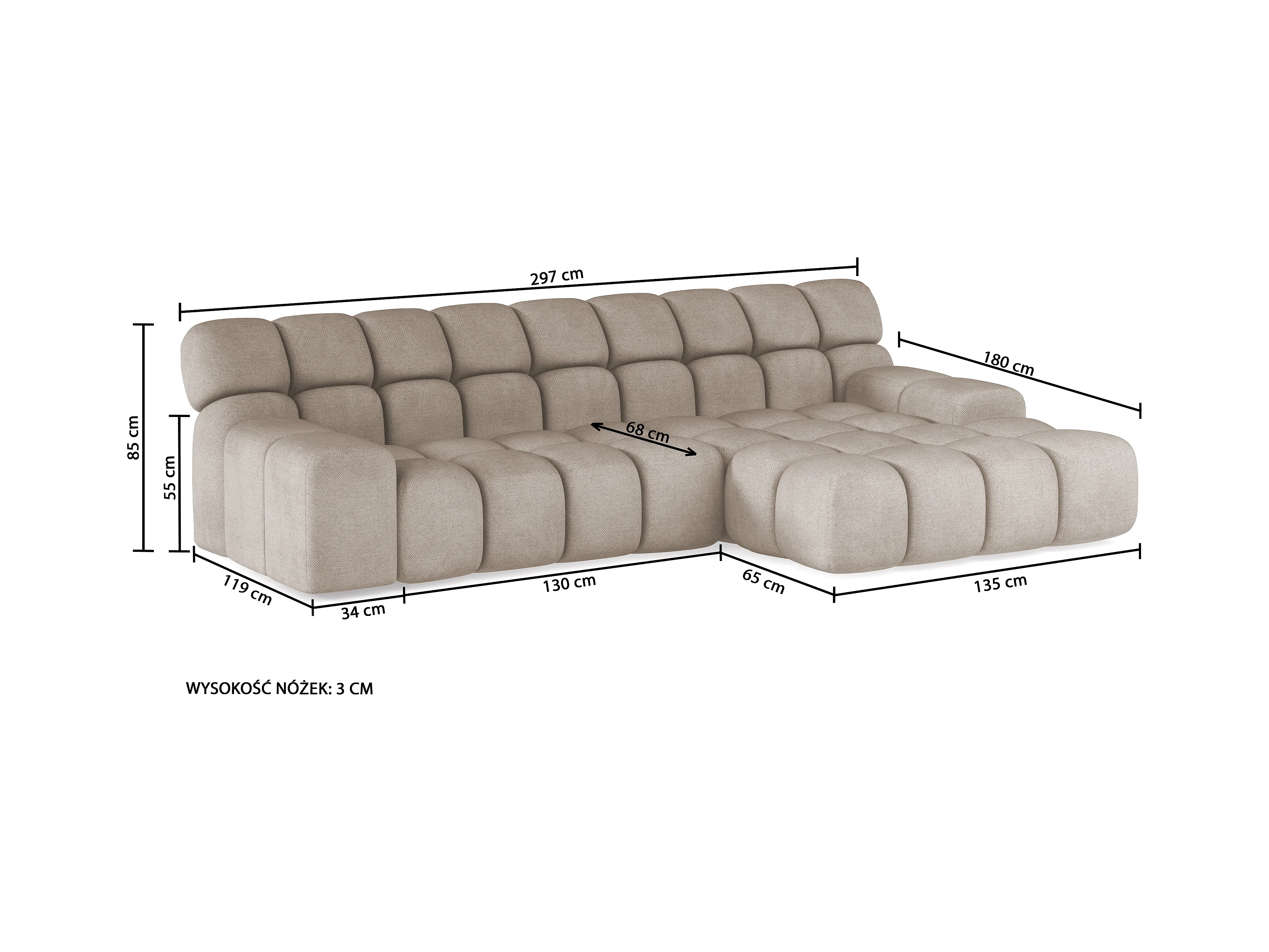 Ecksofa CAMPILE mit elektrisch verschiebbarem Sitz, verstellbare Kopfstützen, Rechts-Layout, 288x119x85 cm, Farbe Orange