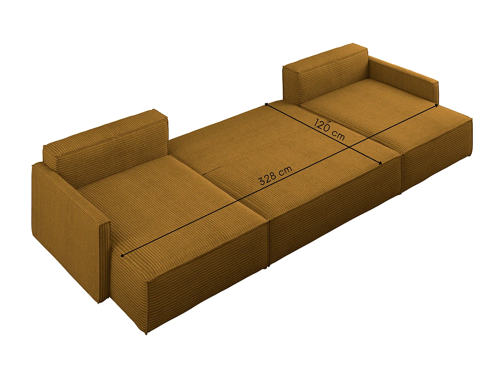 Ecksofa Carlos Mit Schlaffunktion und Bettkasten Elegante Stoff Poso Senffarbe