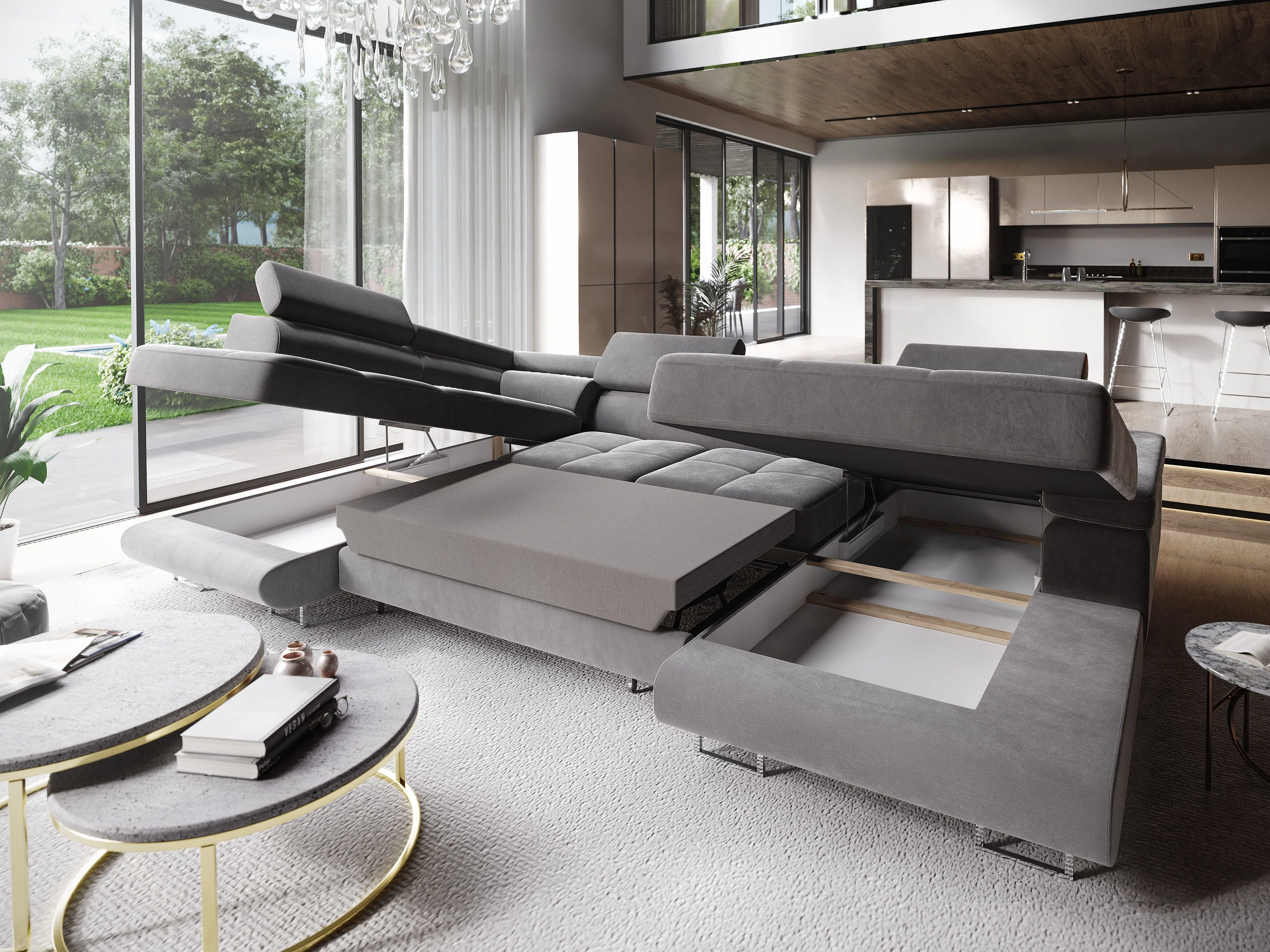 ECKSOFA CASONE L-S Braun Velours-Stoff mit Schlaffunktion