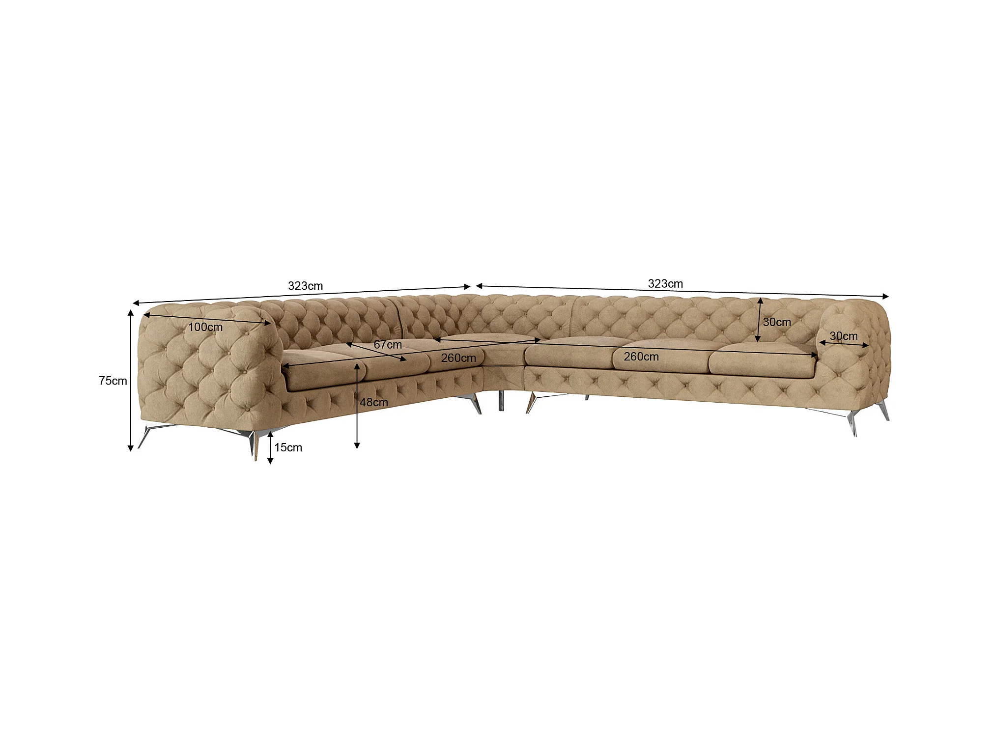 Ecksofa Chesterfield Celeste mit Silber Metall Füßen