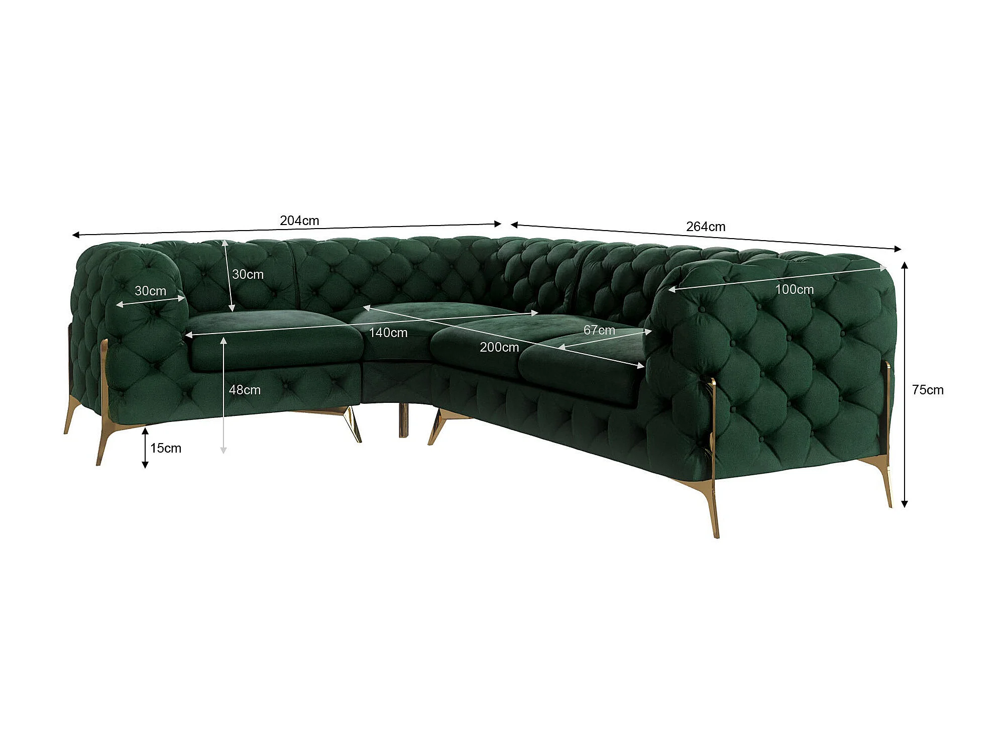 Ecksofa Chesterfield Ulysses mit Goldene Metall Füßen