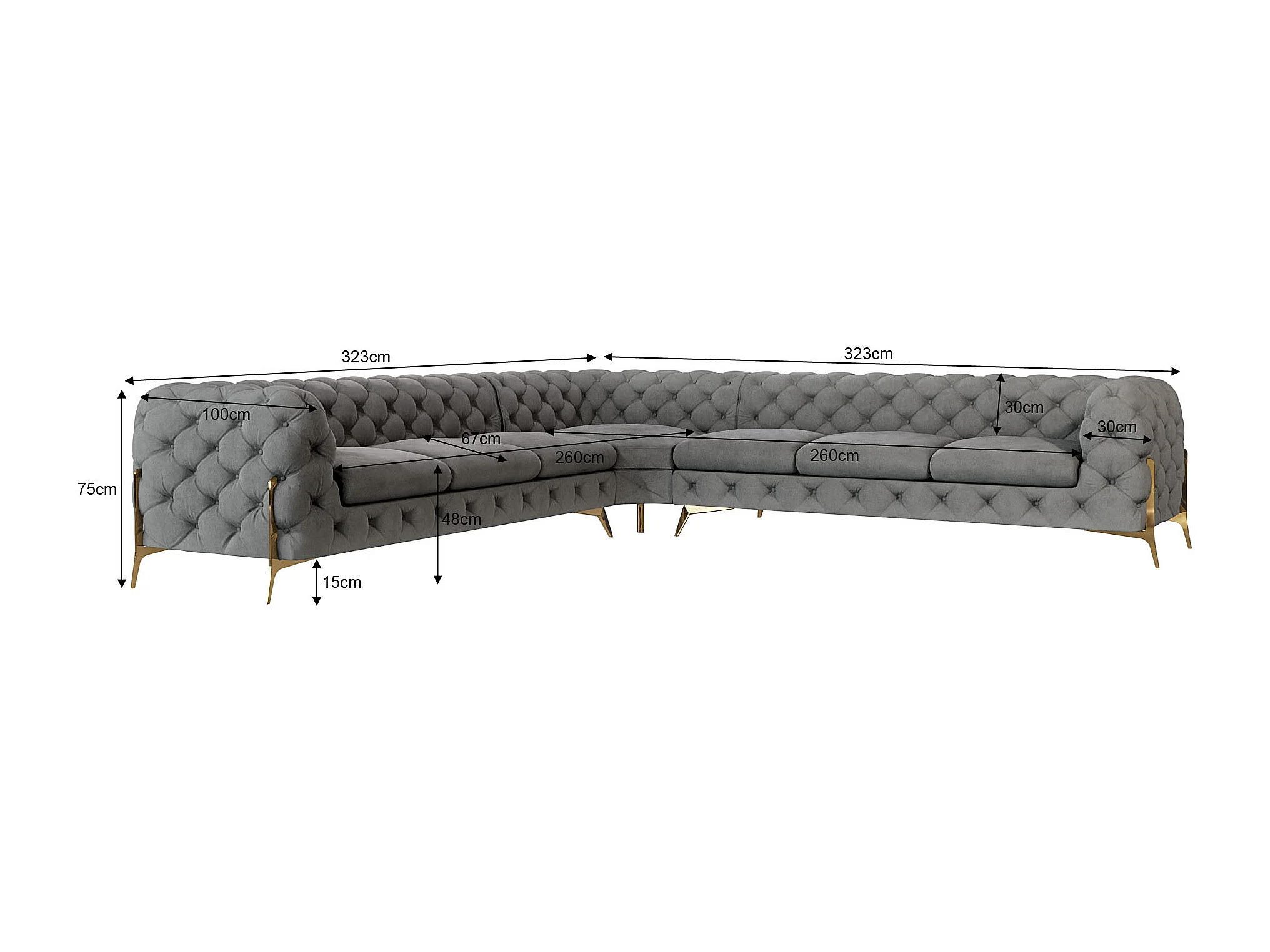 Ecksofa Chesterfield Ulysses mit Goldene Metall Füßen
