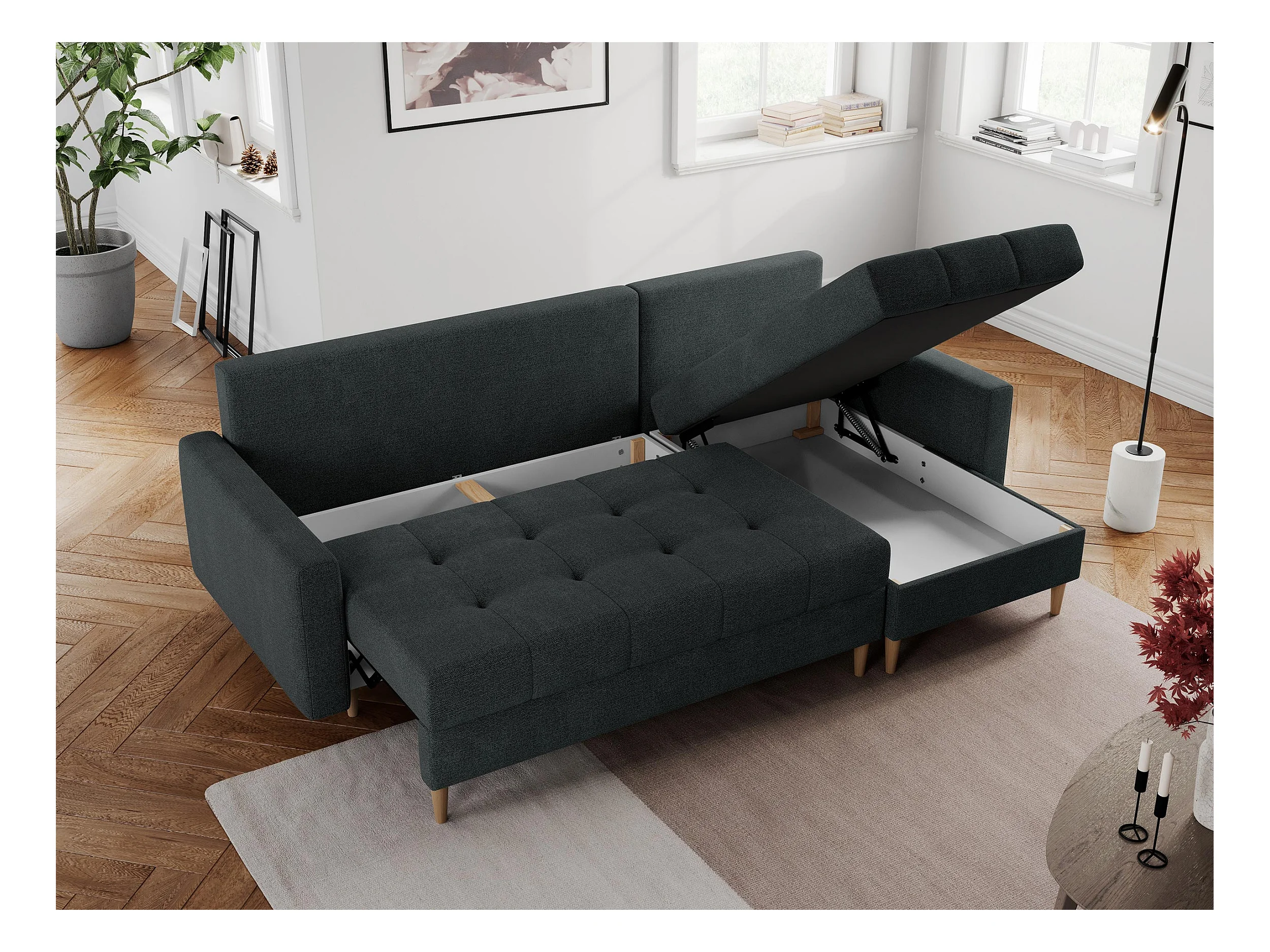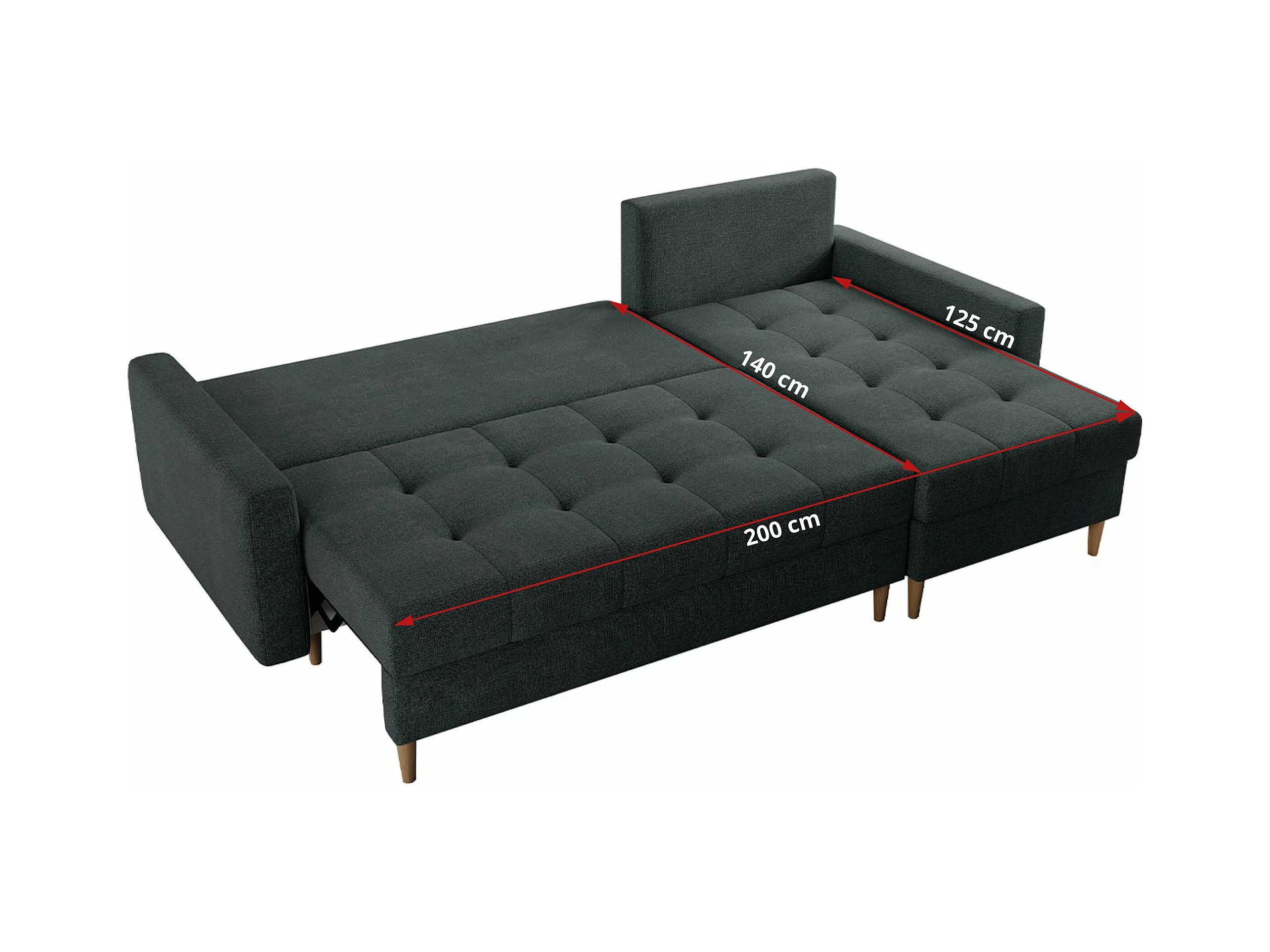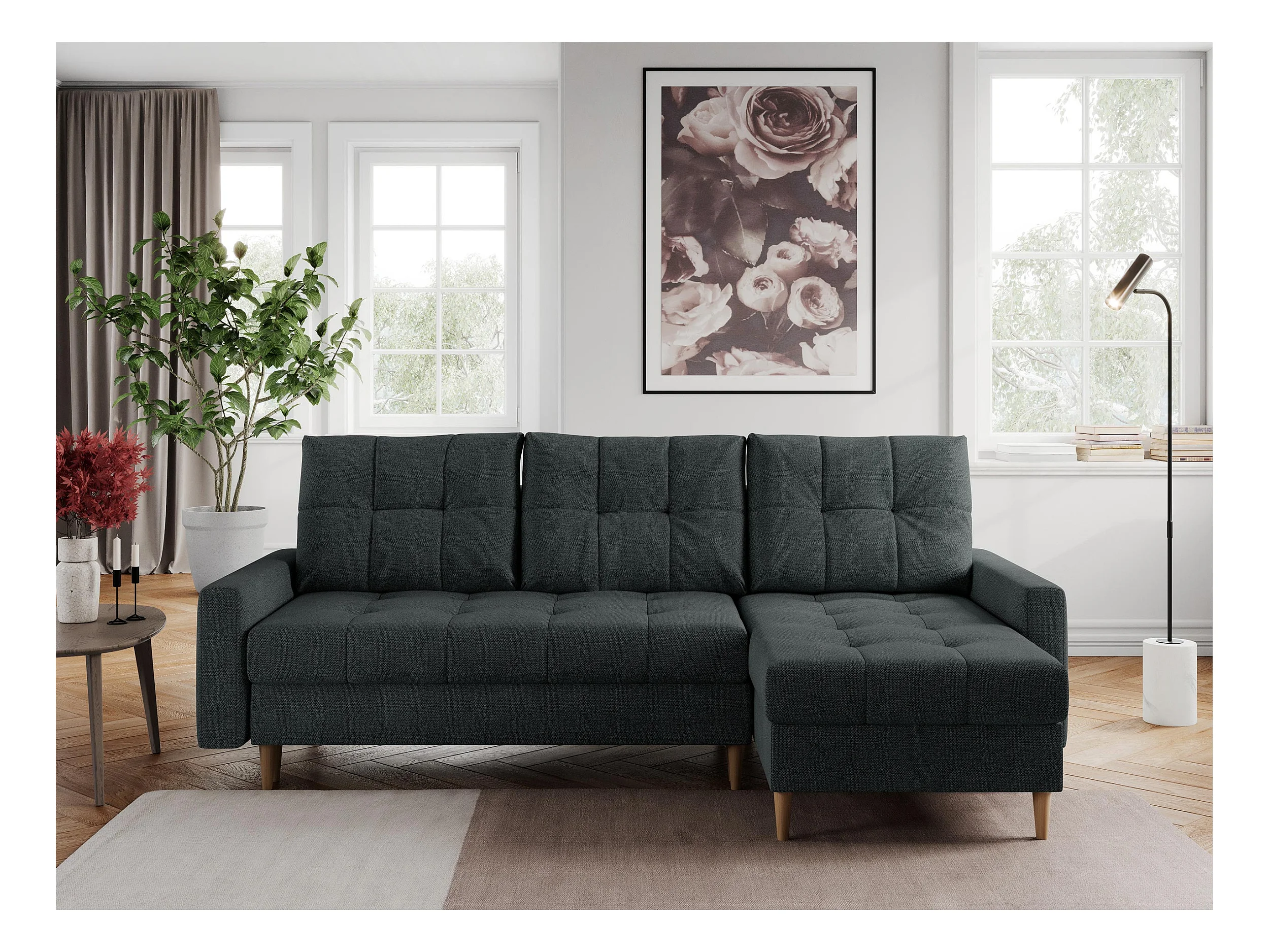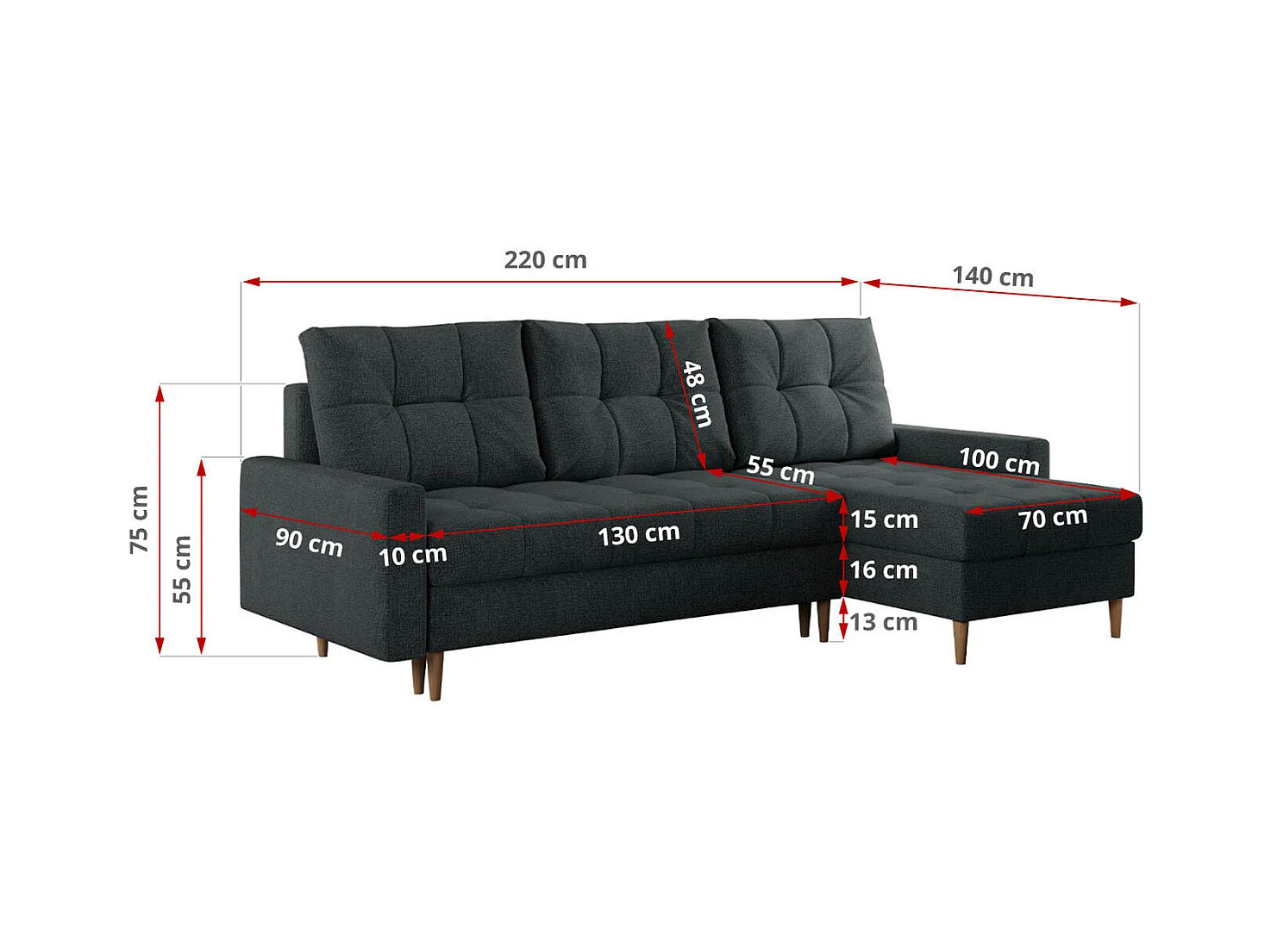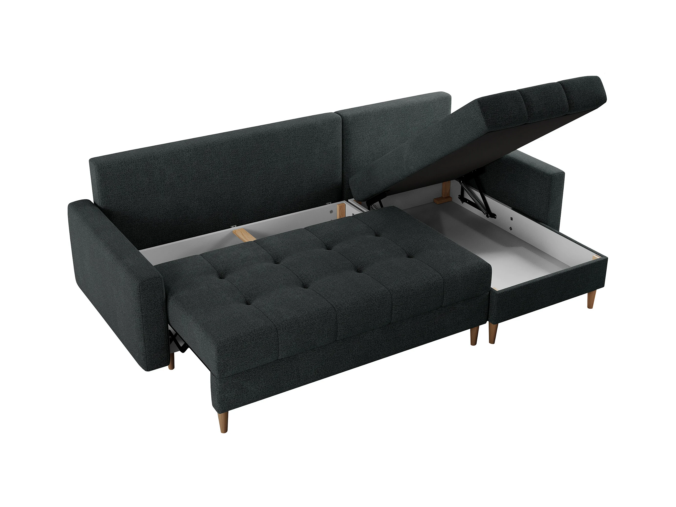 Ecksofa COLIN - gesteppte Sitzfläche, mit Schlaffunktion - Dunkelgrau Stukture