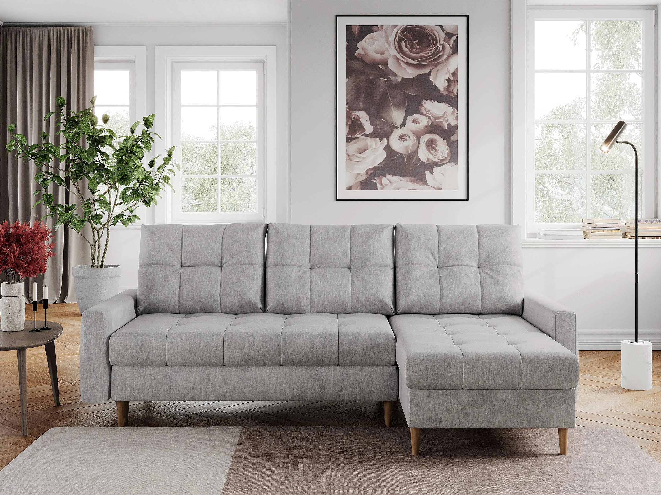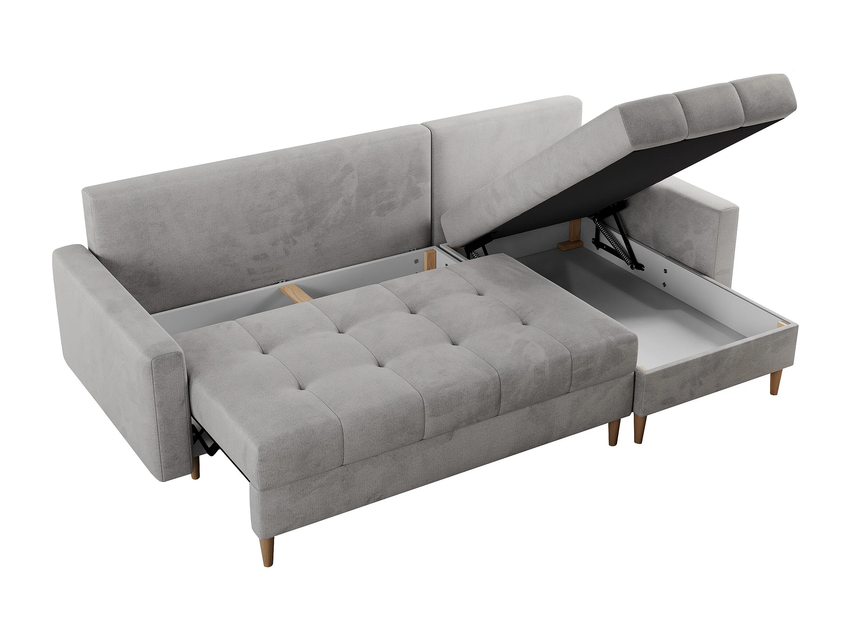Ecksofa COLIN - gesteppte Sitzfläche, mit Schlaffunktion - Hellgrau Velvet