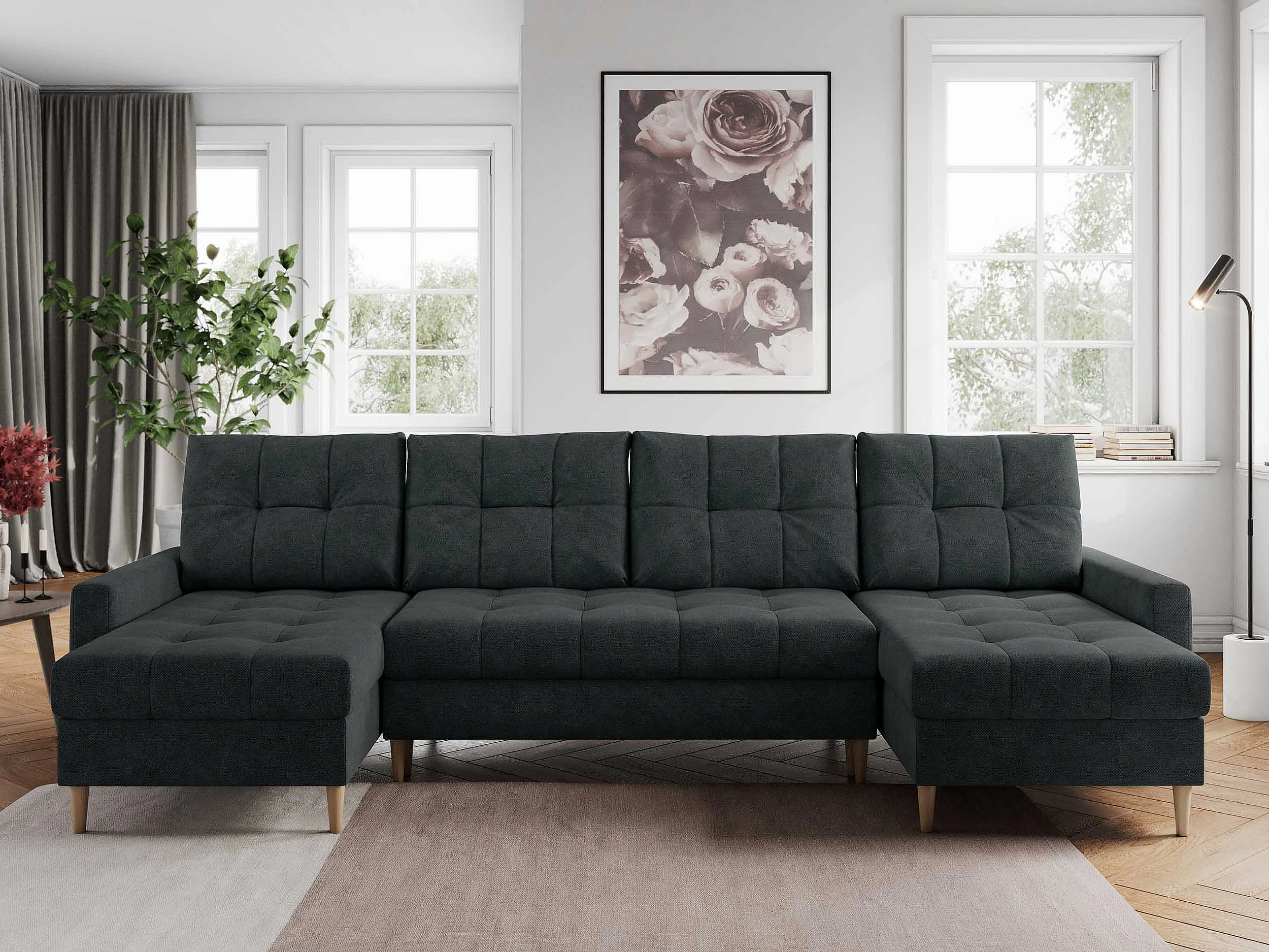 Ecksofa COLIN U mit Bettfunktion - skandinavisches design, lose Kissen - Dunkelgrau Stukture