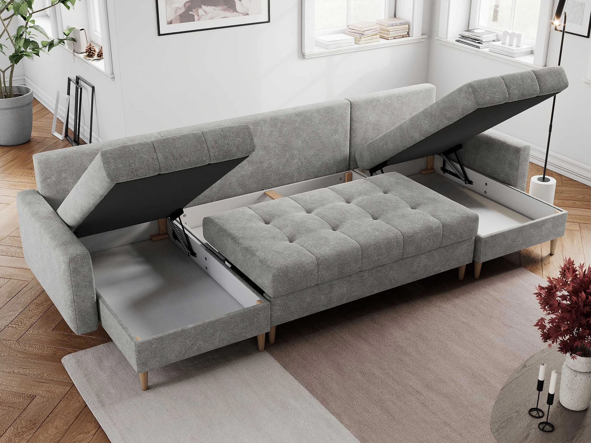 Ecksofa COLIN U mit Bettfunktion - skandinavisches design, lose Kissen - Hellgrau Stukture