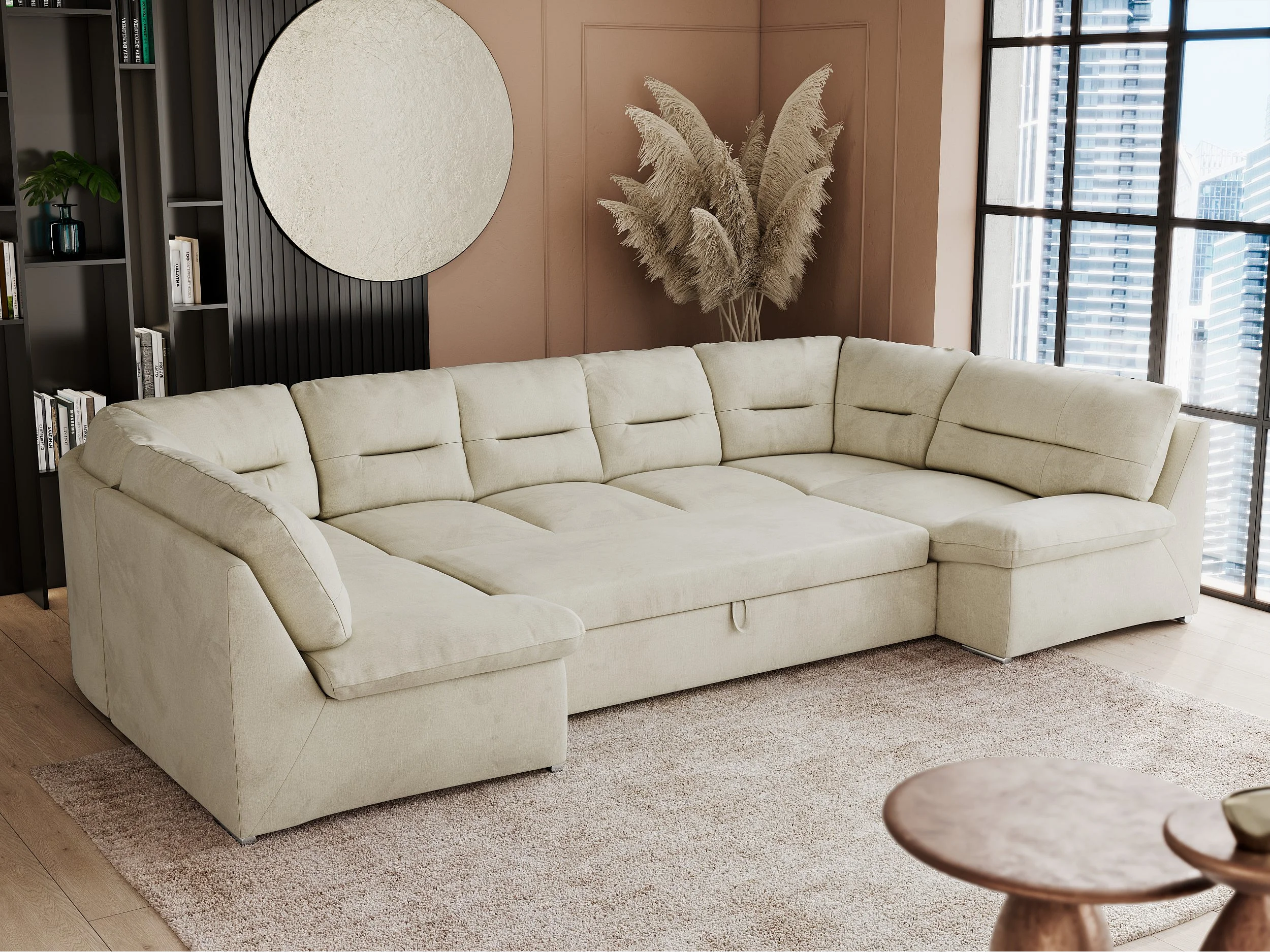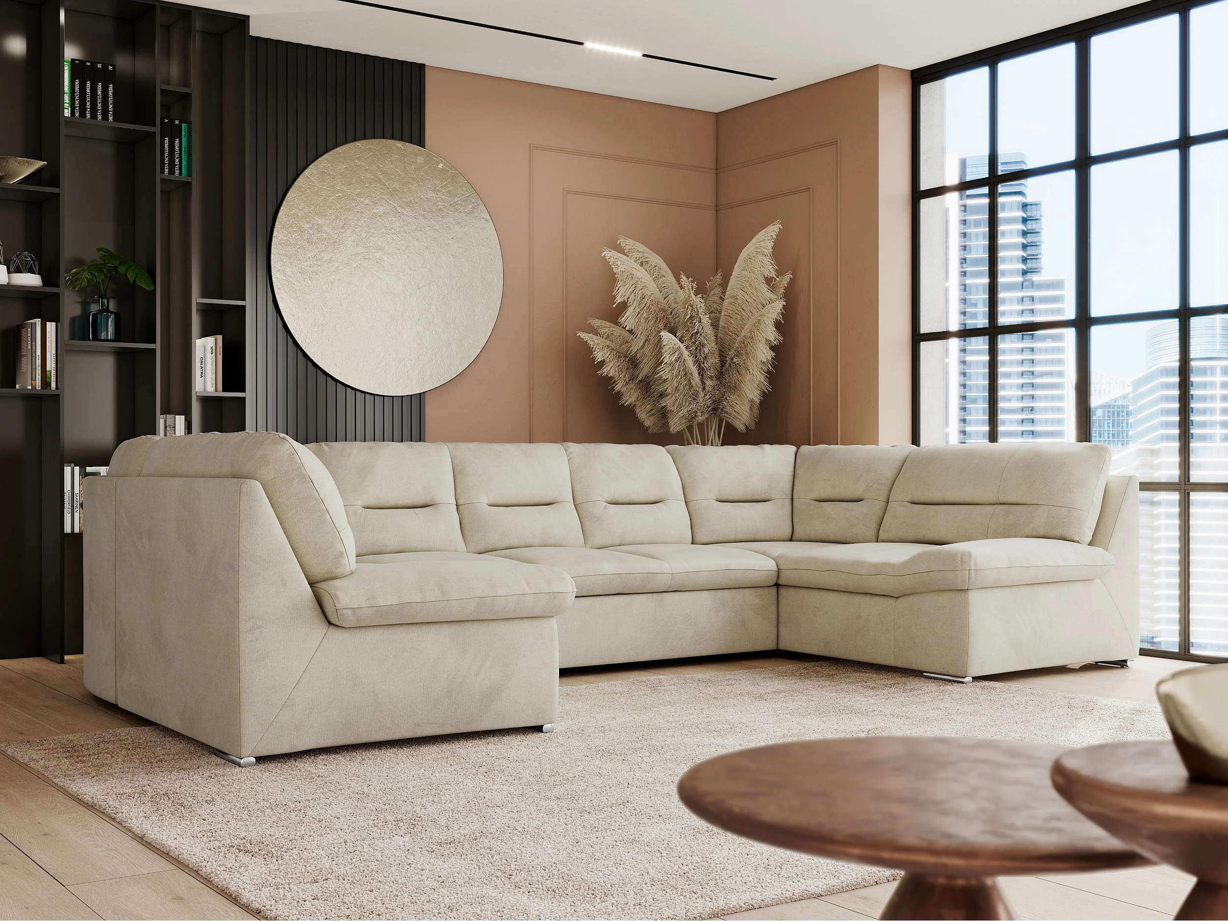 Ecksofa COMODO U, Große Wohnlandschaft, mit Schlaffunktion - Beige Velvet