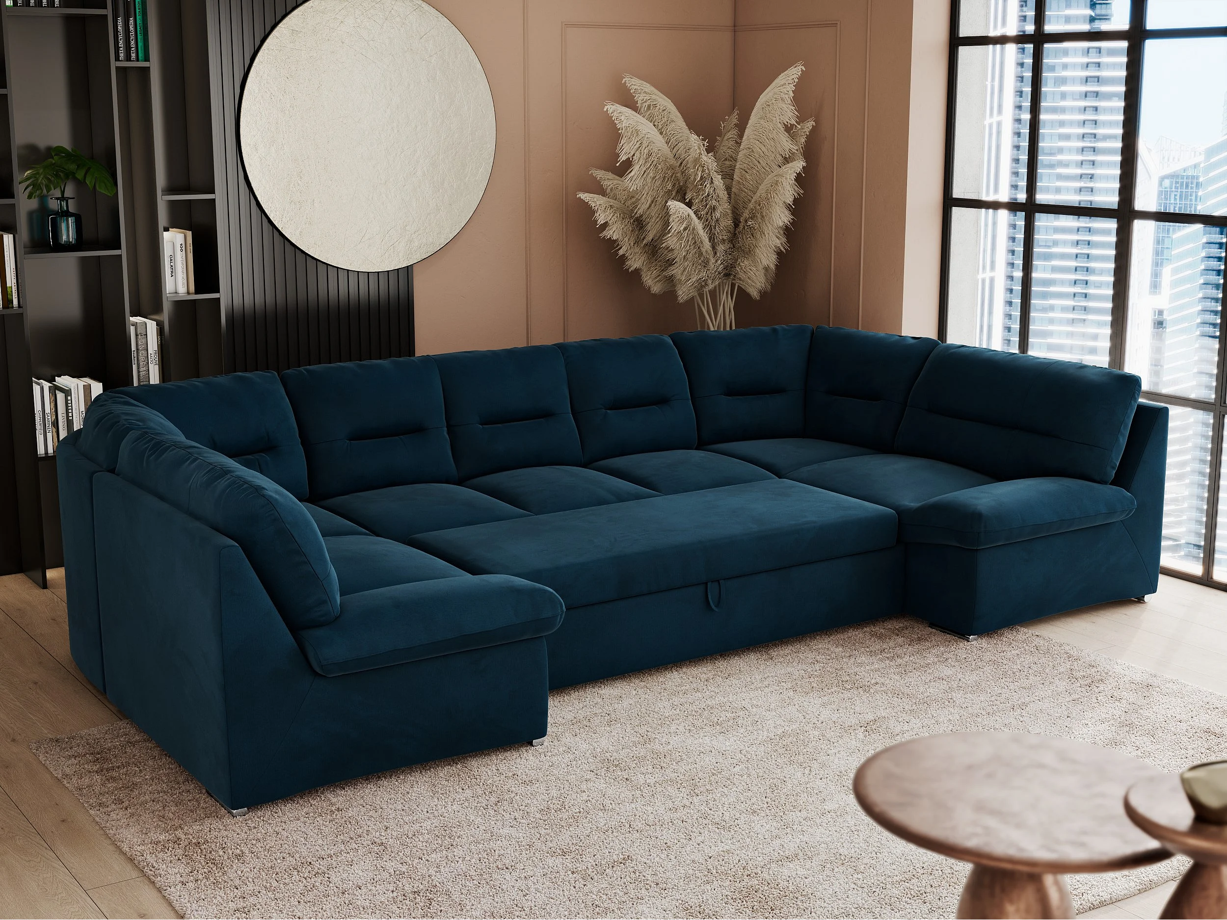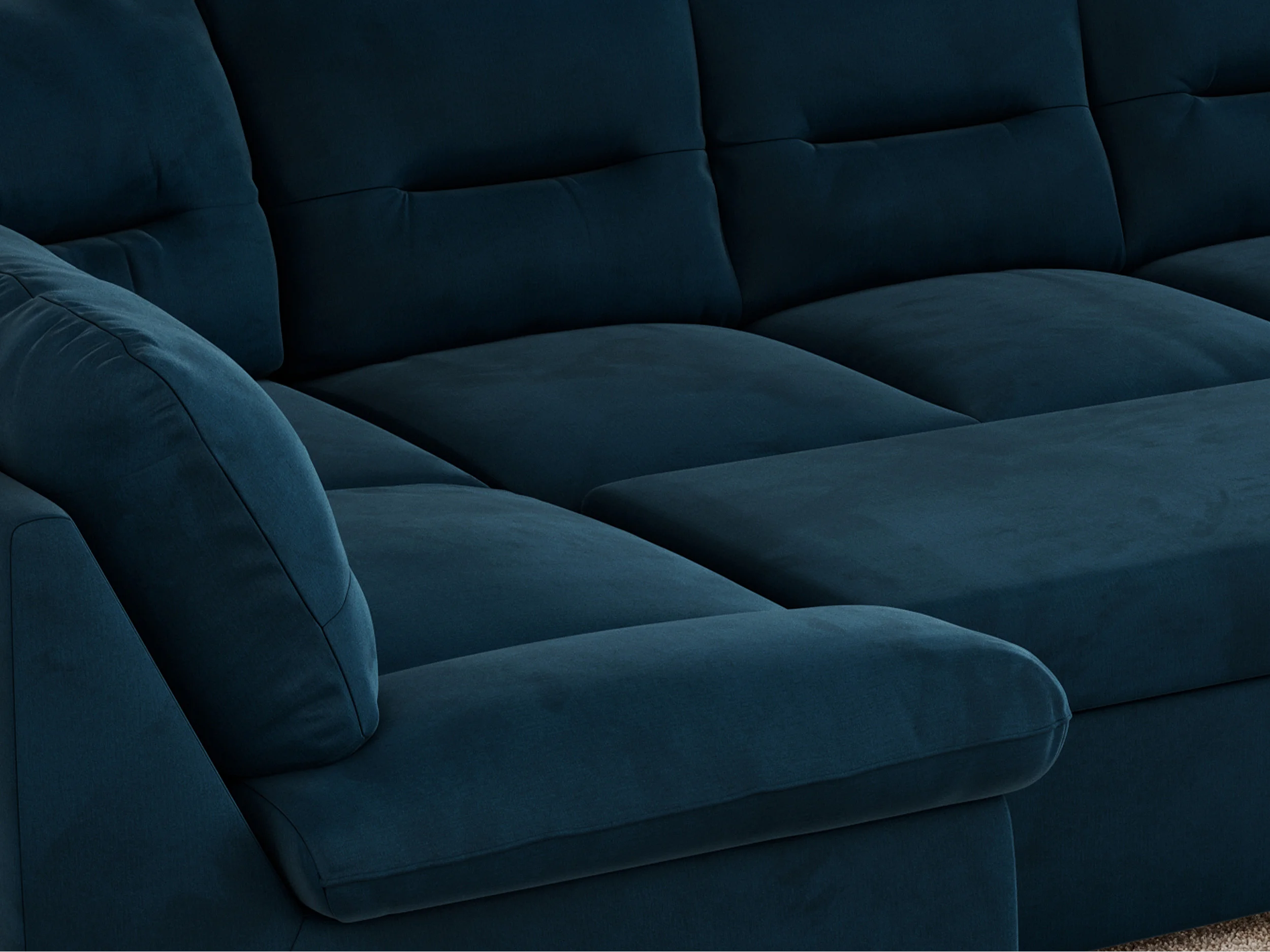 Ecksofa COMODO U, Große Wohnlandschaft, mit Schlaffunktion - Dunkelblau Velvet