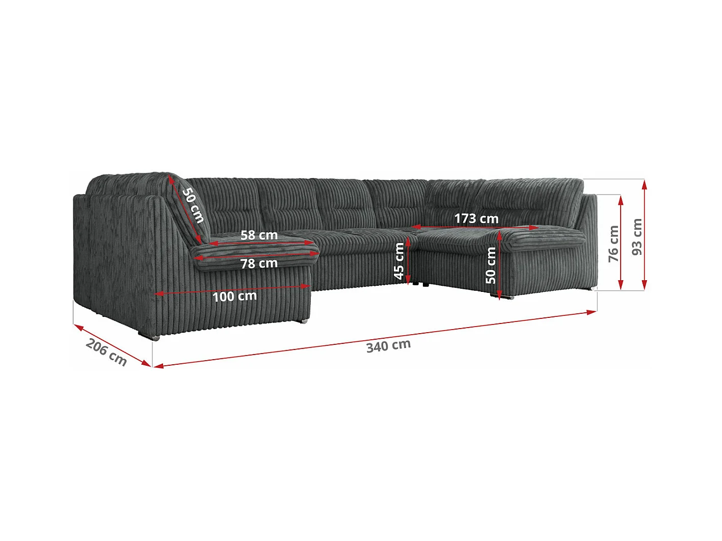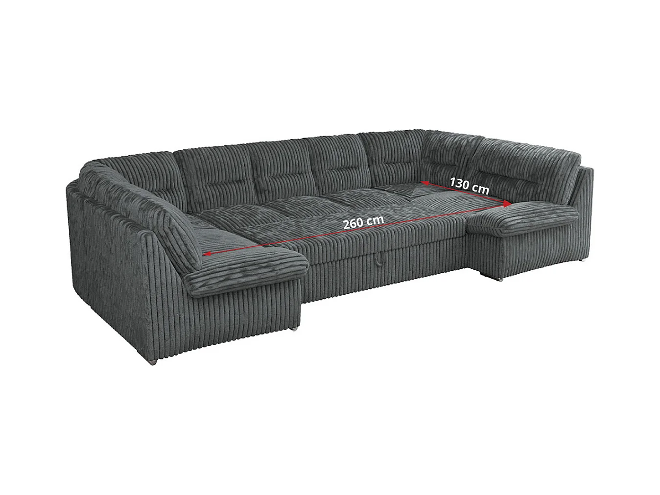 Ecksofa COMODO U, Große Wohnlandschaft, mit Schlaffunktion - Dunkelgrau Cord