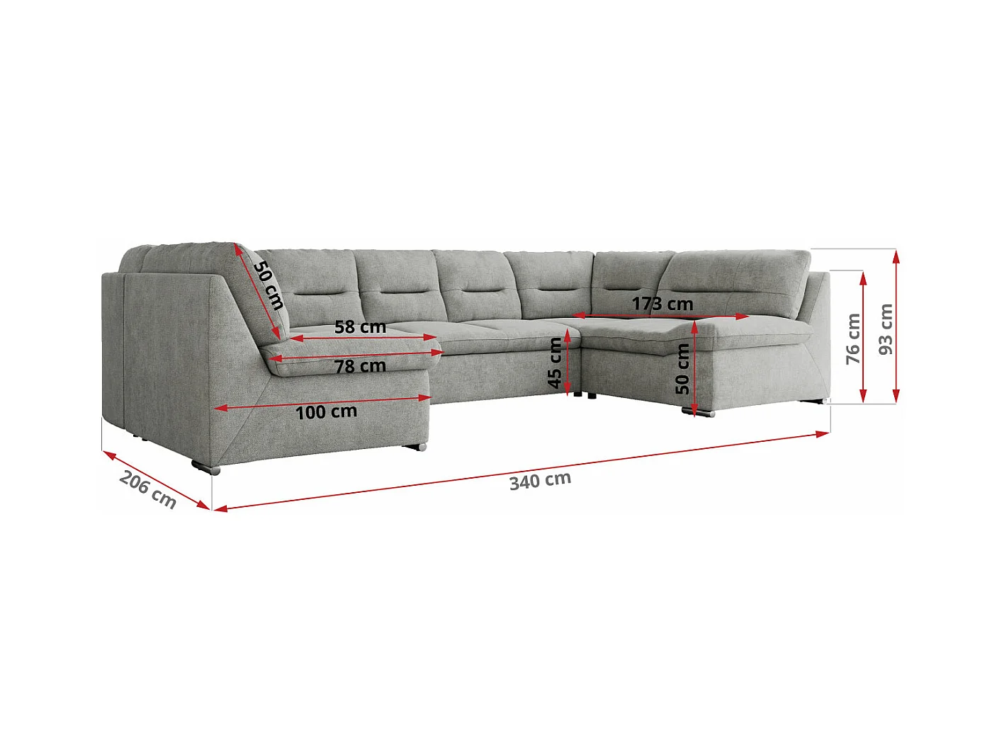 Ecksofa COMODO U, Große Wohnlandschaft, mit Schlaffunktion - Hellgrau Stukture