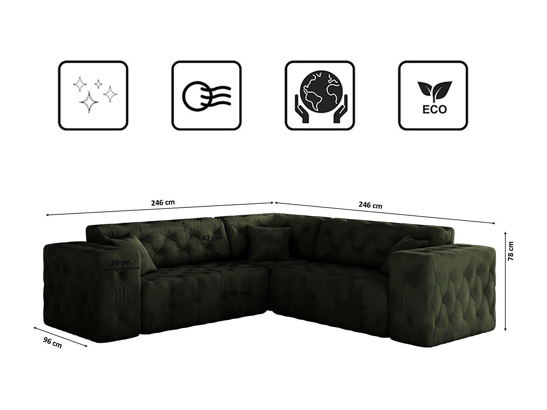 Ecksofa Corner LUX, Stoff Whisper, Grün