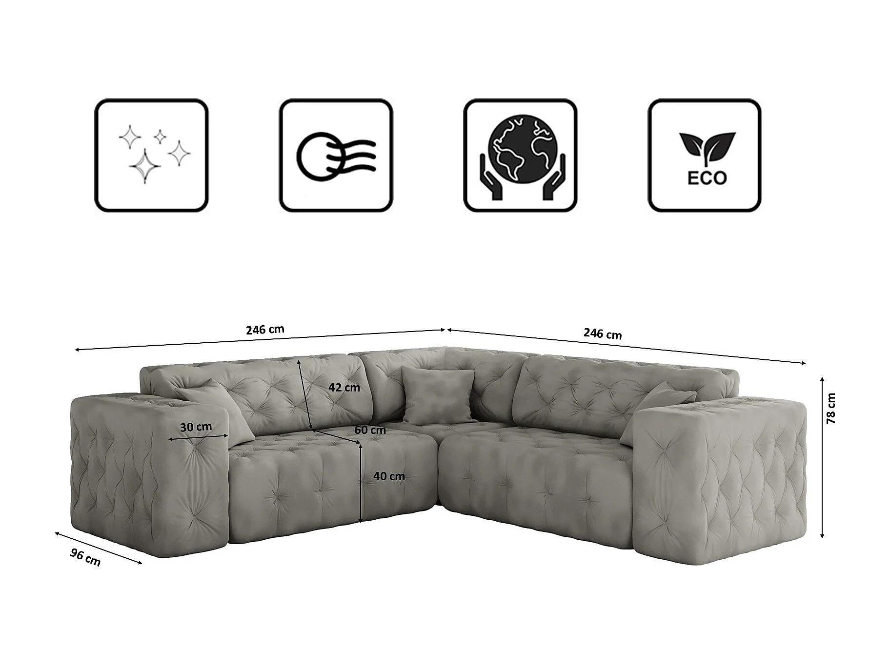 Ecksofa Corner LUX, Stoff Whisper, Silber