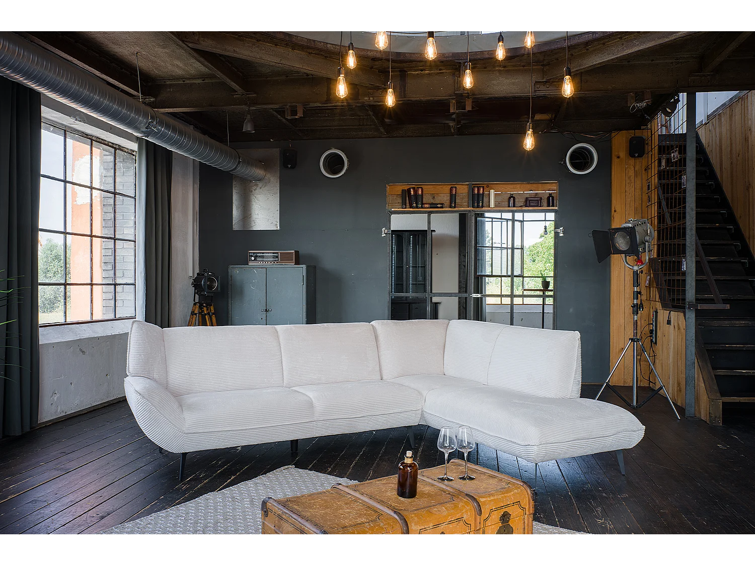 Ecksofa - Cremeweiß Cord - CALLA