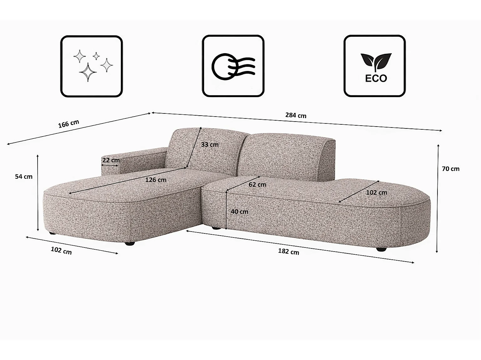 Ecksofa Cursal Atelier, Stoff Artico, Beige, Links