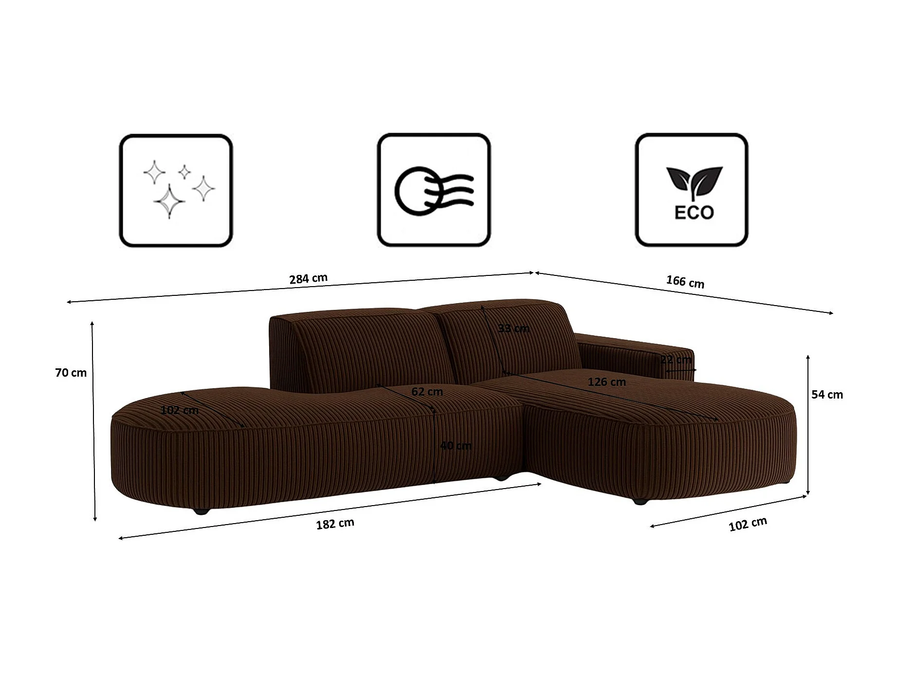 Ecksofa Cursal Atelier, Stoff Poso, Braun, Rechts