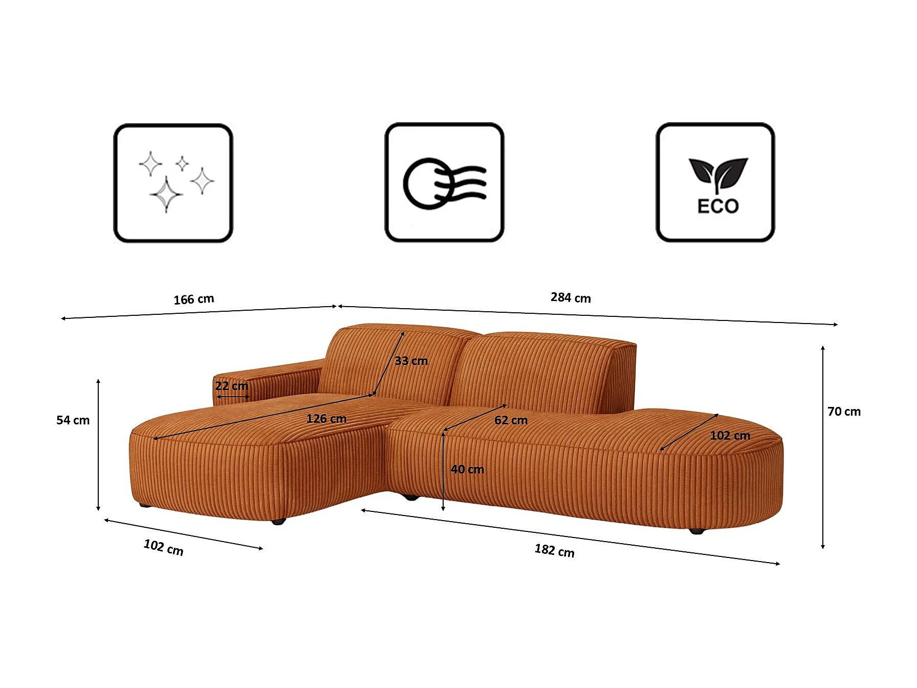 Ecksofa Cursal Atelier, Stoff Poso, Kupfer, Links