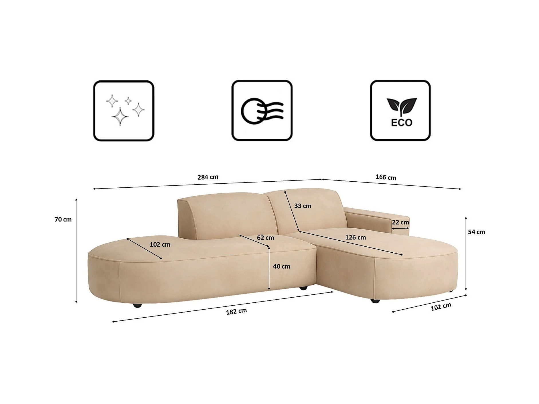 Ecksofa Cursal Atelier, Stoff Salvador, Beige, Rechts