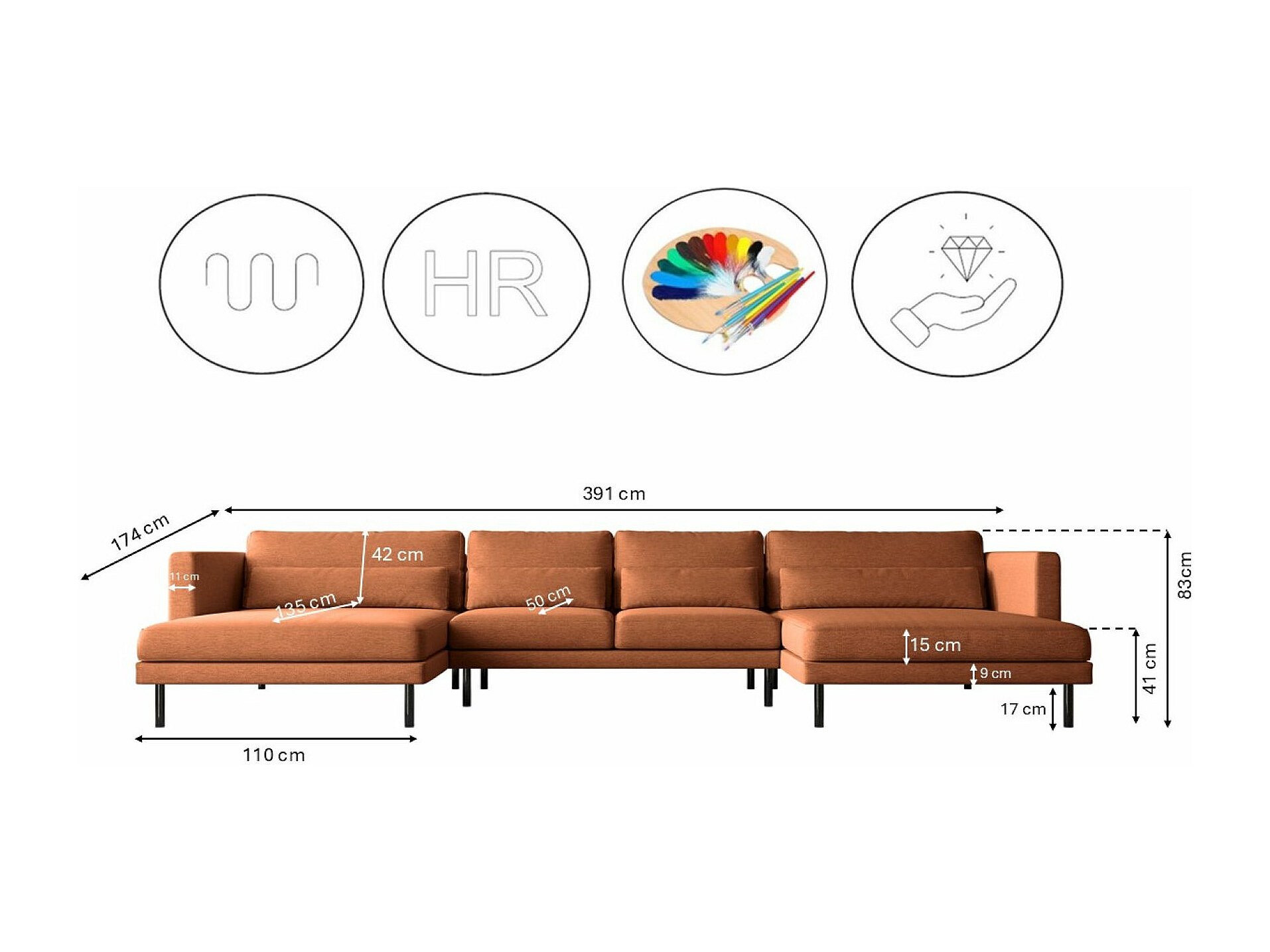 Ecksofa DANI in U-Form Stoff Verita Kupfer