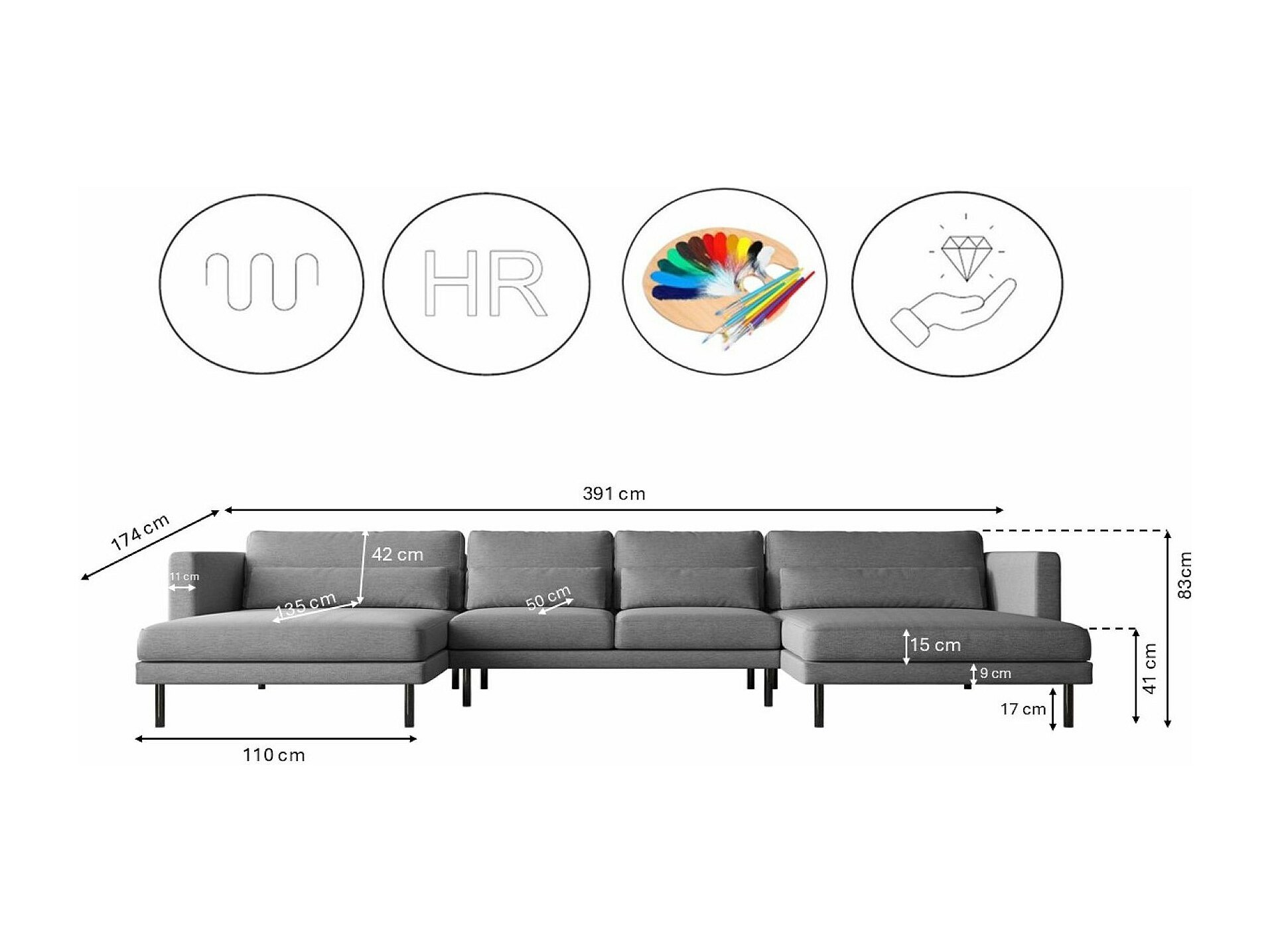 Ecksofa DANI in U-Form Stoff Verita Stahl