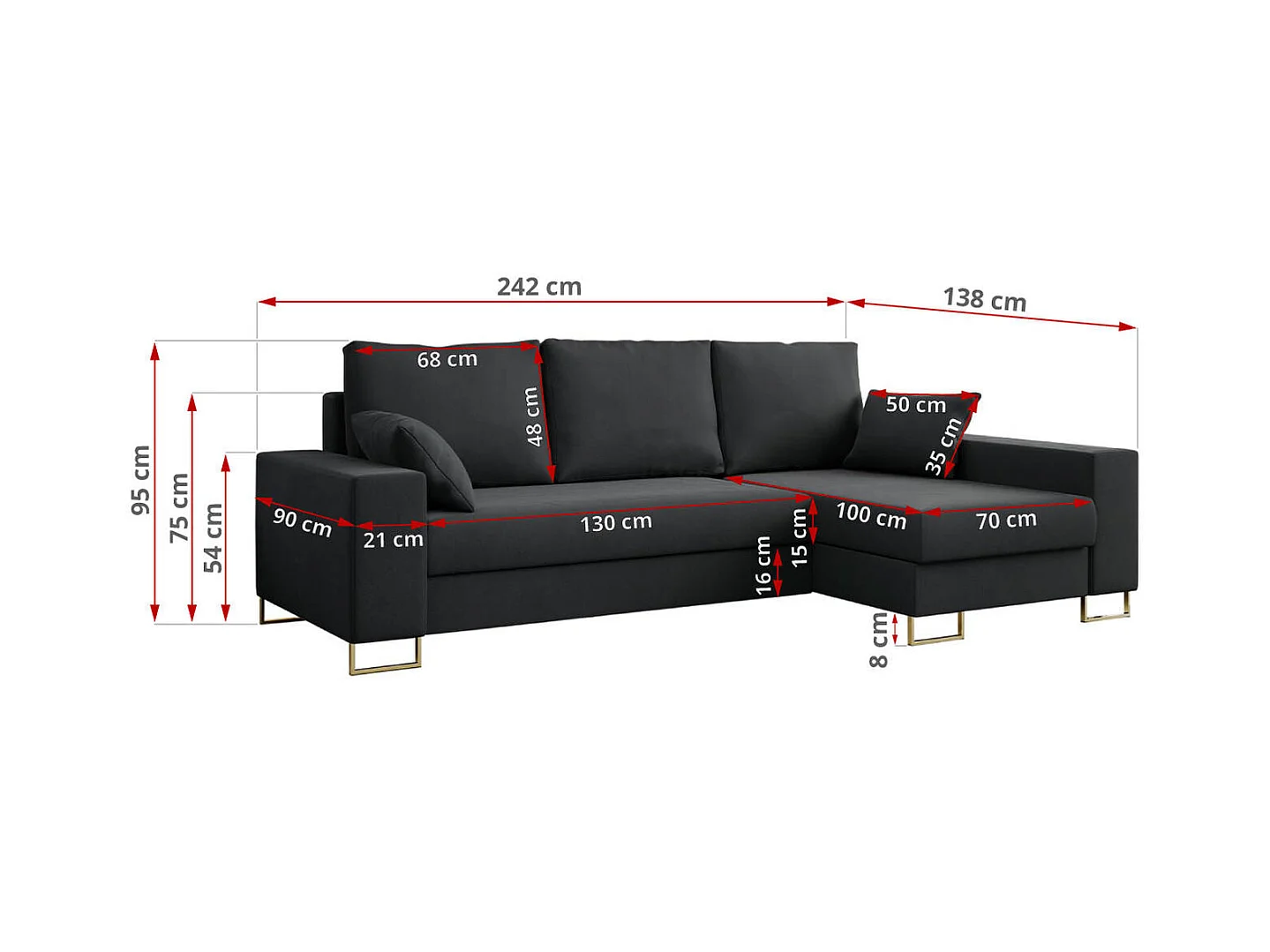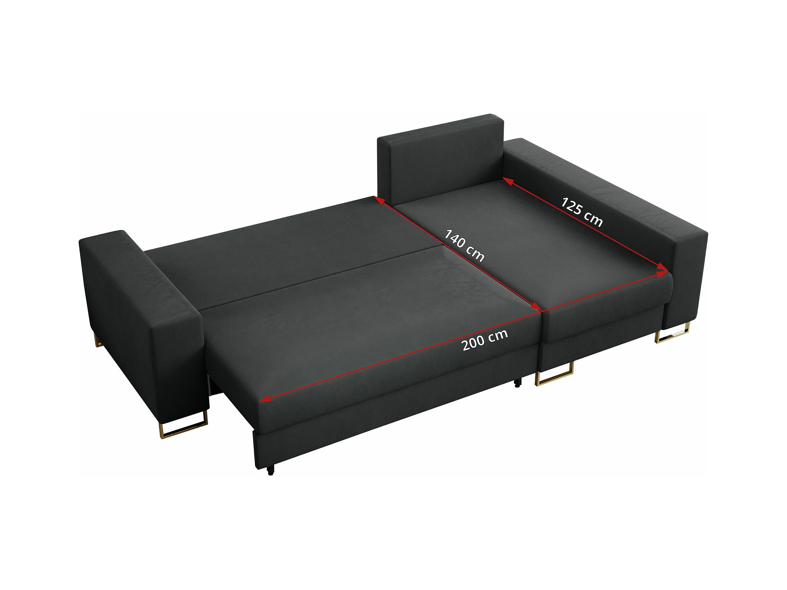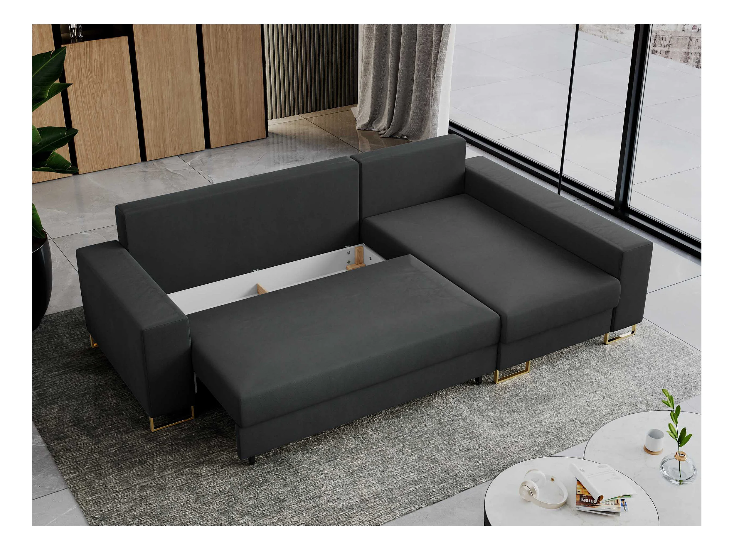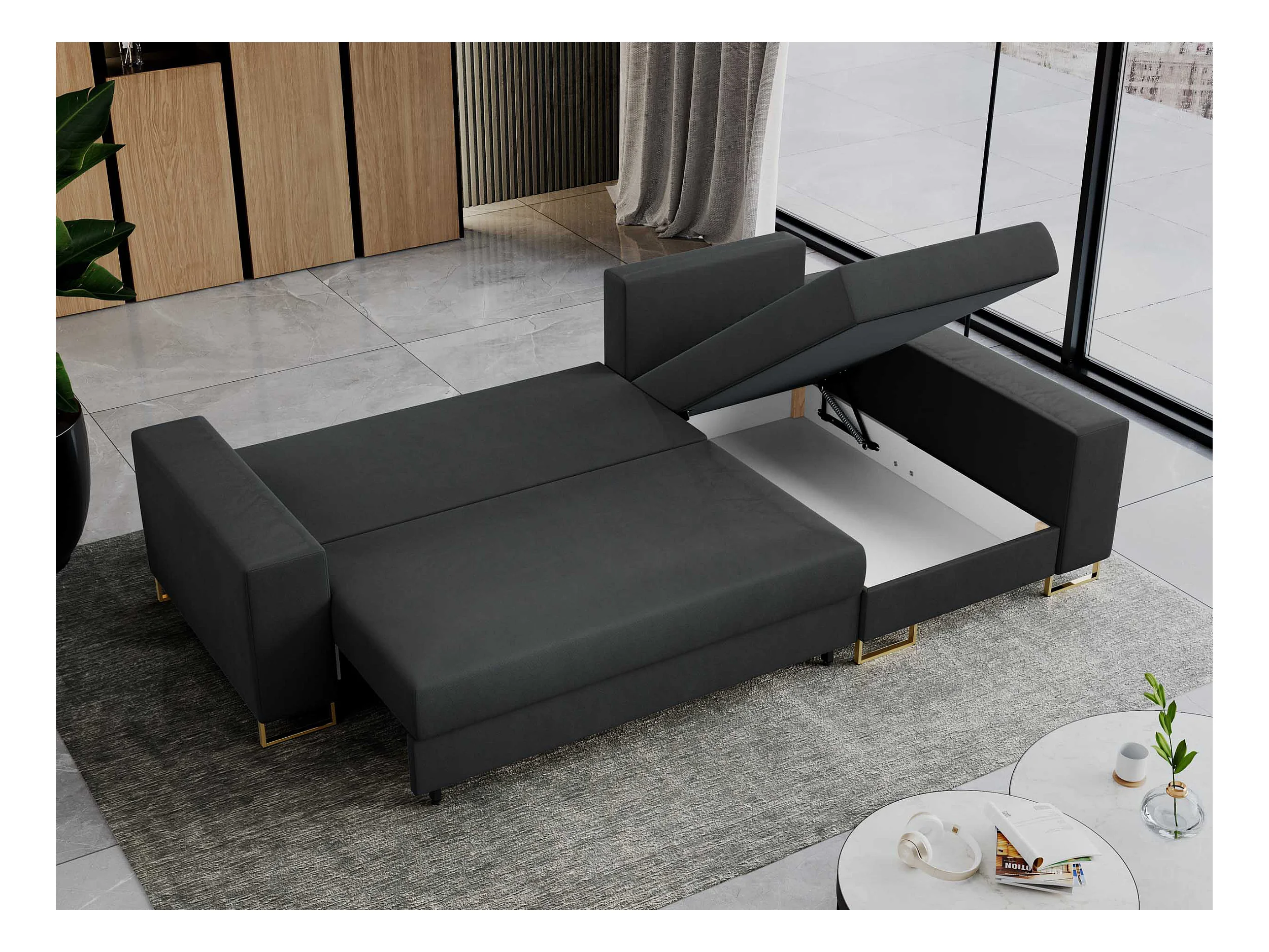 Ecksofa DORIAN - schlaffunktion und Bettkasten, lose Kissen - Dunkelgrau Velvet