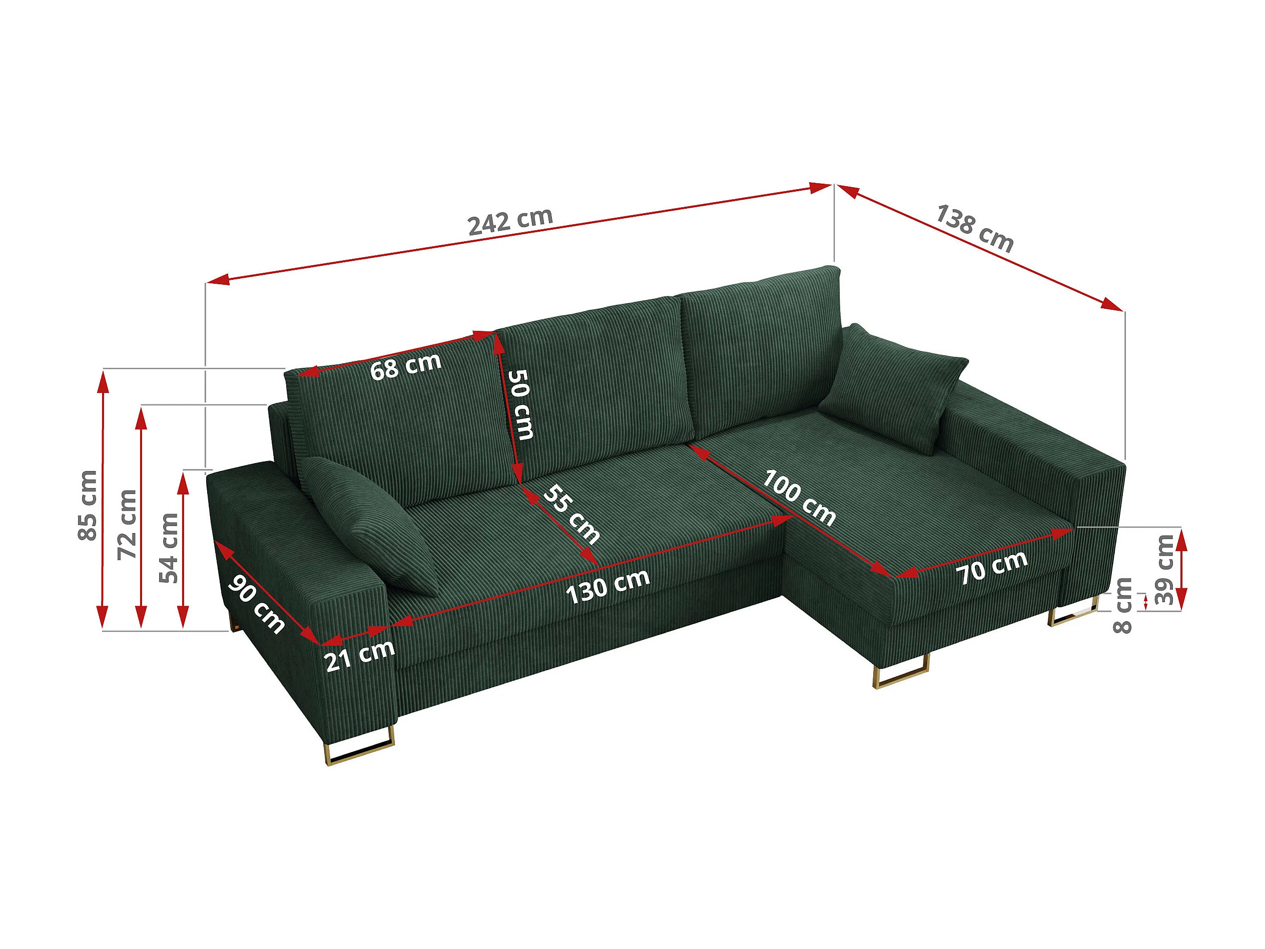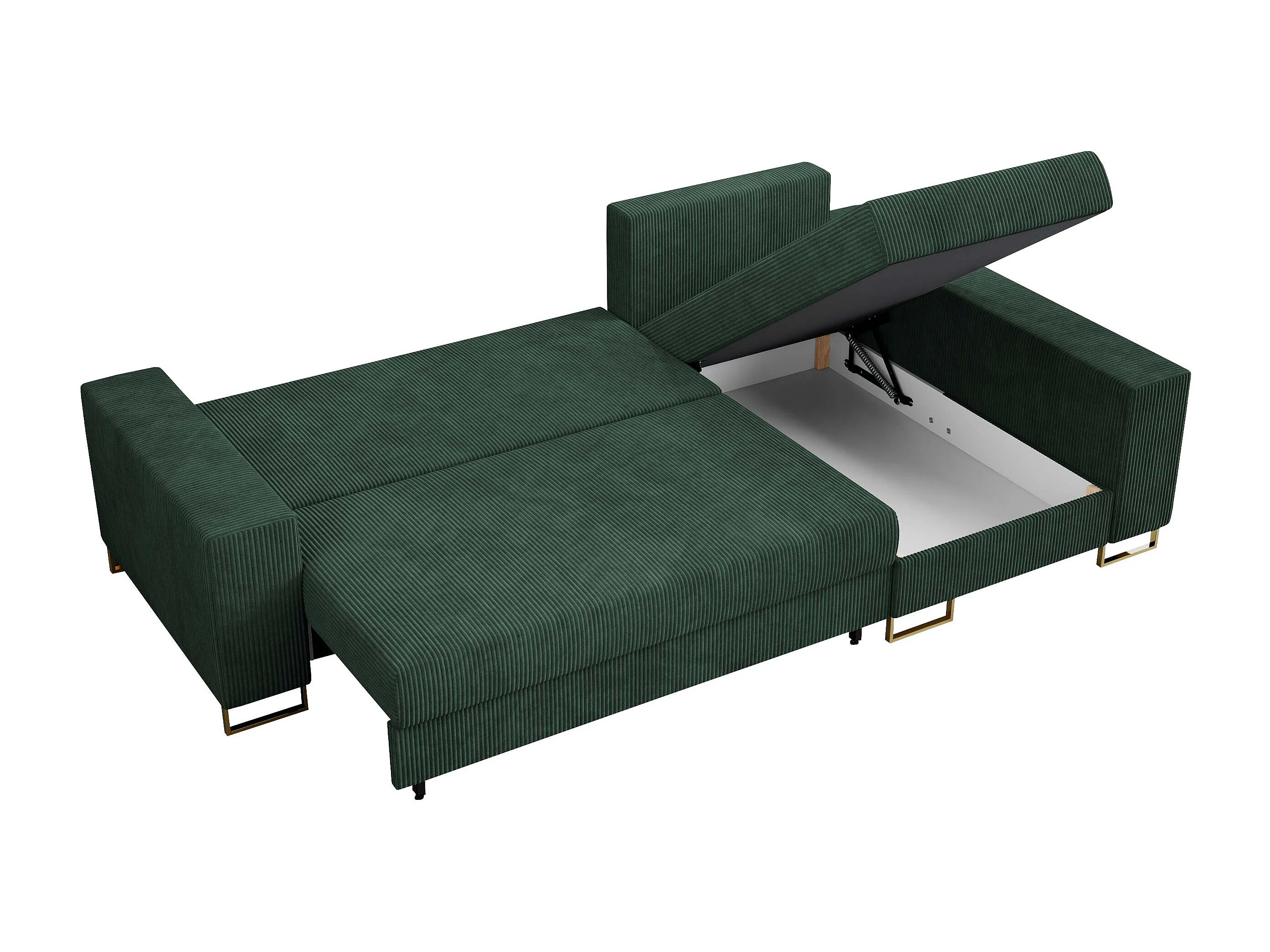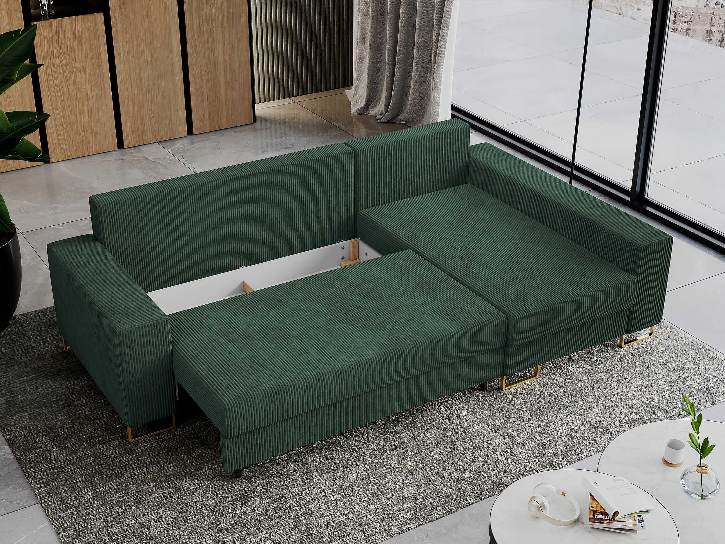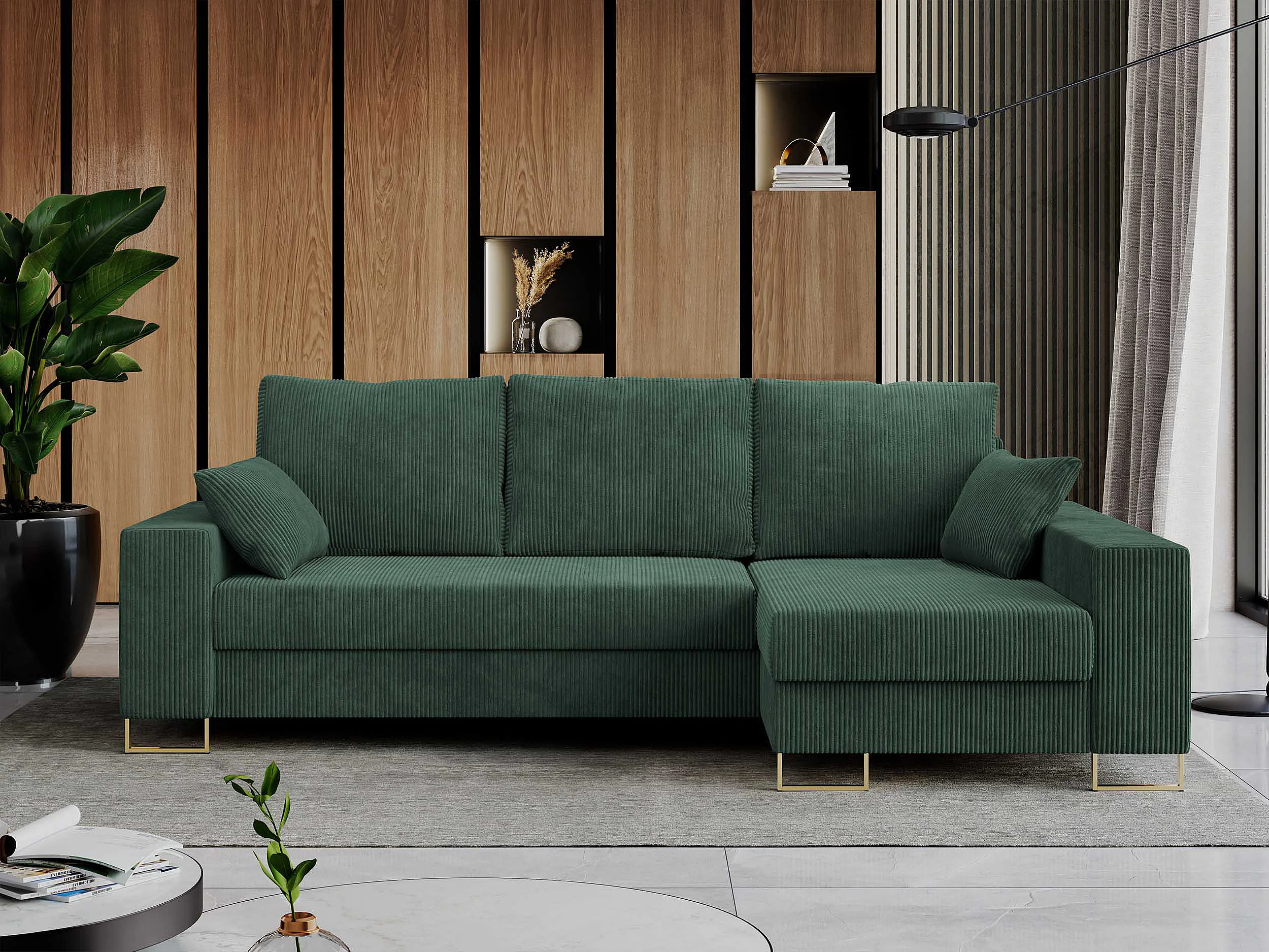 Ecksofa DORIAN - schlaffunktion und Bettkasten, lose Kissen - Grün Cord