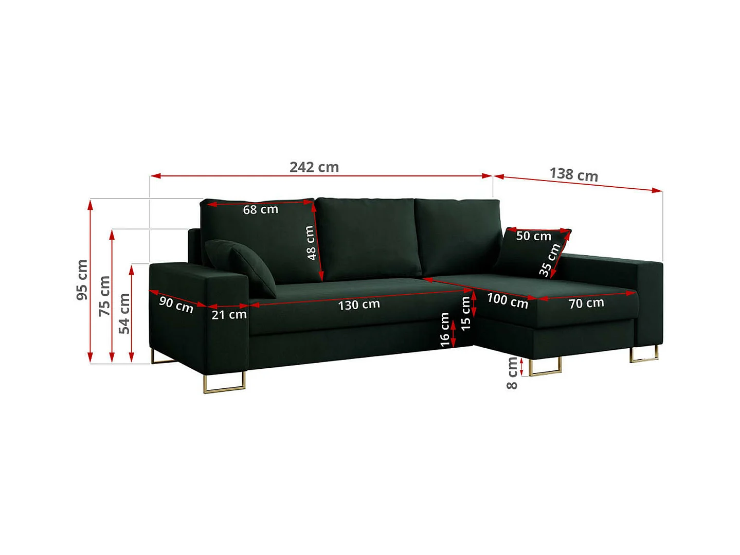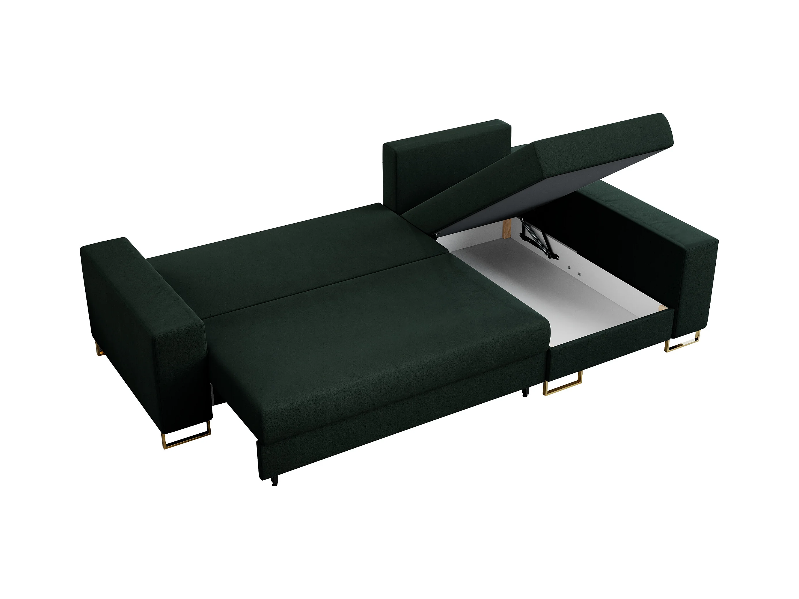 Ecksofa DORIAN - schlaffunktion und Bettkasten, lose Kissen - Grün Velvet