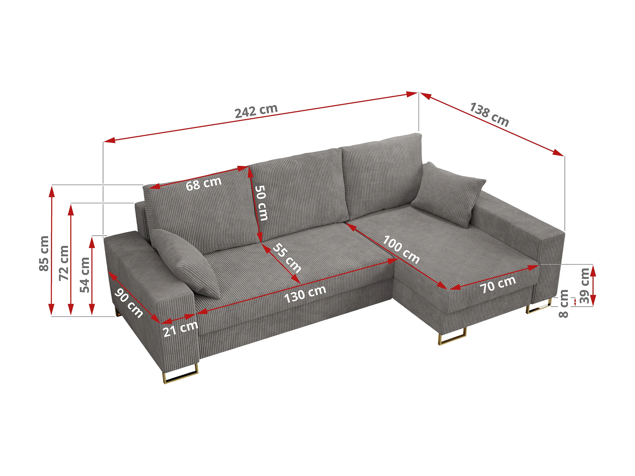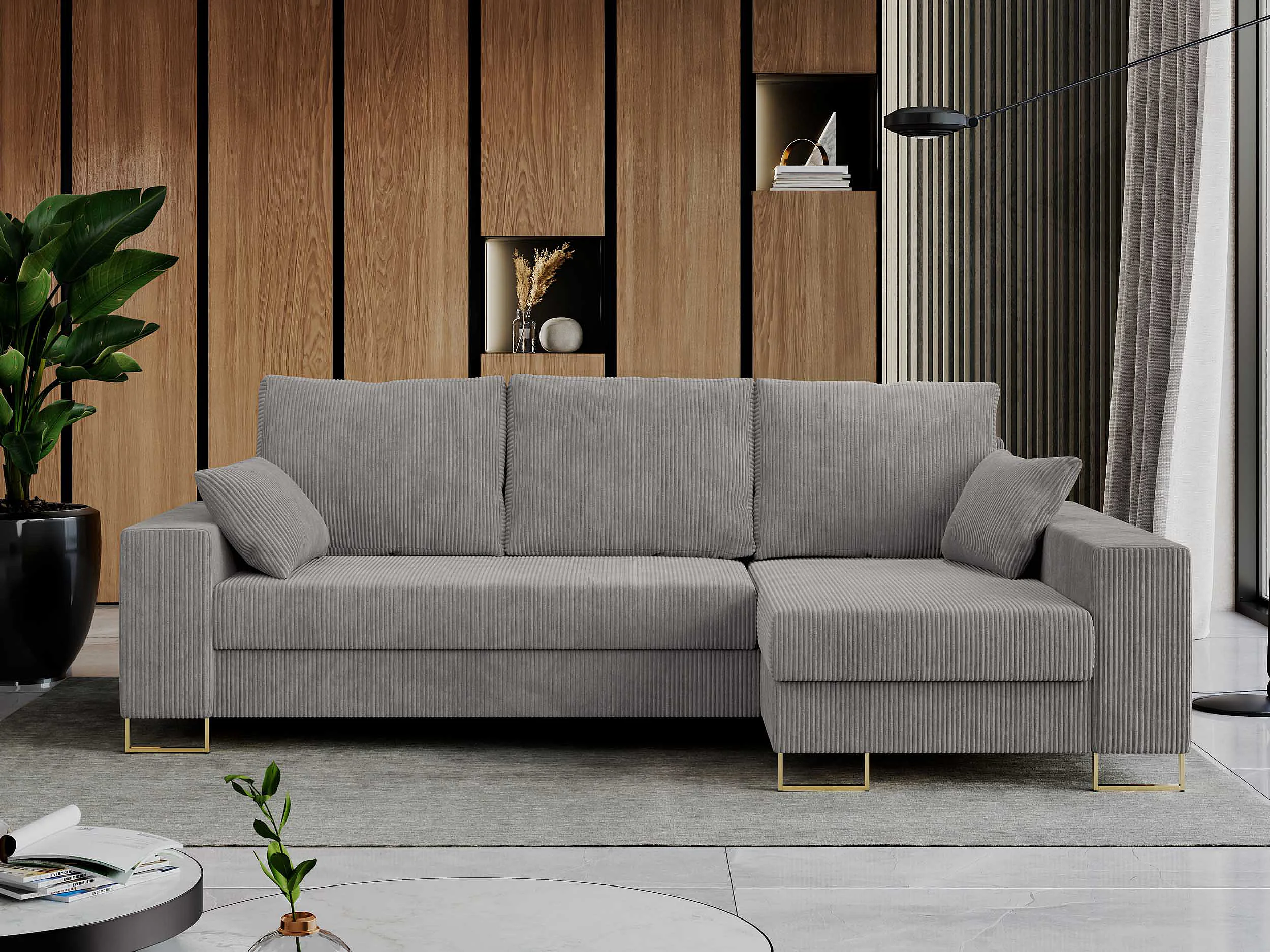 Ecksofa DORIAN - schlaffunktion und Bettkasten, lose Kissen - Hellgrau Cord