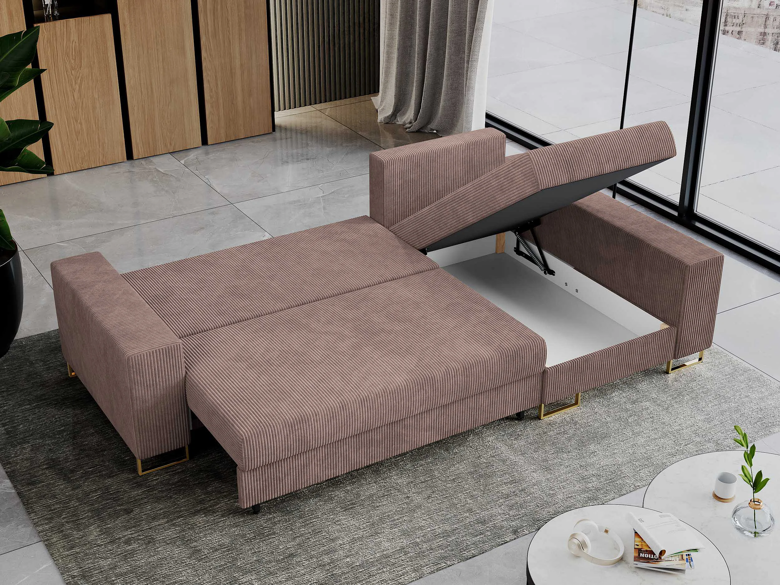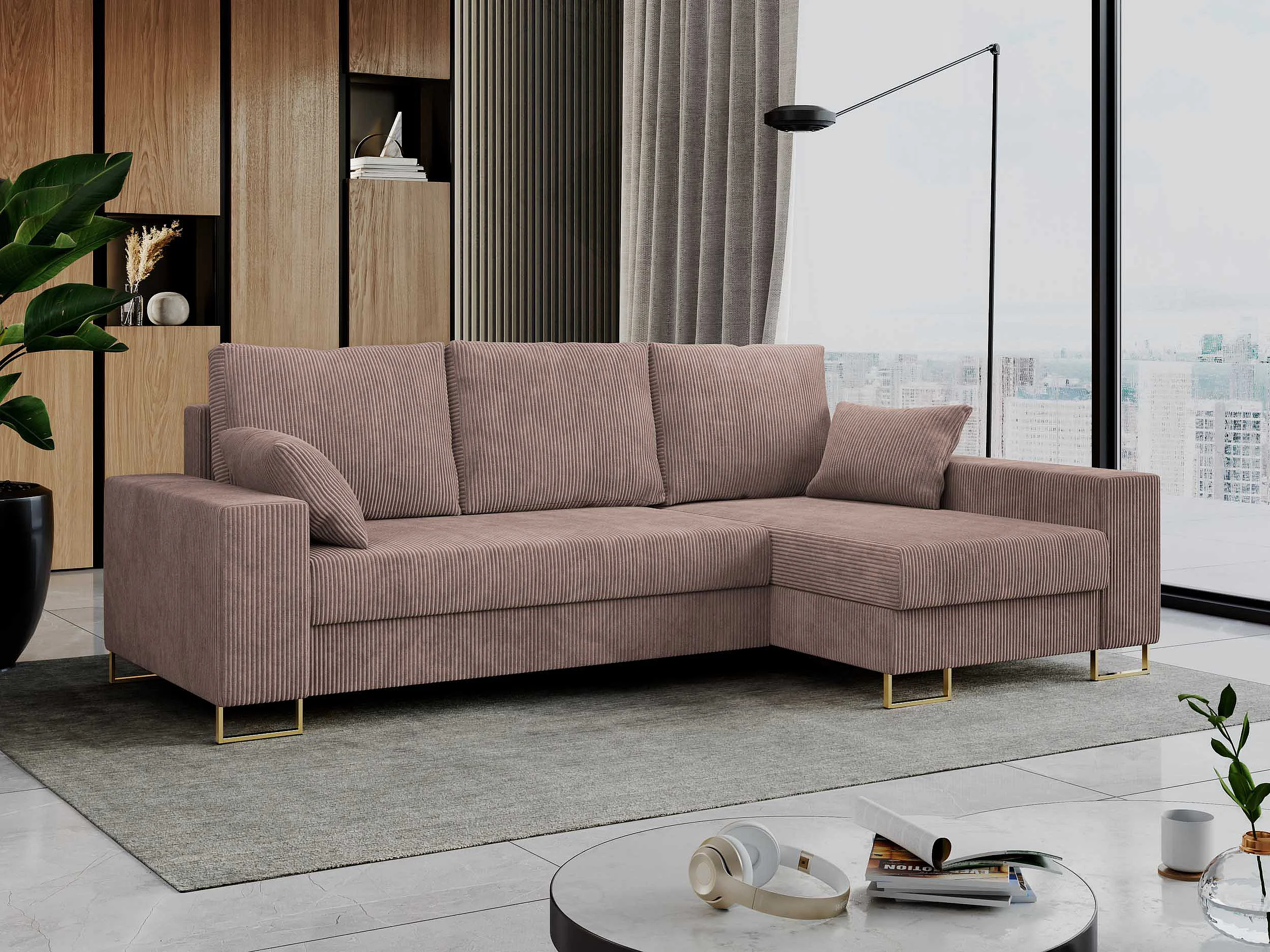 Ecksofa DORIAN - schlaffunktion und Bettkasten, lose Kissen - Rosa Cord