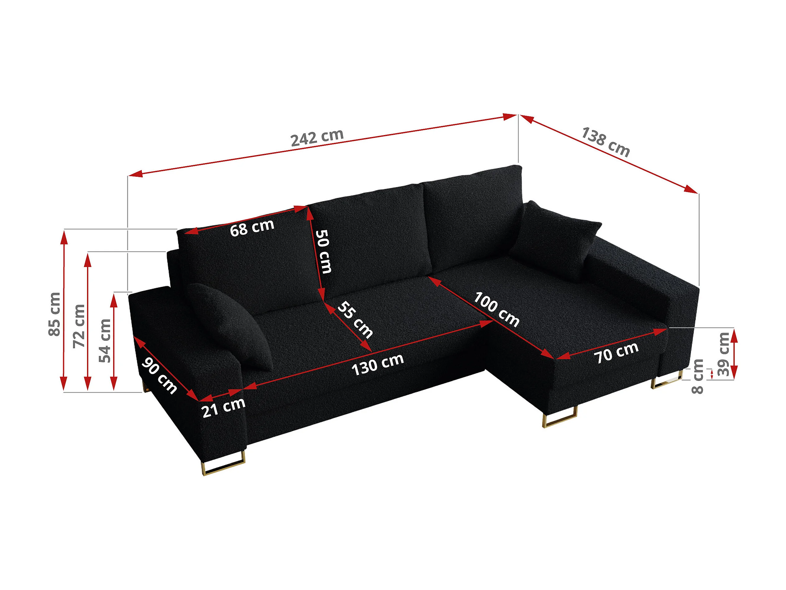 Ecksofa DORIAN - schlaffunktion und Bettkasten, lose Kissen - Schwarz Boucle